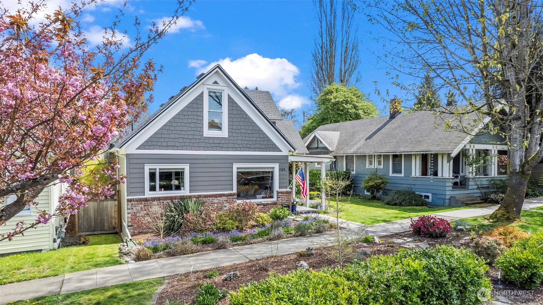 (650)533-3259Timeless 1912 Craftsman with 9'+ ceilings and refined architectural character, ideally set in the sidewalk-lined UPS district just moments to Proctor Farmers Market, boutiques, and dining. Meticulously maintained and thoughtfully updated, this 2,800 sq ft home offers a seamless blend of historic charm and modern livability. A welcoming covered porch leads to a leaded glass entry and tiled vestibule. The main level showcases hardwood and tile flooring, a gracious sitting room, formal dining with original built-ins, and an office with custom bookcases. A main-floor bedroom and full bath provide flexible living for guests or multigenerational needs. The kitchen features granite tile counters, stainless appliances, opening to a private, fully fenced backyard with new fencing, sprinkler system, and raised garden beds. A rare oversized 2-car garage off the alley offers overhead storage & solar panels that convey. Upstairs, the primary suite serves as a quiet retreat with sitting area, expansive walk-in closet, and a well-appointed bath with walk-in shower and built-in seat. The finished lower level adds versatility with a spacious living area, fireplace, exterior access, and an oversized bedroom. Extensive upgrades include a new gas furnace, new heat pump for efficient heating and central cooling, tankless water heater, LED lighting, newer vinyl double-hung windows with custom treatments, and two wood-burning fireplaces. Newer washer and dryer included.