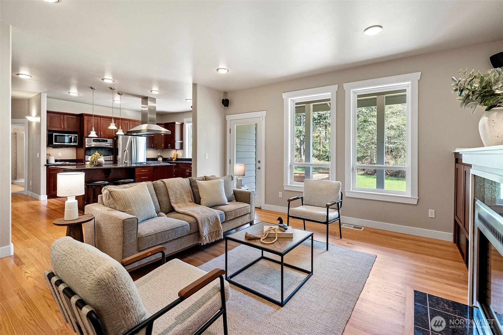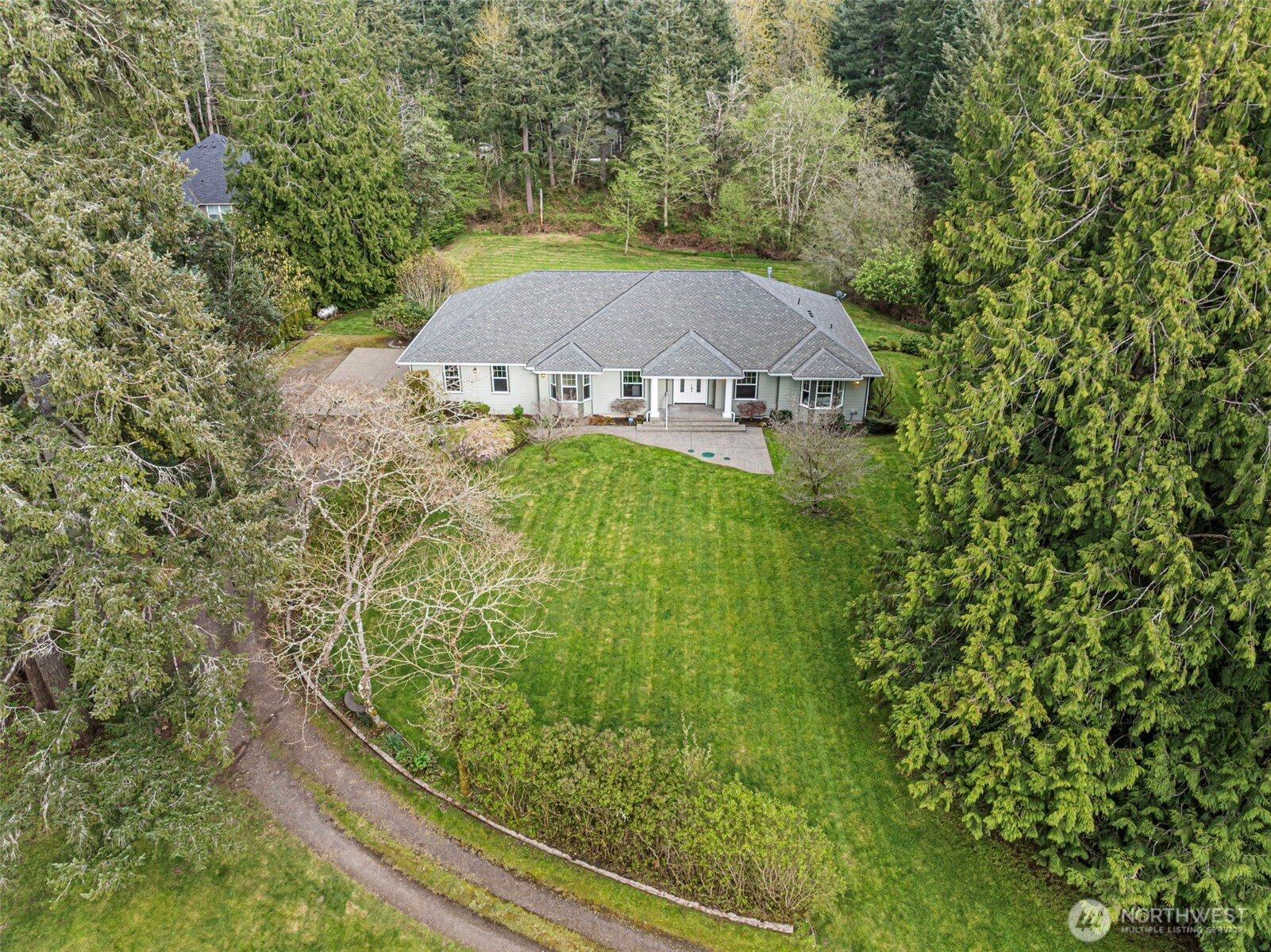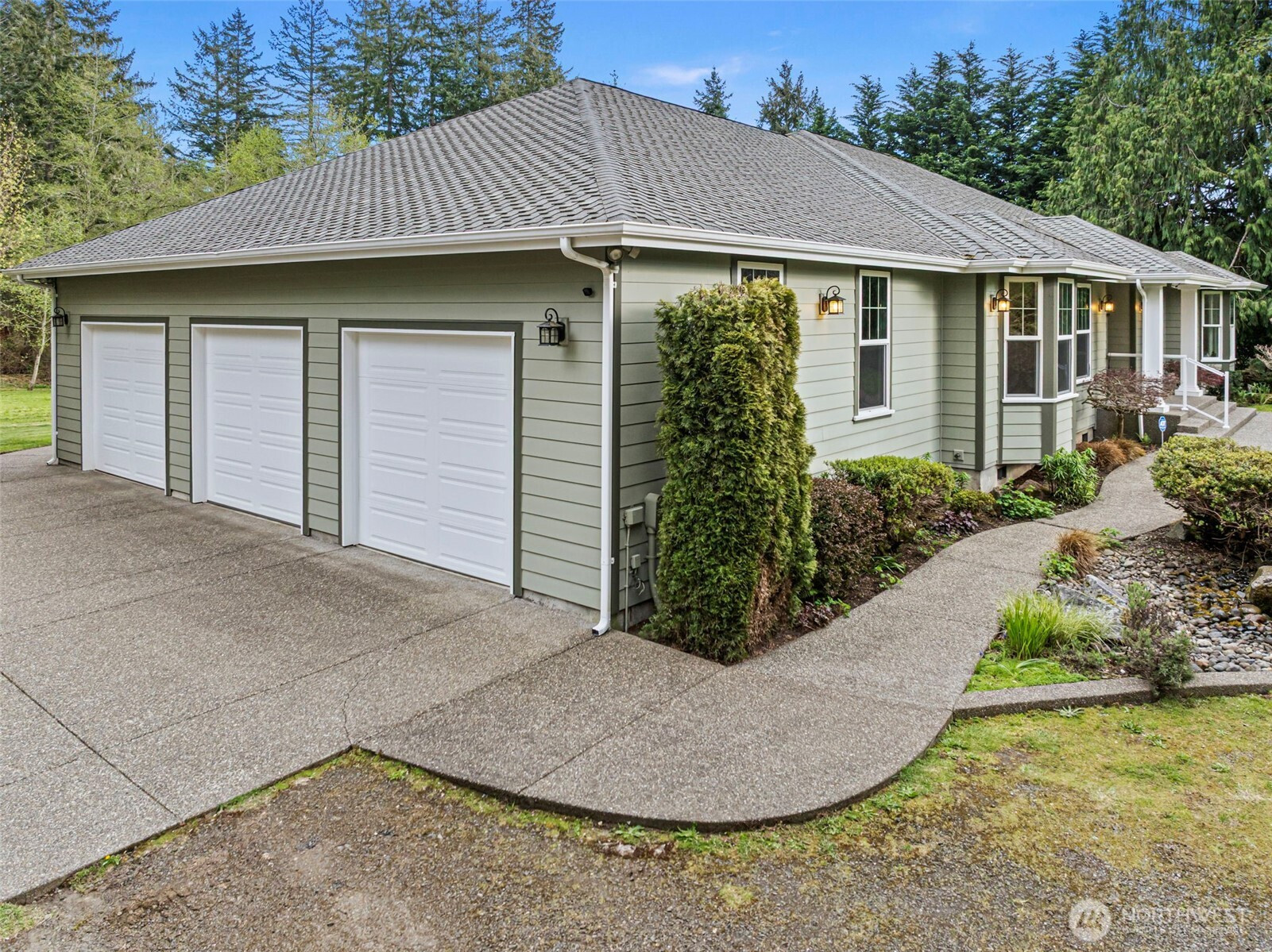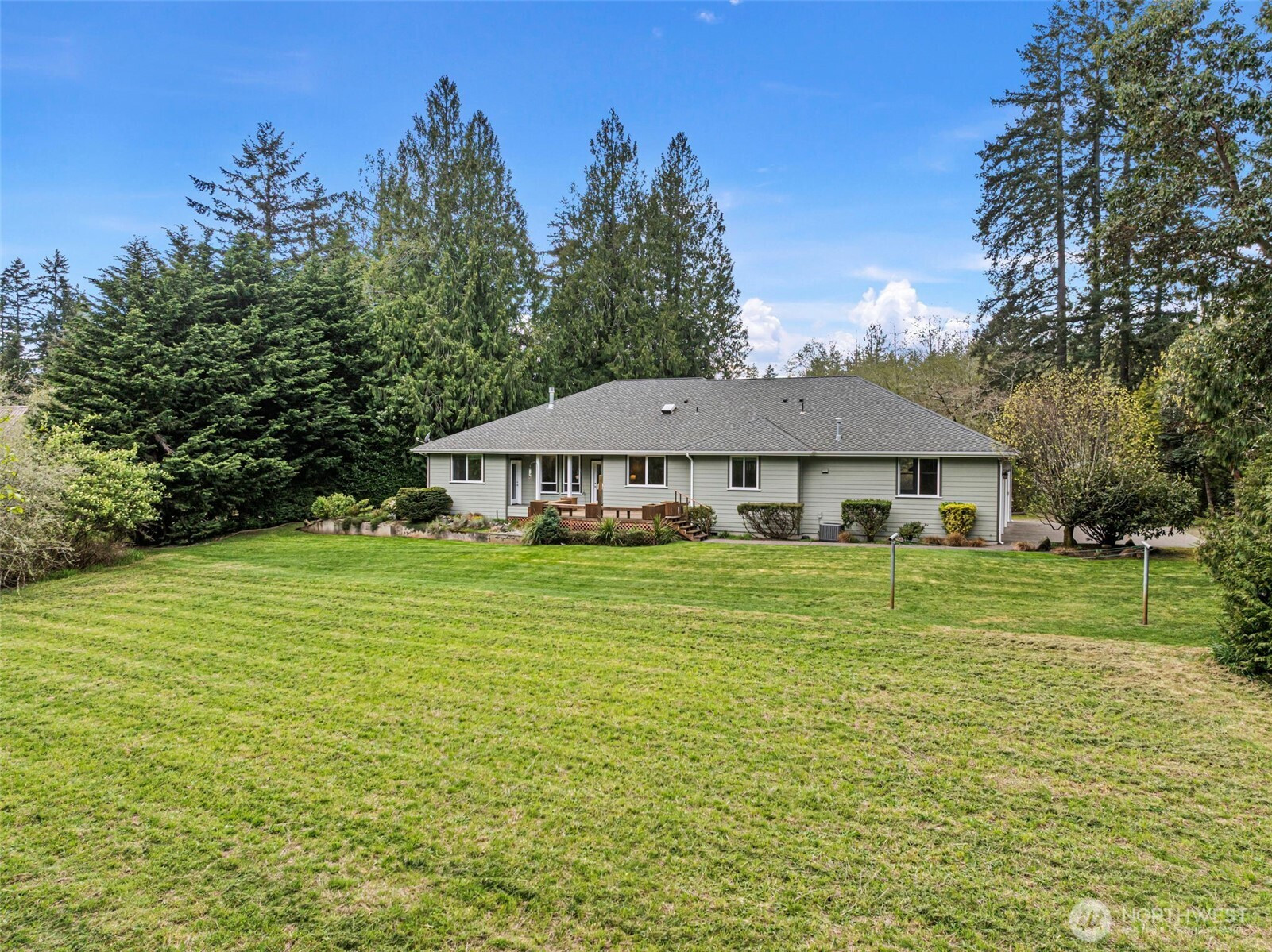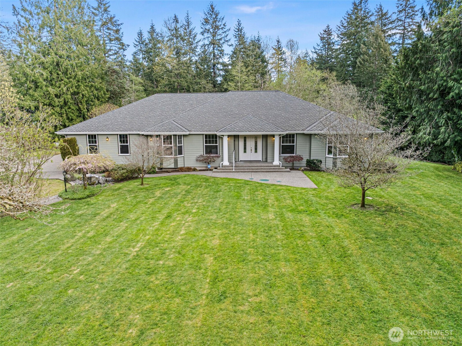 (650)533-3259Nestled on 2.44 private acres, this custom Gig Harbor rambler is surrounded by a serene park-like setting with ponds, streams, a tree-lined drive, flowering trees, lush greenery, manicured lawns, and garden space. Enjoy peaceful outdoor living from the expansive deck while taking in the wildlife and natural beauty. The property offers ample space to possibly expand with a pool, sport court, tennis court, or even horses. Inside, rich red oak flooring, custom tile, and cherry-stained cabinetry showcase the home's craftsmanship. The gourmet kitchen features granite slab countertops, GE Profile appliances, walk-in pantry, and two butler's pantries, making it ideal for entertaining. A welcoming formal entry leads to a private office, elegant formal dining room, and a spacious living room with fireplace and built-ins. The luxurious primary suite includes a sitting area with fireplace, dual walk-in closets, and a stunning spa-inspired bath with soaking tub. Two additional bedrooms each feature their own en-suite baths. A 3-car garage with over 1,000 sq ft and storage above provides exceptional space for vehicles, hobbies, and storage. This rare property blends privacy, natural beauty, and refined Northwest living just minutes from Gig Harbor amenities.