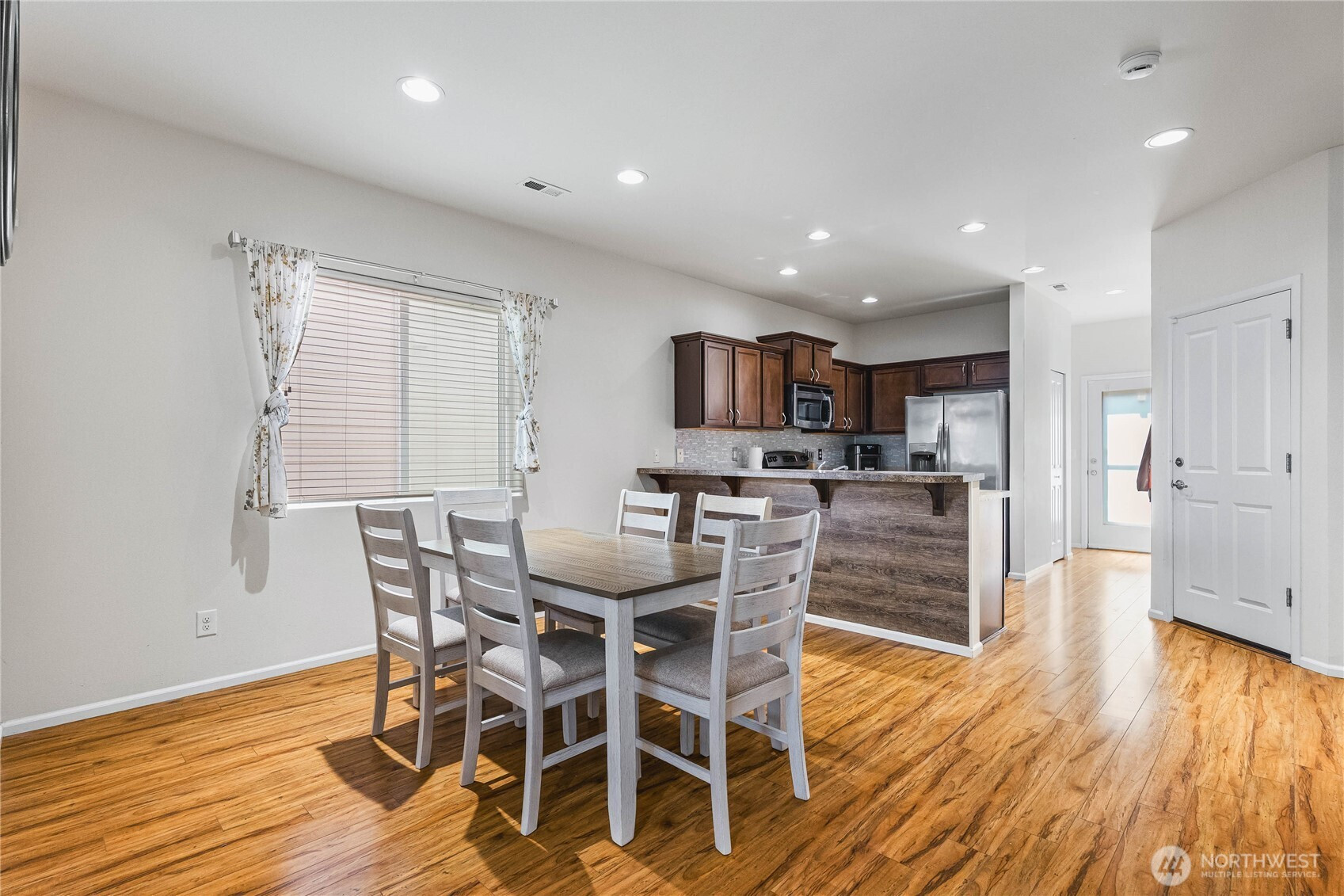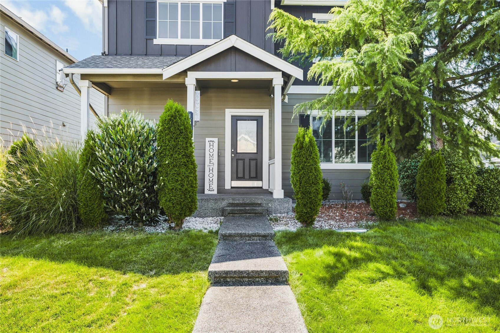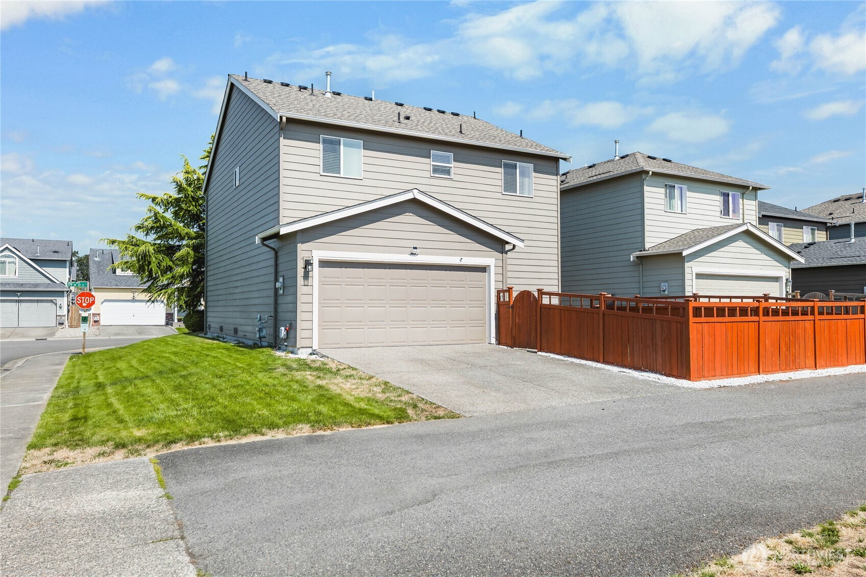 (650)533-3259Welcome to Wyndham Ranch, a gated community with parks, trails, and more. Situated on a premium corner lot close to JBLM, this home features an open main floor, kitchen with stainless steel appliances, tile backsplash, and breakfast bar seating. The dining area flows into a large bright living room plus a convenient half bath. Upstairs includes a primary suite with walk-in closet and en suite bath, three additional bedrooms, a full bath, nice sized laundry room. Enjoy the covered front porch, fully fenced backyard, two-car garage, and extra parking. Community perks include basketball courts, garden beds, two play areas, walking trails, and a covered gazebo.
