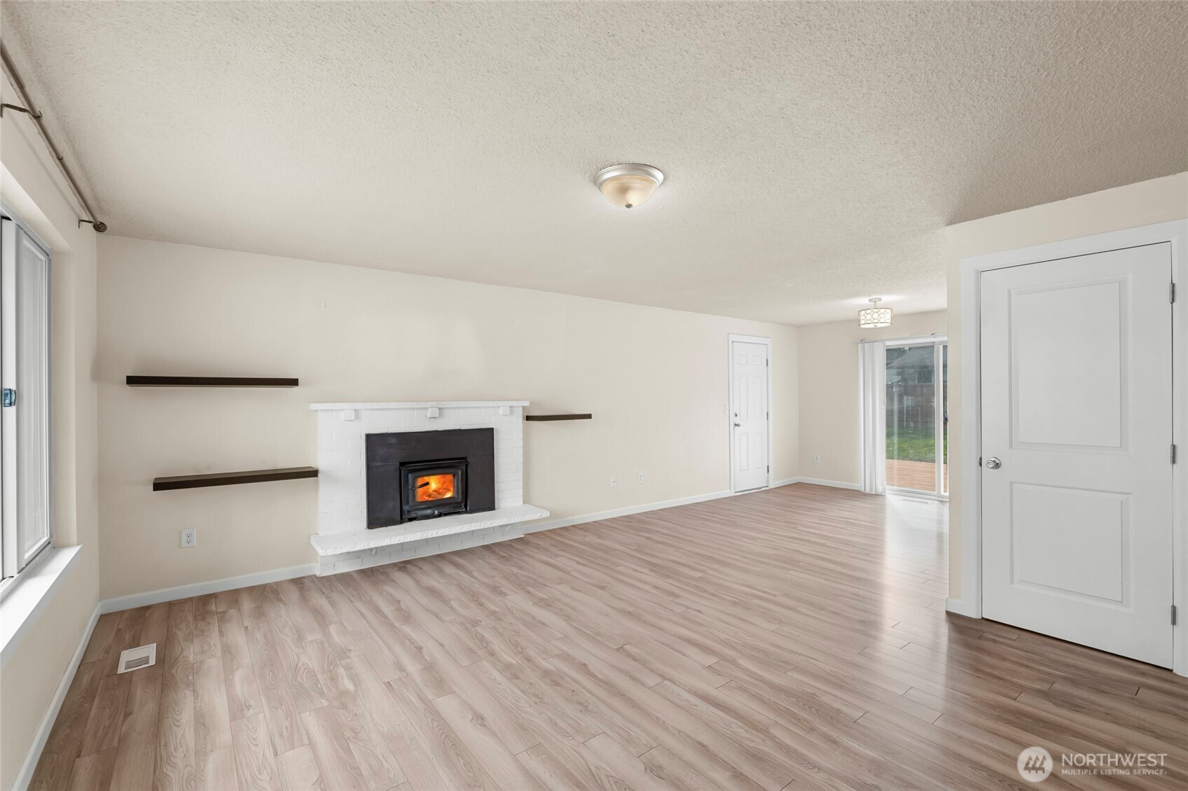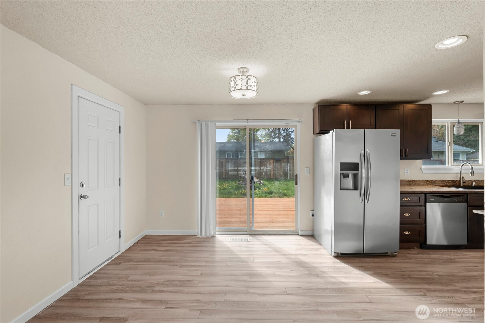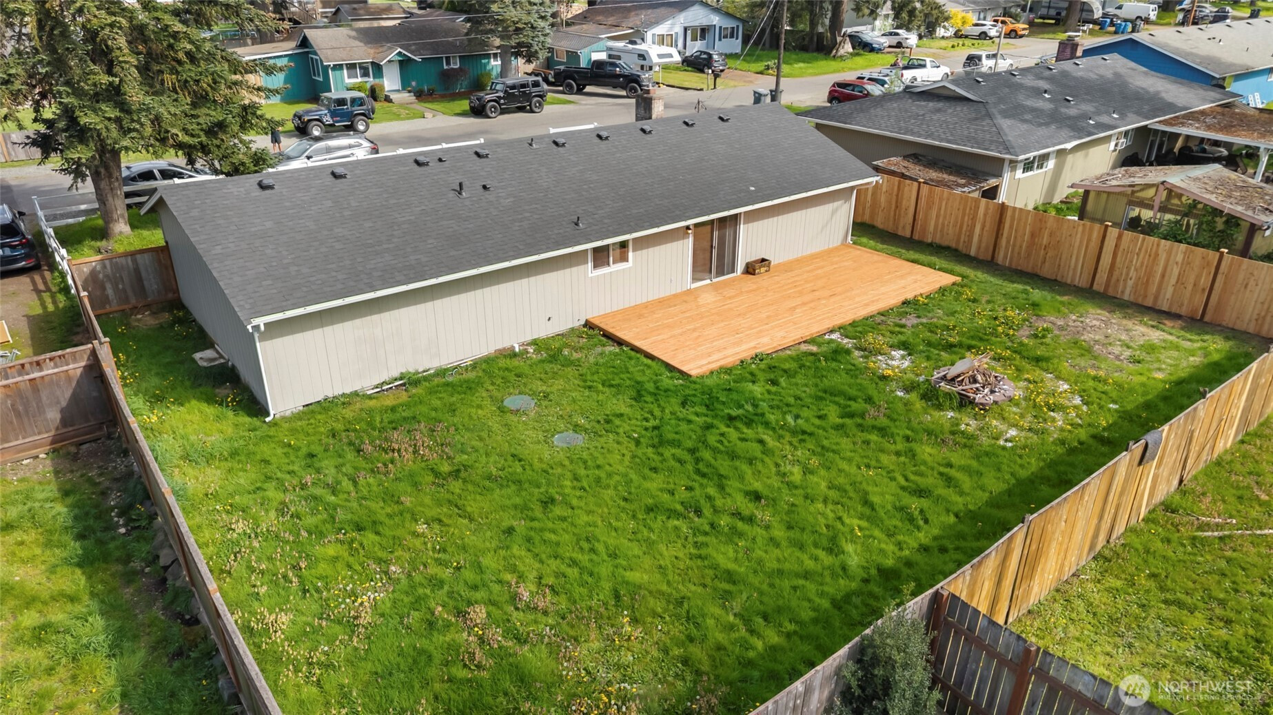 (650)533-3259Beautifully maintained rambler situated on a level .17-acre lot in a highly convenient location near shopping, dining, schools, and JBLM. This 1,222 sq ft home offers 3 bedrooms and 2 baths, along with a 1-car garage and thoughtful updates throughout. Inside, you’ll find easy-care laminate flooring, updated push-up blinds, and an open-concept living and dining area with sliding door access to the backyard. A wood stove insert adds warmth and character to the main living space, perfect for rainy PNW days. Major updates include a new roof and new extended deck installed in 2026, adding both value and functionality. The fully fenced, generously sized backyard is designed for enjoyment, featuring the extended deck and firepit, ideal for entertaining or relaxing outdoors. The kitchen provides ample cabinet storage and generous prep space, complemented by stainless steel appliances. The oversized primary suite includes a spacious private bath and a walk-in closet with barn doors. Move-in ready with major updates already completed, this home offers comfort, functionality, and space to enjoy both inside and out!