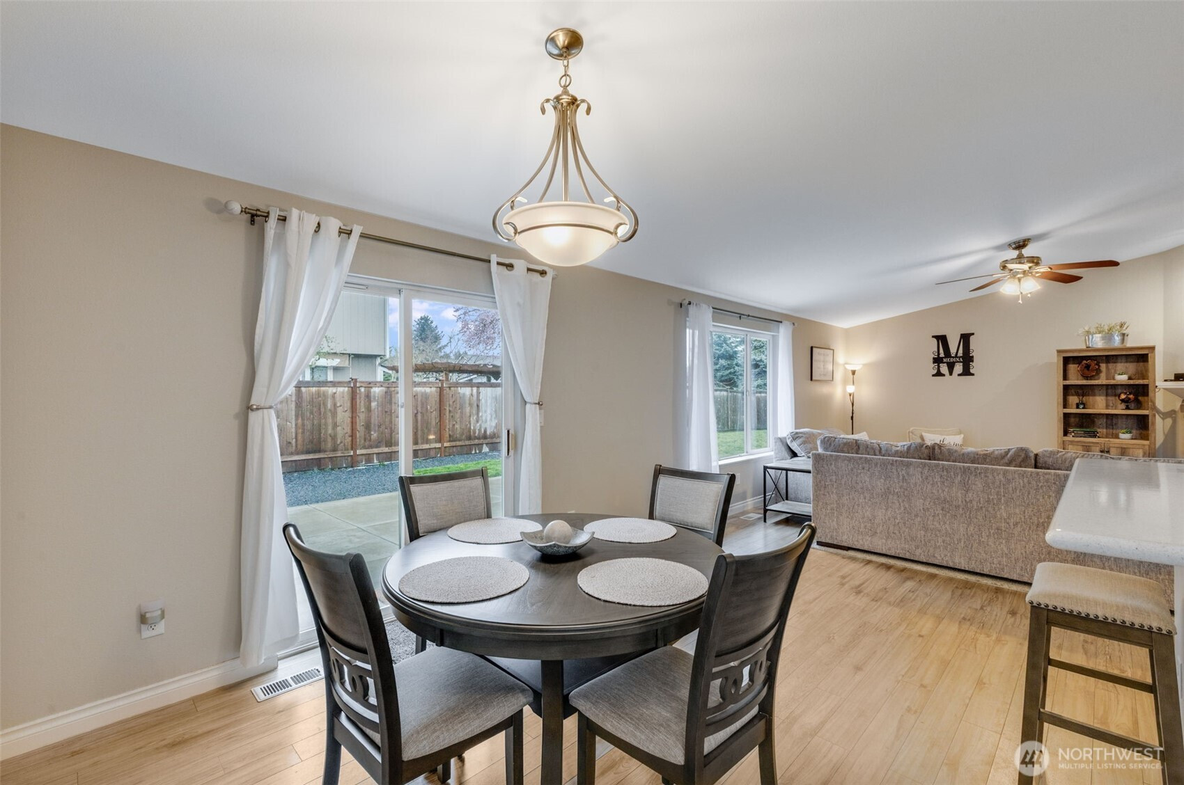 (650)533-3259Fantastic opportunity to live in a desirable community just off Sunrise Blvd and within the highly sought-after Puyallup School District! This home offers an open-concept layout with seamless flow between the living room, dining area, and kitchen—perfect for everyday living and entertaining.The spacious kitchen features a large island with breakfast bar seating, additional storage, stainless steel appliances, and resin countertops. The washer and dryer stay! Enjoy cozy evenings by the gas fireplace and appreciate the newer plank flooring, updated trim, and fresh interior paint throughout. Major updates include a 30-year roof (only 10 years old), newer gas furnace, and a hot water tank that’s just one year old—giving you peace of mind. The primary suite features dual sinks in the bathroom for added convenience.Outside, you’ll find a nicely sized fenced backyard with garden space and huge 32X20 Newly Poured Concrete Patio-ideal for relaxing or hosting gatherings. The two-car garage includes built-in shelving and a storage loft for all your tools and extras. Shed is staying!Move-in ready with thoughtful updates throughout—don’t miss this one!