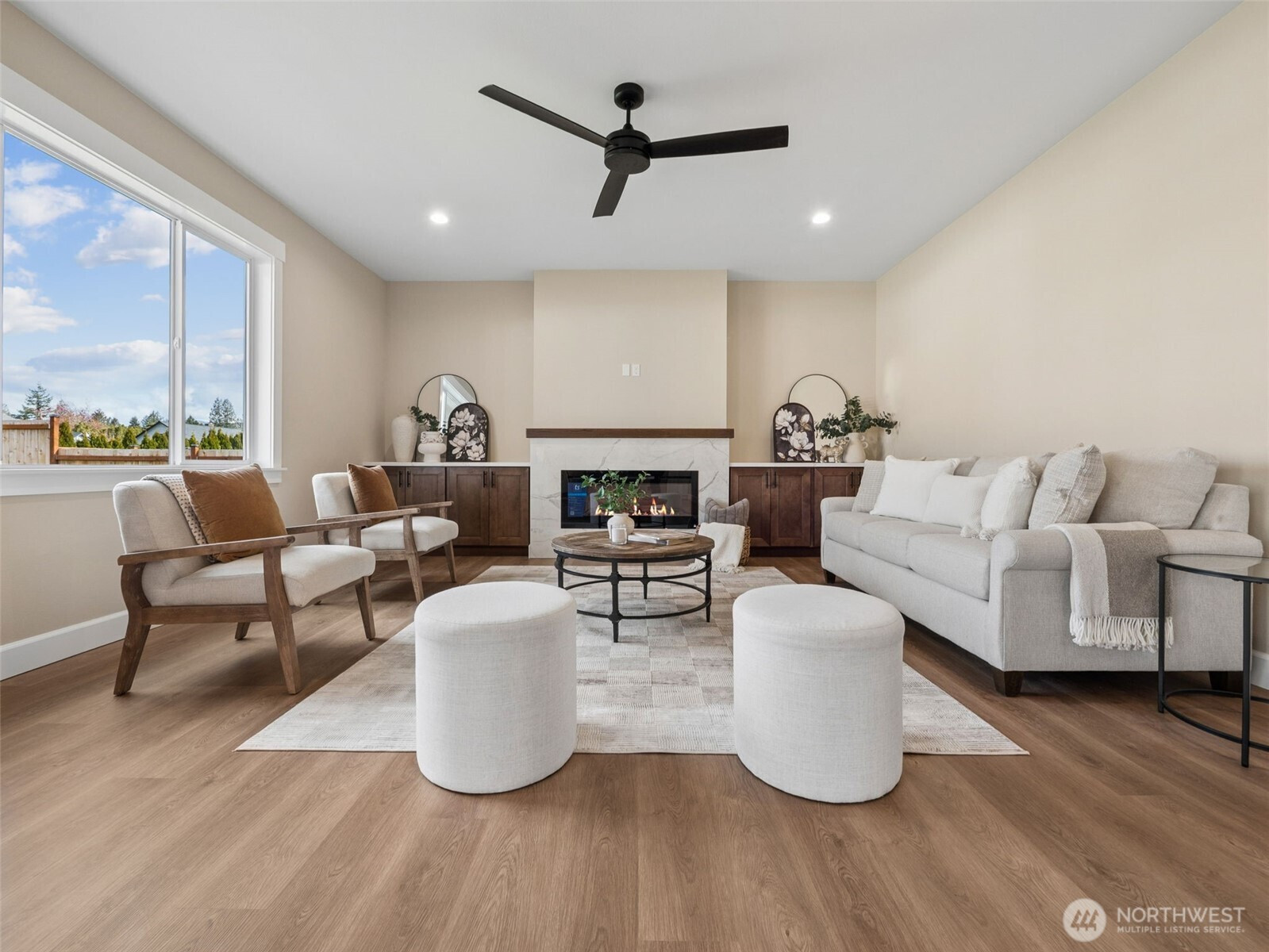 (650)533-3259Stunning new construction with NO HOA. This beautifully designed home features custom painted millwork throughout, durable LVT flooring, and efficient mini-splits with A/C. The spacious kitchen showcases quartz countertops, a classic subway tile backsplash, and a dining area with direct access to the back patio—perfect for indoor/outdoor living. The large living room offers a cozy electric fireplace. French doors to "Flex" room (dining room/den/office/media room) and a convenient ¾ bath is also located on the main level. Upstairs, you'll find four generously sized bedrooms, including a spacious primary suite featuring a 5-piece bath and a massive walk-in closet. The additional bedrooms are larger than most in comparable floor plans, offering plenty of space for everyone. Enjoy a 2-car garage with an automatic opener, plus convenient RV/boat parking for all your extra vehicles and toys. The fully fenced backyard features a covered patio and beautiful landscaping. Located in the charming city of Buckley, just minutes from local shops, restaurants, schools, and public transit.