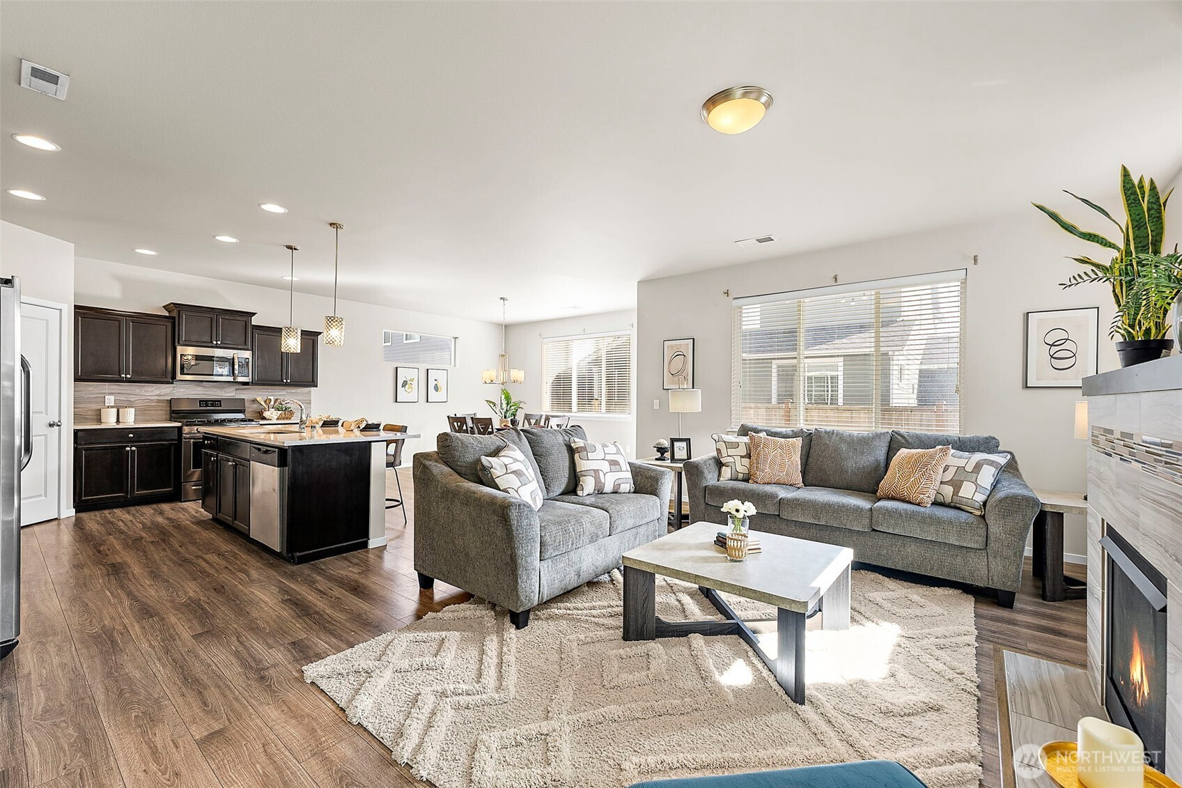 (650)533-3259Welcome Home to this beautiful 3-bedroom + upstairs bonus space, 2.5 bath home located in the small Mountainside neighborhood. Seller is offering $3500 toward interest rate buy down! Instantly inviting with beautiful landscaping and a covered front porch for full curb appeal. Three car garage, large open kitchen and living space with walk in pantry plus loads of storage space will make you want to call it your own. Gorgeous wood mantel over fireplace makes this home warm and inviting. Enjoy the fully fenced backyard, perfect for entertaining or outdoor living. Unwind in your expansive primary bedroom, complete with an oversized walk-in closet & 5-piece en-suite bath. Upstairs laundry, two additional bedrooms and a generous loft provide flexibility for a home office or second living area. AC to keep you nice and cool on warmer days. Close to shopping, dining, parks, schools & JBLM. This home is 100% ready for you.