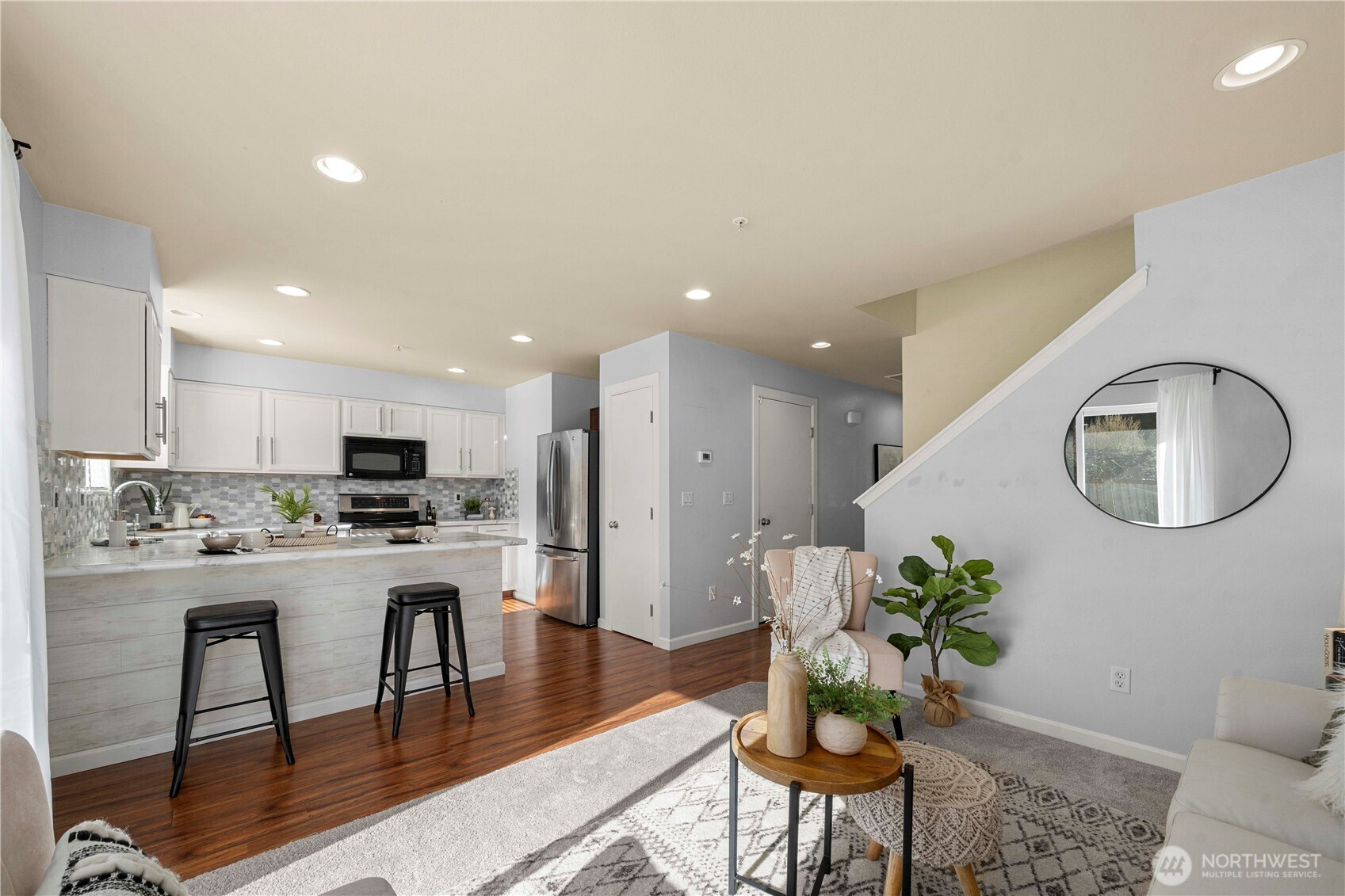 (650)533-3259This charming and thoughtfully designed end-unit townhome offers comfort and versatility throughout. The main floor features a cozy family room off the updated kitchen, plus an additional finished room with a closet-perfect for use as a dining room, living room, office, or playroom. Upstairs you'll find 3 spacious bedrooms with 2 full baths, including a primary suite with a large walk-in closet. Enjoy the convenience of a 1-car garage with driveway parking, along with generous grassy areas beside and behind the home-providing one of the most private settings in the community. Neighborhood amenities include a play area, picnic space, and walking trails. Ideally located near shopping, dining, recreation, freeways, JBLM, Boeing and more!