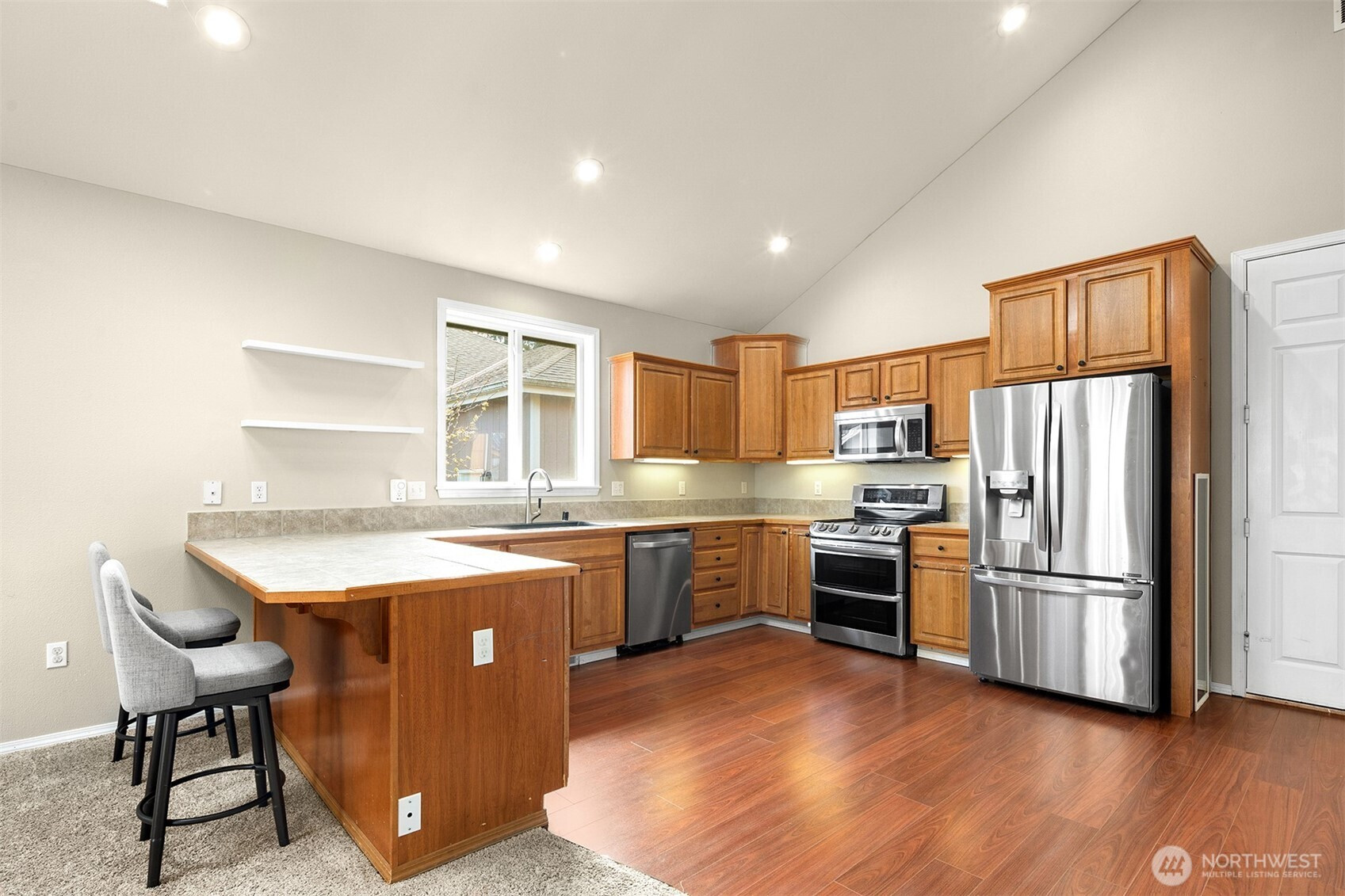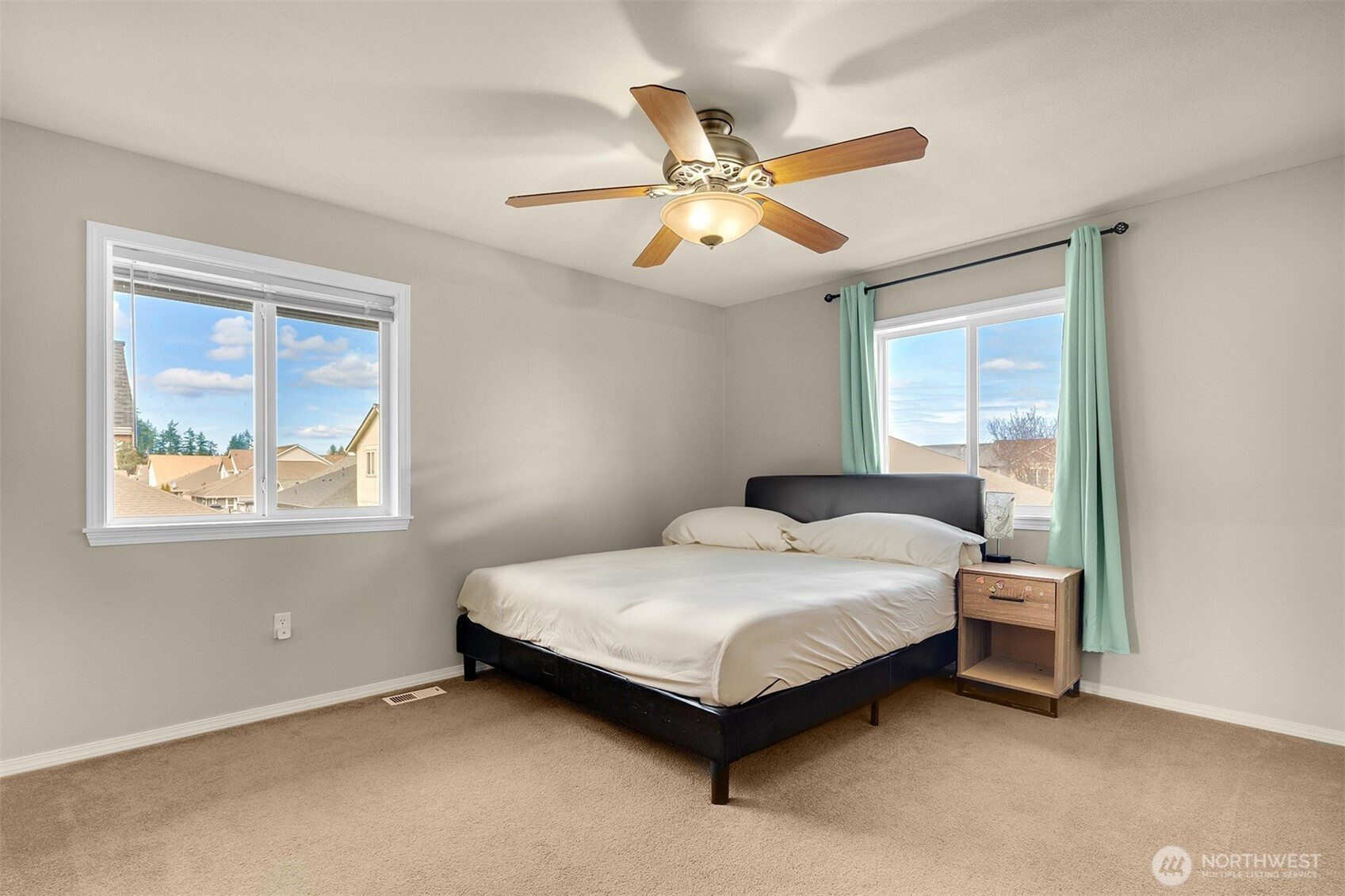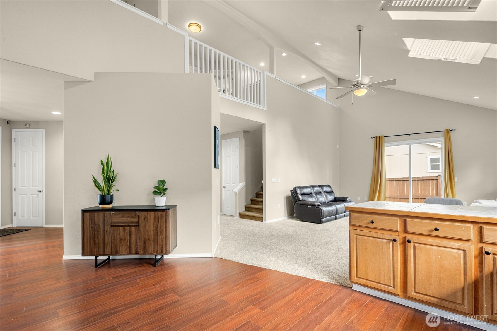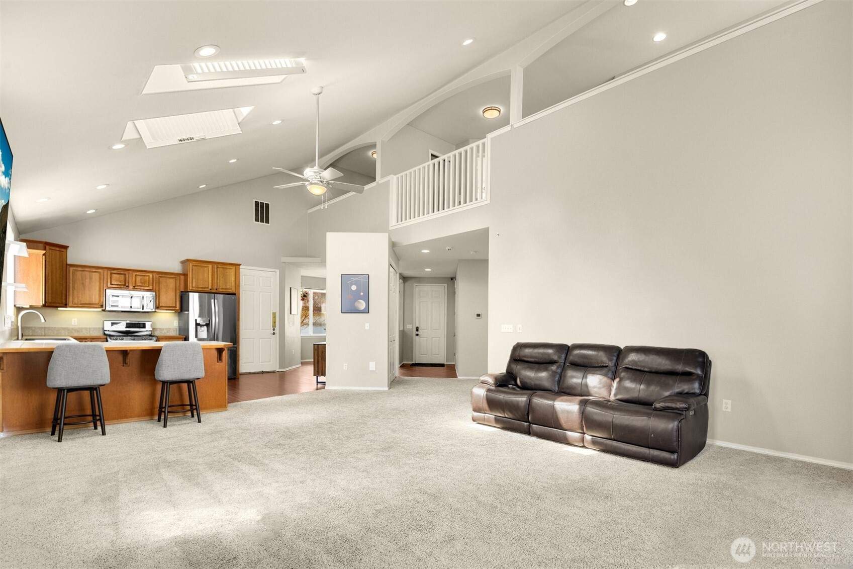(650)533-3259Welcome to this beautifully maintained, open and airy home in the highly sought-after gated community of Rainier View Court. Soaring ceilings and an abundance of natural light enhance the spacious open-concept design, creating a bright, airy feel throughout. Offering 2,213 square feet, this expansive home features newer skylights, vaulted ceilings, A/C for warm summer days, and a cozy gas fireplace for cooler evenings. Enjoy peace of mind with newer roof and gutters, central vac, high-tech-wiring for built-in speakers, and an abundance of storage. The oversized kitchen is designed for both everyday living and entertaining, featuring ample cabinetry and counter space, stainless steel appliances, and a large breakfast bar. Conveniently located on the main level, the bright and roomy primary bedroom offers a 5-piece spa-like ensuite + two walk in closets! Upstairs, a versatile loft overlooks the main living area and connects to a private office with a built-in desk, ideal for working from home. Generously sized upstairs bedrooms share a Jack-and-Jill ensuite for added functionality. Step outside to a fully fenced, low-maintenance yard with space to garden and a storage shed. Enjoy access to community amenities including a beautiful park with two playgrounds and a basketball court. Ideally located near shopping, dining, parks, and just minutes to JBLM, this home perfectly blends space, comfort, and community.