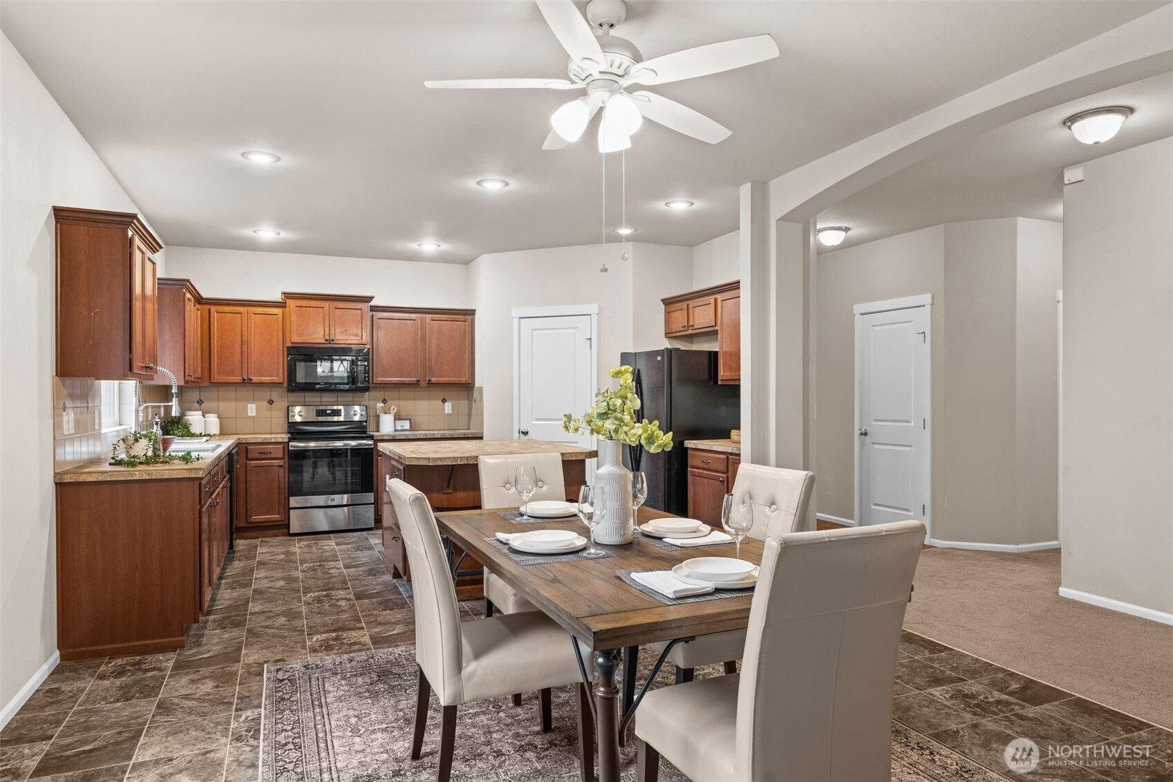 (650)533-3259Welcome to this well-maintained 4 bed, 2 bath rambler tucked away at the end of a quiet cul-de-sac in Spanaway! Offering 1,812 sq ft of single-level living, this home delivers both functionality and comfort in a highly desirable layout. As you step inside, you’re greeted by an open-concept living space with vaulted ceilings that create an airy, inviting feel—perfect for both everyday living and entertaining. The kitchen flows seamlessly into the dining and living areas, making it easy to stay connected whether you're hosting guests or enjoying a quiet night in. The primary suite offers a private retreat with its own en-suite bath, while three additional bedrooms provide flexibility for guests, office space, or growing households. Situated on a spacious lot at the end of the cul-de-sac, you’ll enjoy added privacy, minimal traffic, and room to relax or entertain outdoors. Whether it’s summer BBQs, pets, or play, this backyard delivers! In the community, enjoy the playground and basketball court that's great for community gatherings and summertime fun. Conveniently located near JBLM, shopping, and major commuting routes, this home checks all the boxes for comfort, convenience, and long-term value.