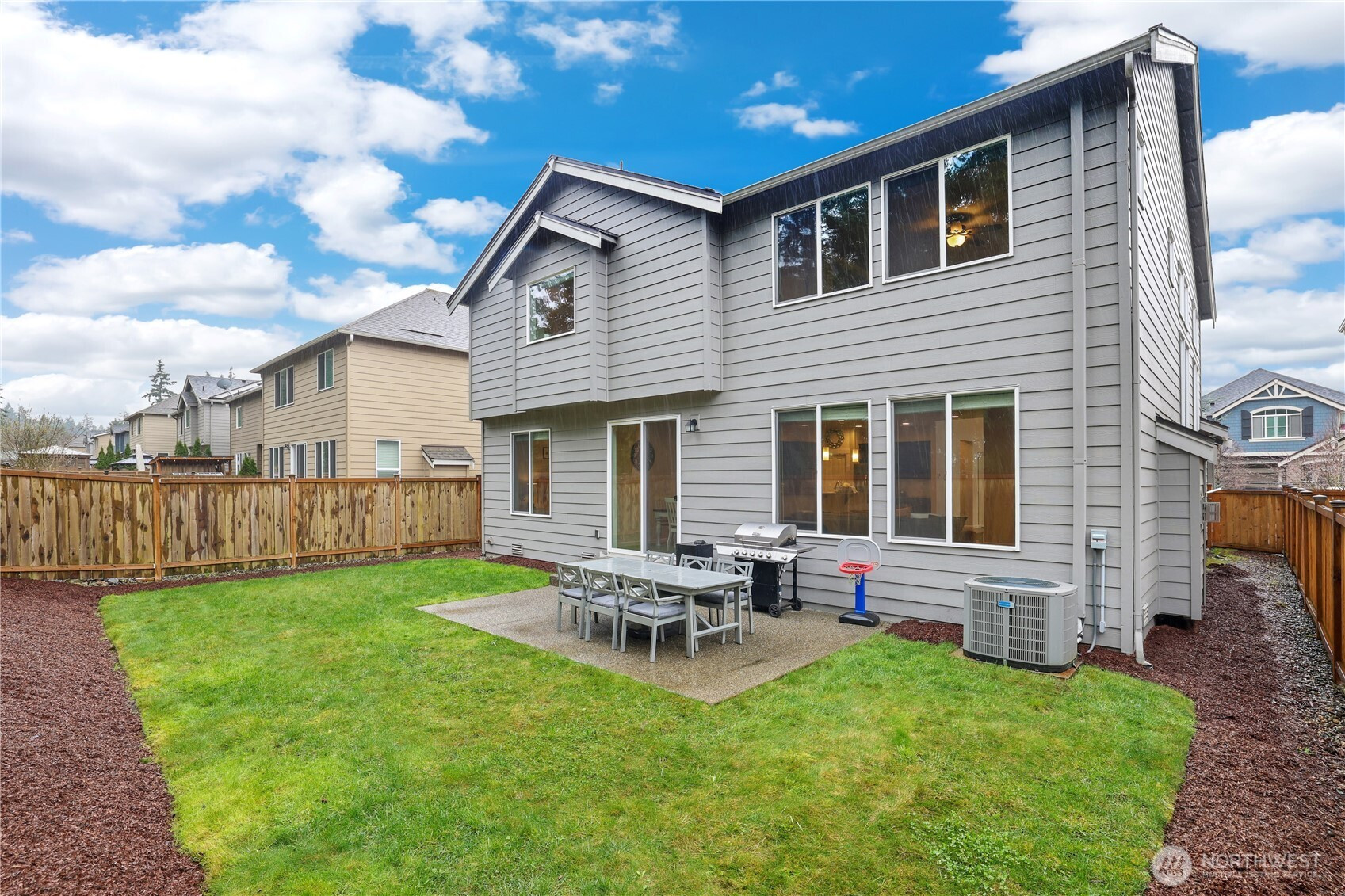 (650)533-3259Beautifully maintained home in Rainier Ridge offering space, comfort, and thoughtful upgrades throughout. A desirable junior suite on the main floor is perfect for guests or multigenerational living, while the main-level office easily functions as a 6th bedroom. The chef-inspired kitchen features stainless steel appliances, a walk-in pantry, and opens seamlessly to the main living area with a cozy fireplace and central A/C for year-round comfort. Upstairs, the expansive primary suite offers dual walk-in closets and a spa-inspired bath, creating a true retreat. A large bonus room adds flexibility for a media room, play space, or additional lounge area. Enjoy modern convenience with a smart sprinkler system, home security system, smart garage door opener, smart front door lock, and doorbell camera. The garage also includes a 50-amp 14-50 outlet for EV charging. Outdoor living is easy with a backyard patio, while the front yard is enhanced with attractive stone landscaping. Ideally located close to Expedition Elementary School, this home offers a perfect blend of flexible living space, smart technology, and modern comfort in a sought-after community.