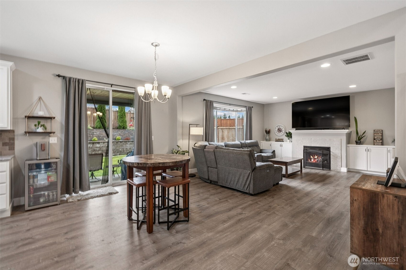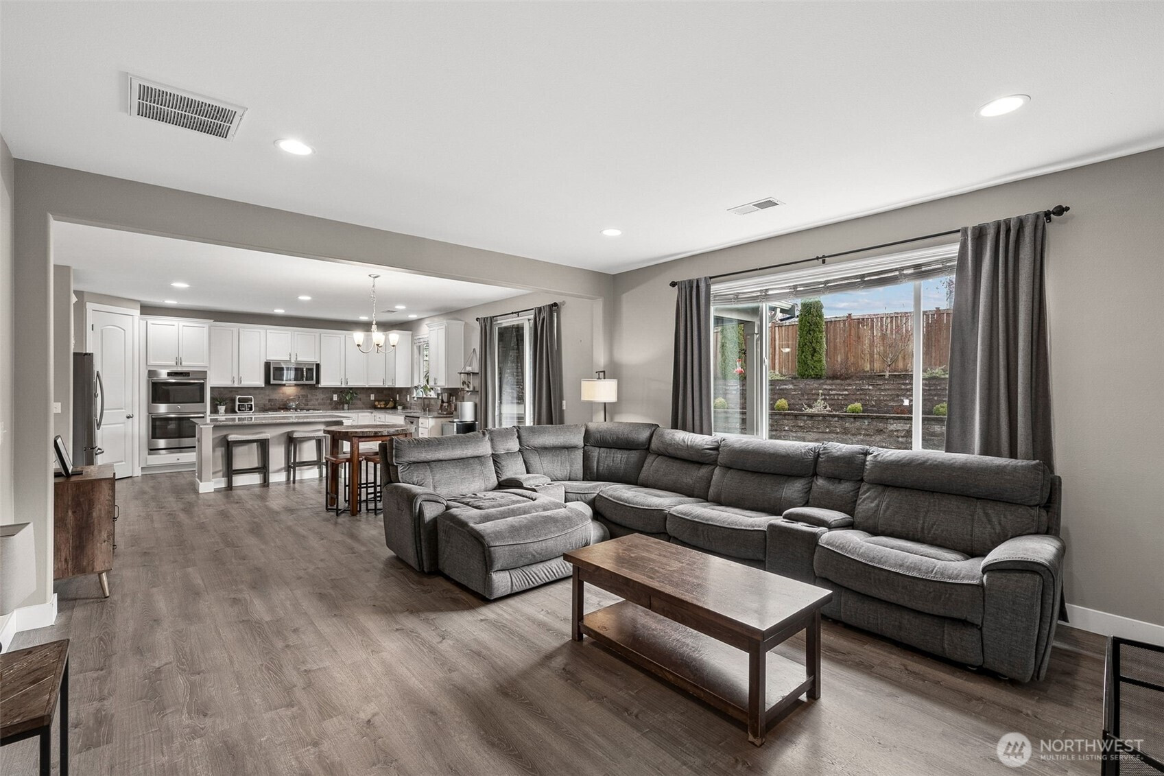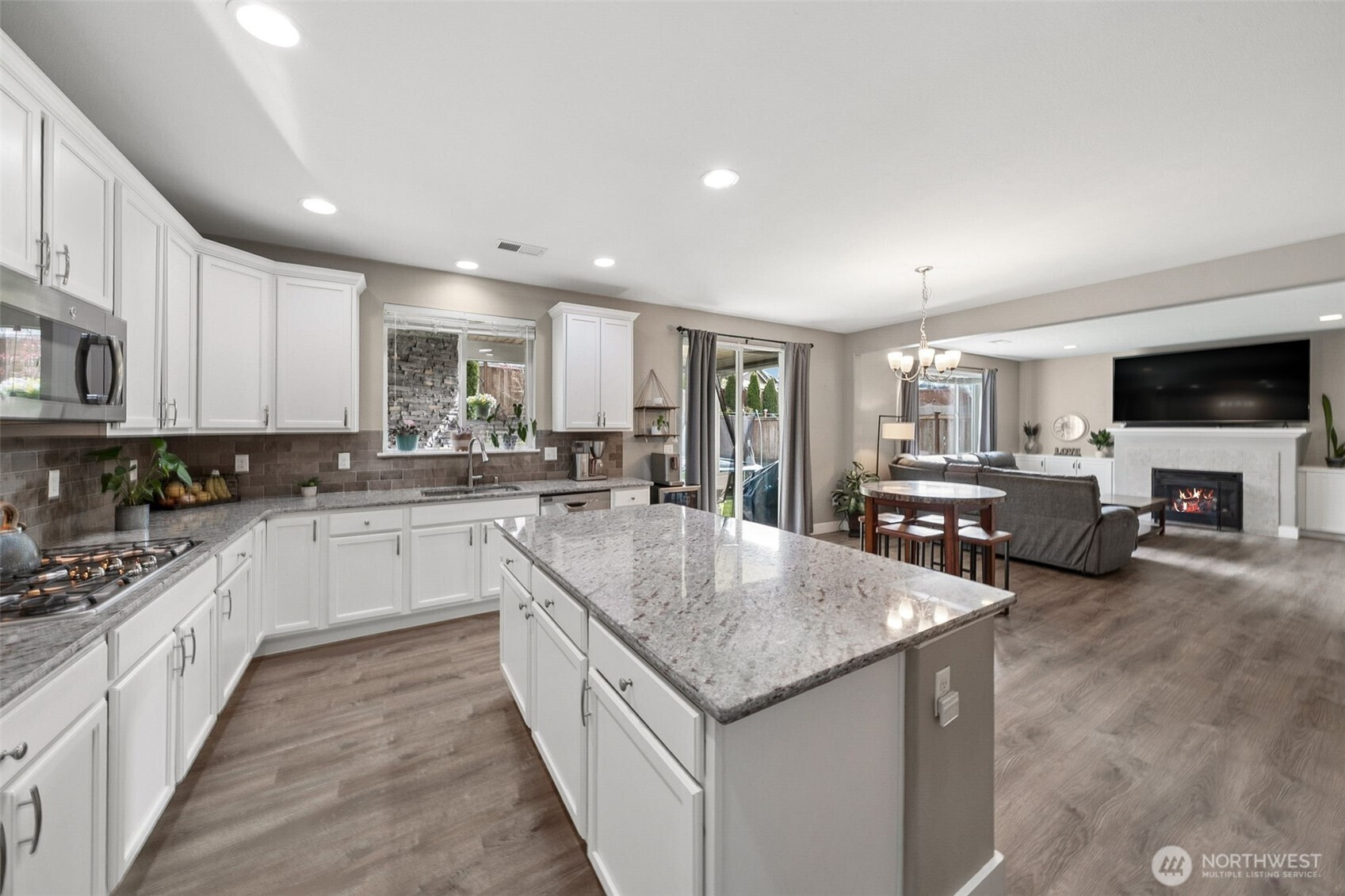 (650)533-3259An ever popular Seth model by Richmond American on a large corner lot is now available for you to call home! This 3,089sqft home features 5 bedrooms, 3 of which have walk in closets, 2.5 baths, formal and informal dining, huge loft and upgrades galore! The entrance into the home is delightful and welcoming with portico and large porch. New Lux Vinyl Plank flooring graces the entire main floor living spaces. and you'll love the chef's kitchen with gas range, true double ovens, walk in pantry and large island overlooking the great room. The back yard features a covered patio with gas fireplace overlooking the professionally landscaped yard with dramatic landscape lighting. Upstairs you'll find the Primary suite complete with 2 walk in closets and 5 piece bath, plus 3 bedrooms (5th bedroom is on the main level), laundry room, loft and hall bath. 3 car garage, Central AC, Sumner- BL School district and tons of storage make this home the obvious choice! Walking distance to parks, trail heads and nearby retail/ dining!
