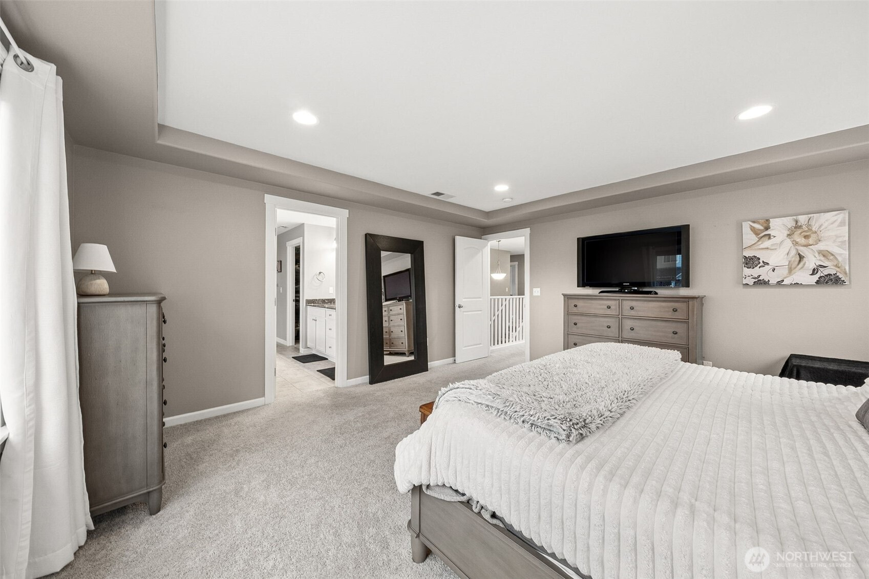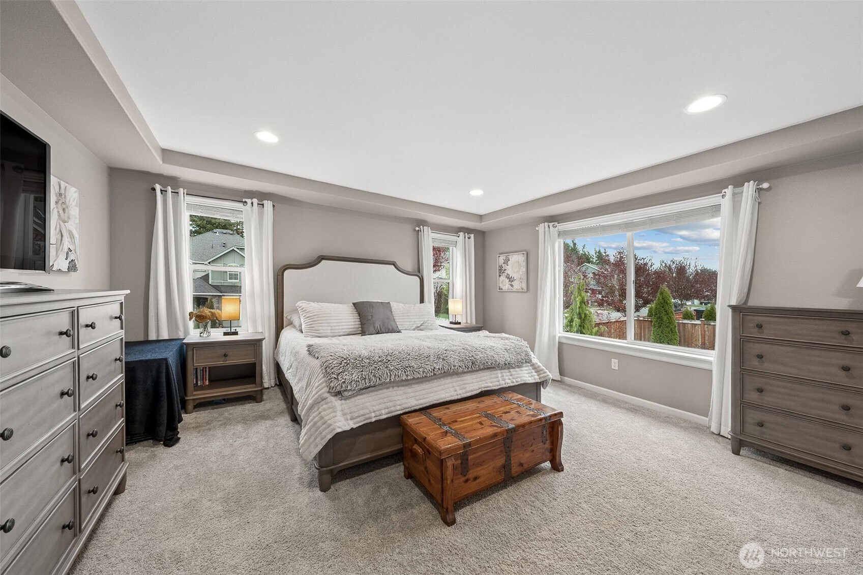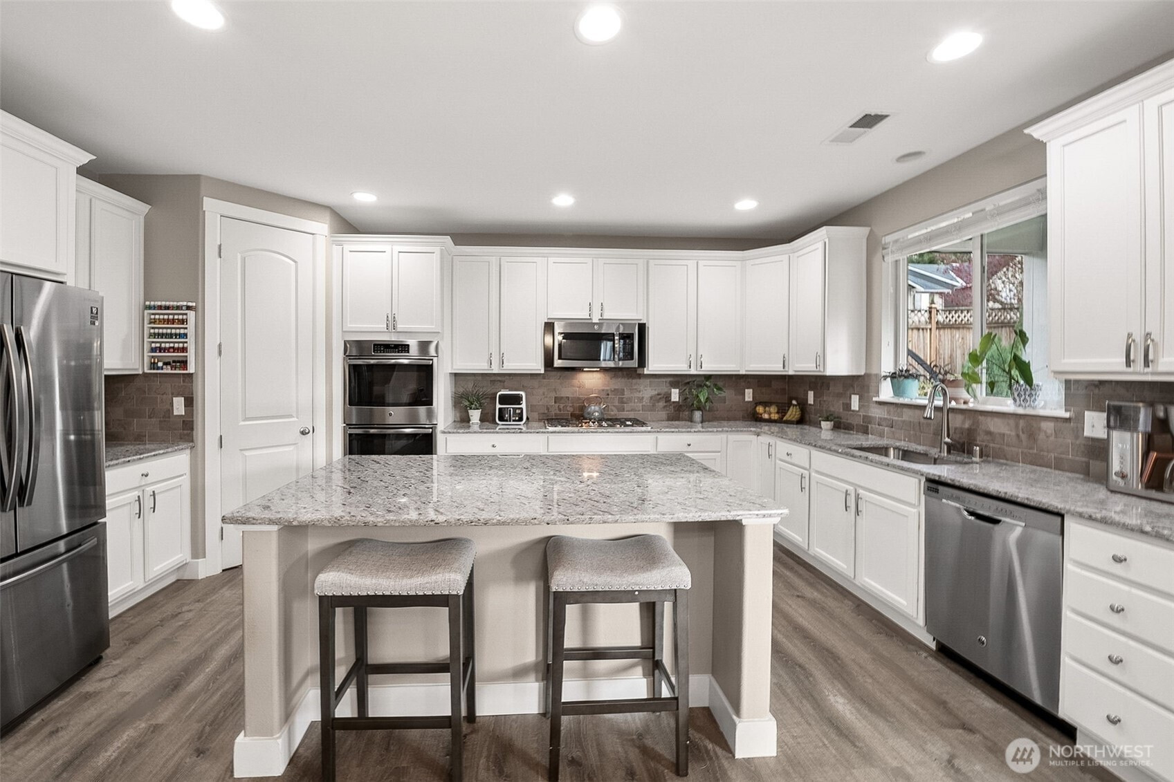 (650)533-3259An ever popular Seth model by Richmond American on a large corner lot is now available for you to call home! This 3,089sqft home features 5 bedrooms, 3 of which have walk in closets, 2.5 baths, formal and informal dining, huge loft and upgrades galore! The entrance into the home is delightful and welcoming with portico and large porch. New Lux Vinyl Plank flooring graces the entire main floor living spaces. and you'll love the chef's kitchen with gas range, true double ovens, walk in pantry and large island overlooking the great room. The back yard features a covered patio with gas fireplace overlooking the professionally landscaped yard with dramatic landscape lighting. Upstairs you'll find the Primary suite complete with 2 walk in closets and 5 piece bath, plus 3 bedrooms (5th bedroom is on the main level), laundry room, loft and hall bath. 3 car garage, Central AC, Sumner- BL School district and tons of storage make this home the obvious choice! Walking distance to parks, trail heads and nearby retail/ dining!