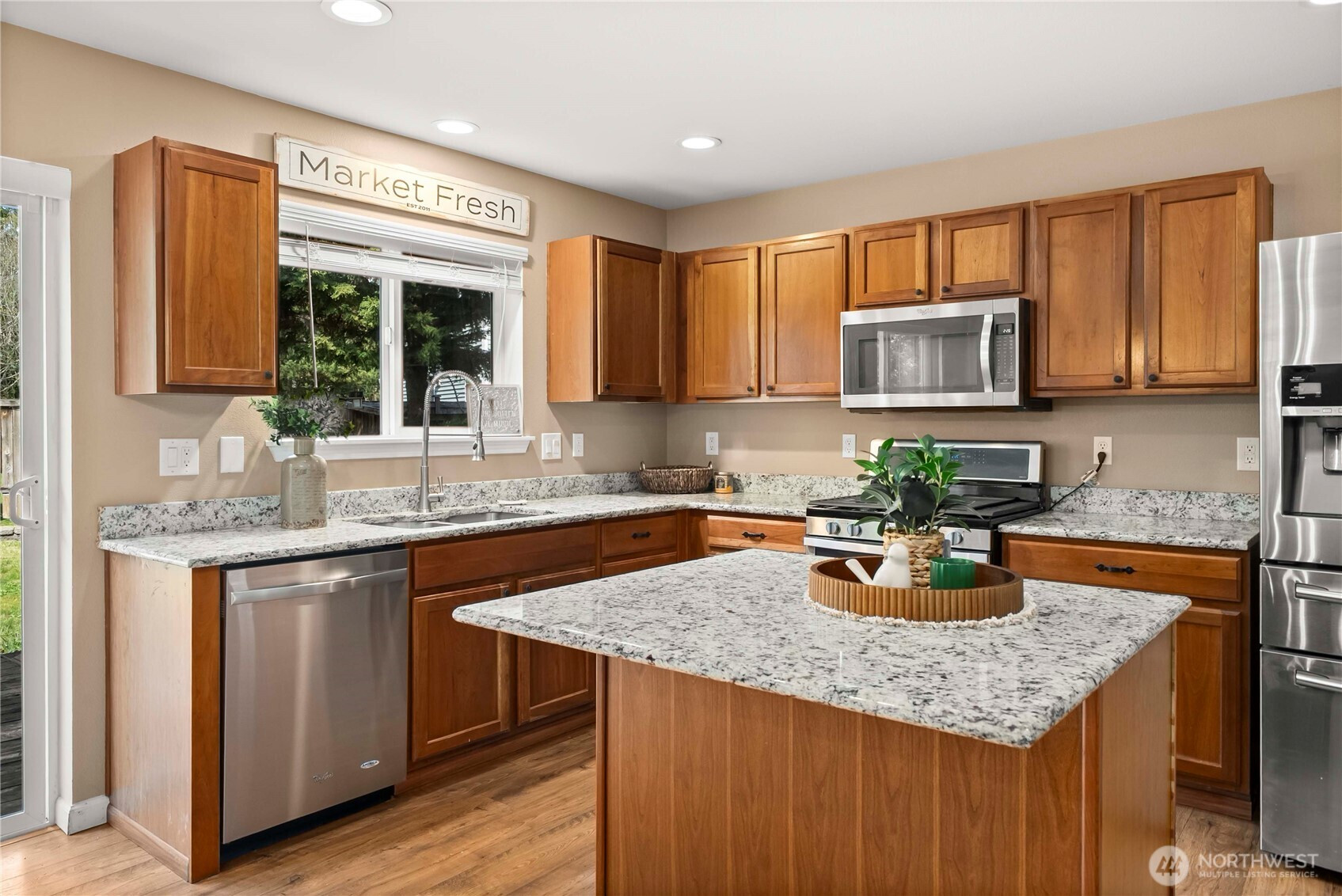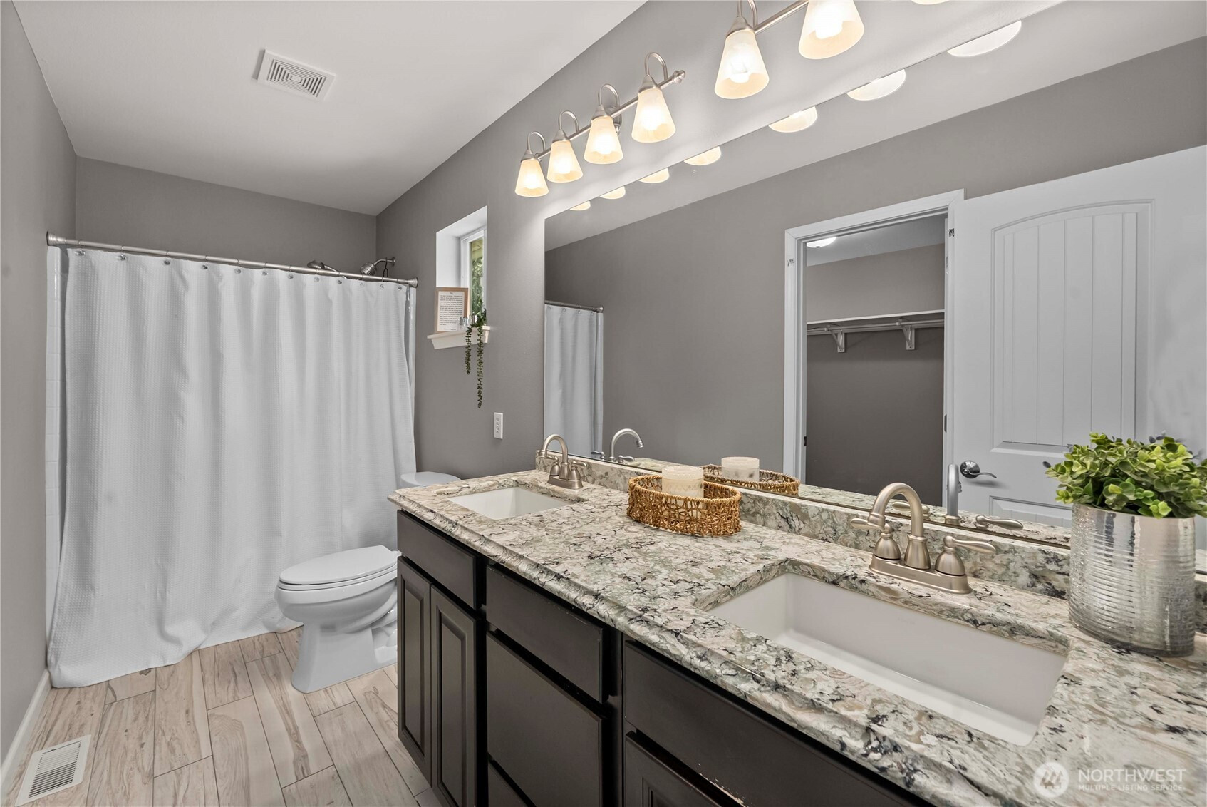 (650)533-3259Welcome home to this beautiful residence in one of Bonney Lake's most conveniently located neighborhoods. Perfectly positioned for both convenience & comfort, this home offers an ideal central location, just a few minutes from the freeway for easy commuting, with top-rated schools & everyday shopping only a short walk or drive away. Step inside to a bright, light-filled open-concept living space where the family room & kitchen naturally flow together. Large windows frame views of the generously sized backyard with sprinkler system, custom french drain & entertainment deck, which backs directly to a peaceful greenbelt; creating a private, nature-filled retreat right at home. The chef-friendly kitchen shines with sleek stainless steel appliances, elegant granite countertops, center island, and a clean layout designed for both everyday living & entertaining. The entire main level features beautiful wide-plank flooring that adds warmth and modern style. Upstairs, you'll find oversized, generous bedrooms, each with spacious walk-in closets along with two full bathrooms! This thoughtful layout provides plenty of room for guests, or a home office. Home has it's own separate low-voltage panel & is wired for a generator & has natural gas hookups, perfect for weathering PNW storms. Whether you're looking for convenience, comfort, or that perfect blend of indoor and outdoor living, this Bonney Lake home checks every box. Don't miss your opportunity to make it yours!
