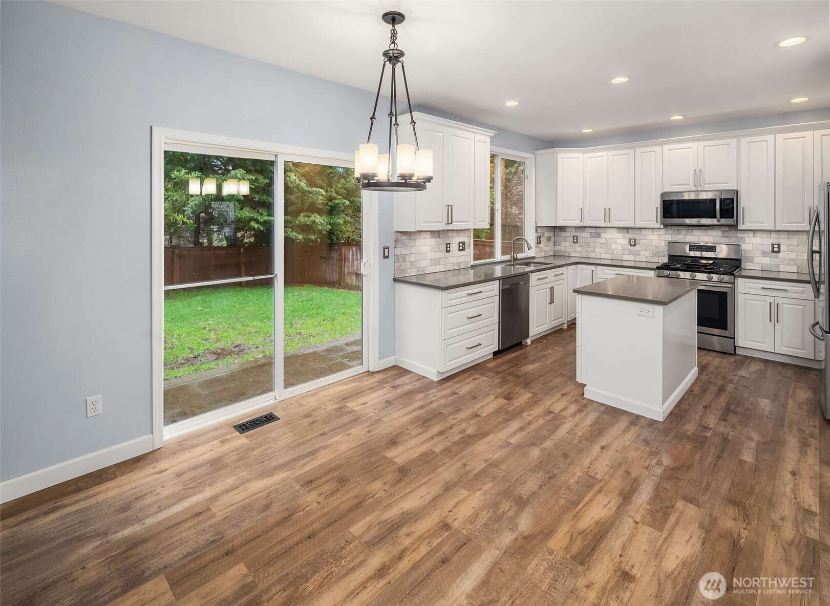 (650)533-3259Beautifully remodeled to meet the needs of today’s buyers, this home offers a perfect blend of style and functionality. The kitchen features white wood cabinetry, quartz countertops, a Carrara marble backsplash, stainless steel appliances, a center island, and a pantry for ample storage. The spacious primary suite includes a walk-in closet and an updated bath with newer cabinetry, quartz counters, and a walk-in shower with dual shower heads. The inviting family room showcases a stone-surround gas log fireplace, creating a warm and welcoming ambiance for cool evenings. Skylights and updated lighting enhance the home’s bright and airy feel, while luxury vinyl flooring extends throughout the main living areas and staircase. Enjoy year-round outdoor living with a spacious patio and gazebo, perfect for entertaining. The fully fenced backyard offers privacy and a serene setting, backing to lush ferns and forest, and is complemented by warm evening lighting. Recent updates include a newer roof (2021), along with a new furnace and hot water heater installed in 2025, providing added comfort and peace of mind. Located in the desirable Lakeland community, residents enjoy access to Lakeland Hills Park, scenic paved walking trails, and convenient shopping and dining at Lakeland Town Center, including coffee shops and restaurants.