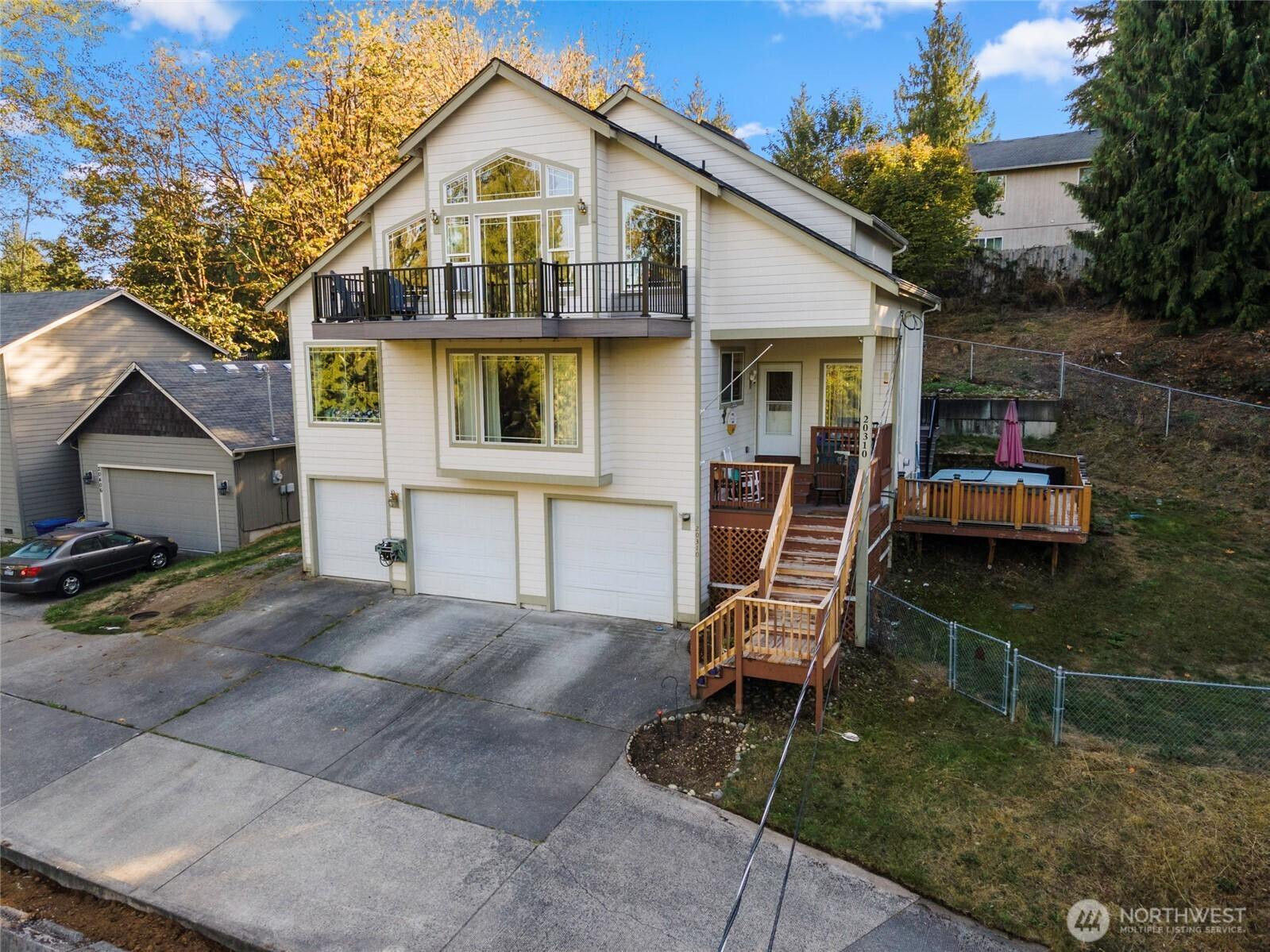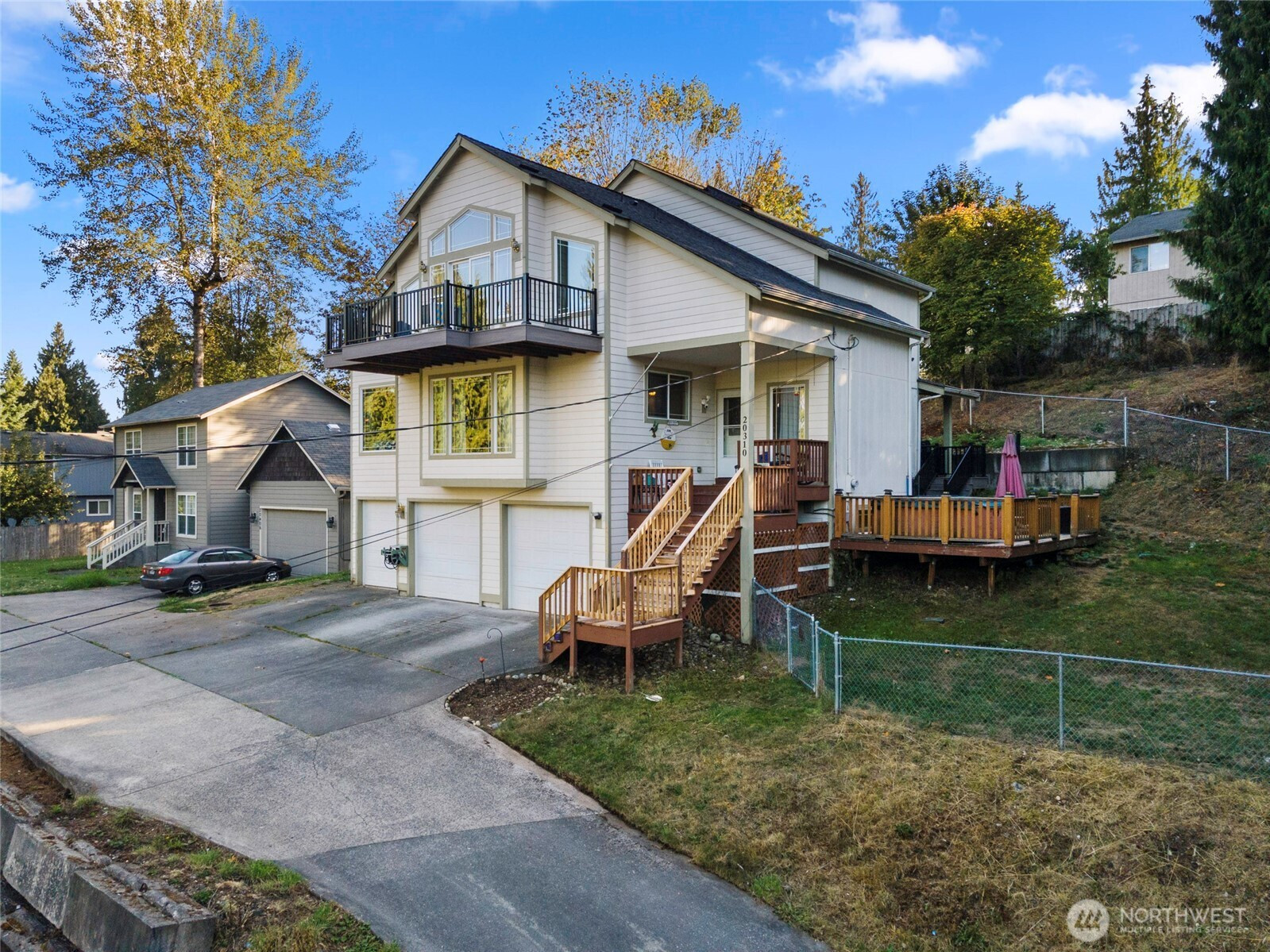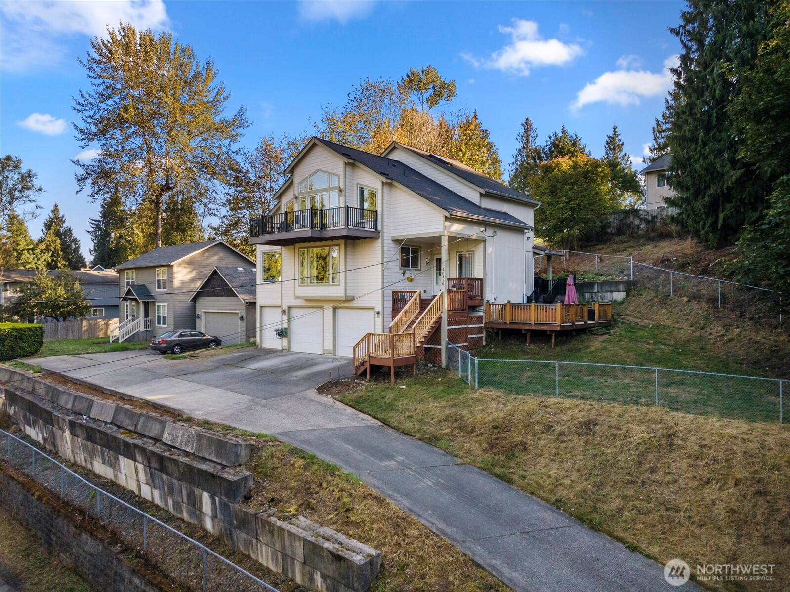 (650)533-3259Step into luxury and flexibility with this beautifully designed home in the desirable Sumner school district, ideal for multi-generational living. The main floor features a bedroom and full bath, while the upper level offers the primary suite with vaulted ceilings, a spa-like 5-piece bath, and a private deck with partial mountain and lake views, another bedroom and two spacious bonus rooms that could serve as bedrooms, office, media, or hobby space. The lower level has a huge bonus room with 3/4 bath and an extra room that would accommodate a kitchenette. Relax in the hot tub, enjoy fresh interior paint, new carpet on stairs & hallway, generous storage throughout, and a massive 3-car garage. Close to schools, shopping, and freeway access.