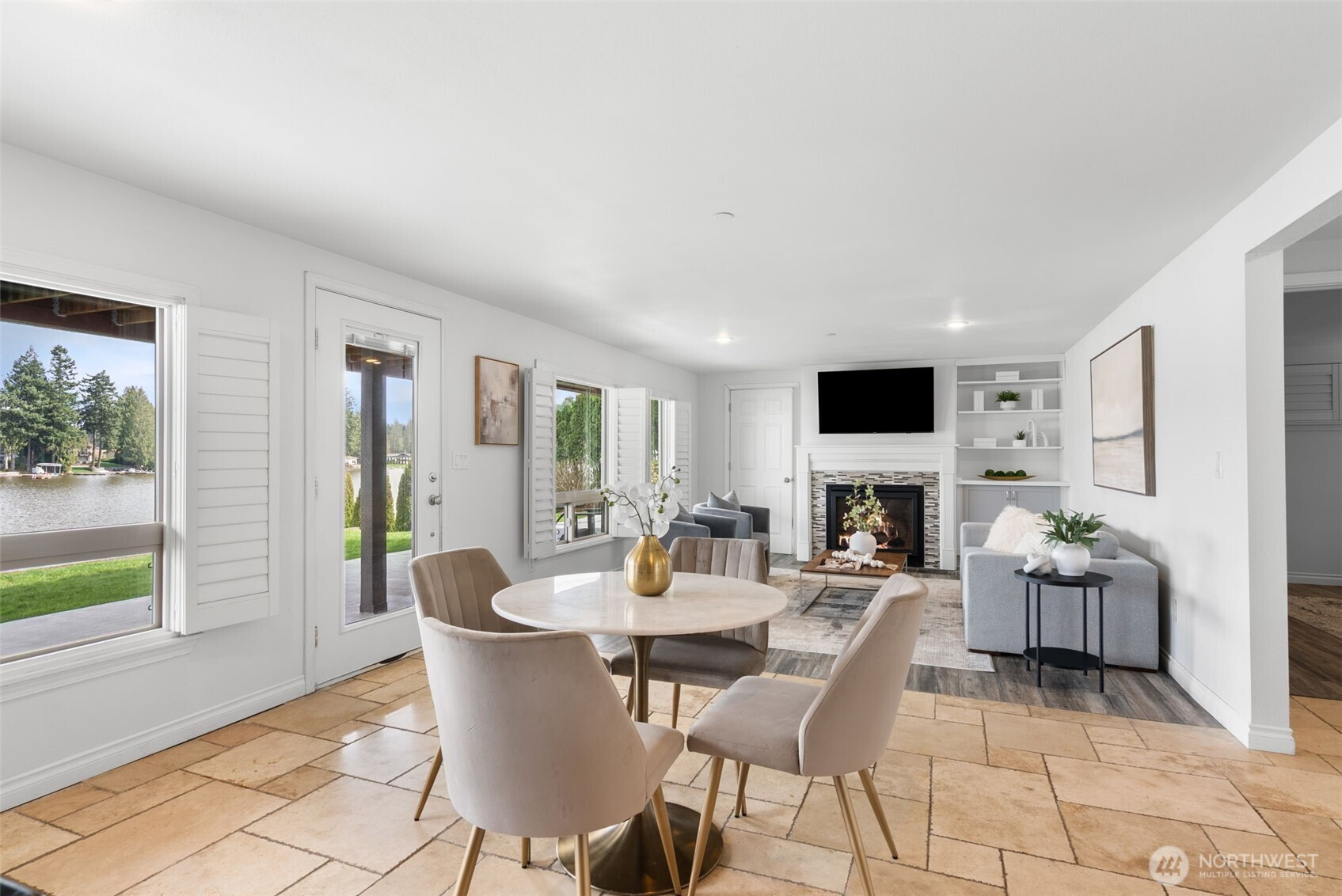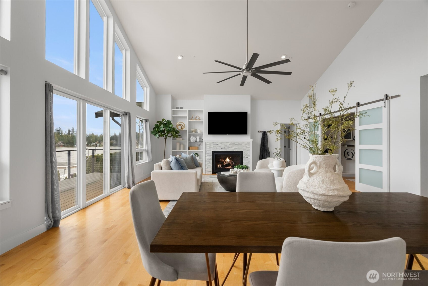 (650)533-3259This Lake Tapps waterfront home captures the lifestyle that draws people to Lake Tapps. With 84 feet of low bank shoreline + wide-open lake views, nearly every space in the home is designed to take in the scenery. Originally built in 1985 as a 2-bedroom lake home, the home was expanded in 2018 with a main-floor addition. The upper level now lives like newer construction with a 2 bed, 2 bath open-concept design, vaulted ceilings, and a wall of windows framing your view of the water. Living room centers around a gas fireplace w/ custom built-ins and the spacious Trex deck off the main living area creates the perfect setting for outdoor dining or morning coffee overlooking the lake. The primary suite offers a spa-inspired bath + walk-in closet, generous sized 2nd bedroom + plus a flexible bonus room that works well as an office, guest room, or additional living space. Lower level is a true ADU w/ two large bedrooms, walk-in closet, full bath + utility room. A full kitchen with large island anchors the space, open to a living area with its own gas fireplace + built-ins, all positioned to capture lake views. Step out to the covered patio & waterfront. Terraced landscaping leads to your private dock with solar boat lift, lakeside firepit, and enclosed storage for water toys and outdoor gear. The property includes member-only access to the community lake park featuring pickleball courts, swim beach, boat launch, picnic areas, + gathering spaces that make this community so special.