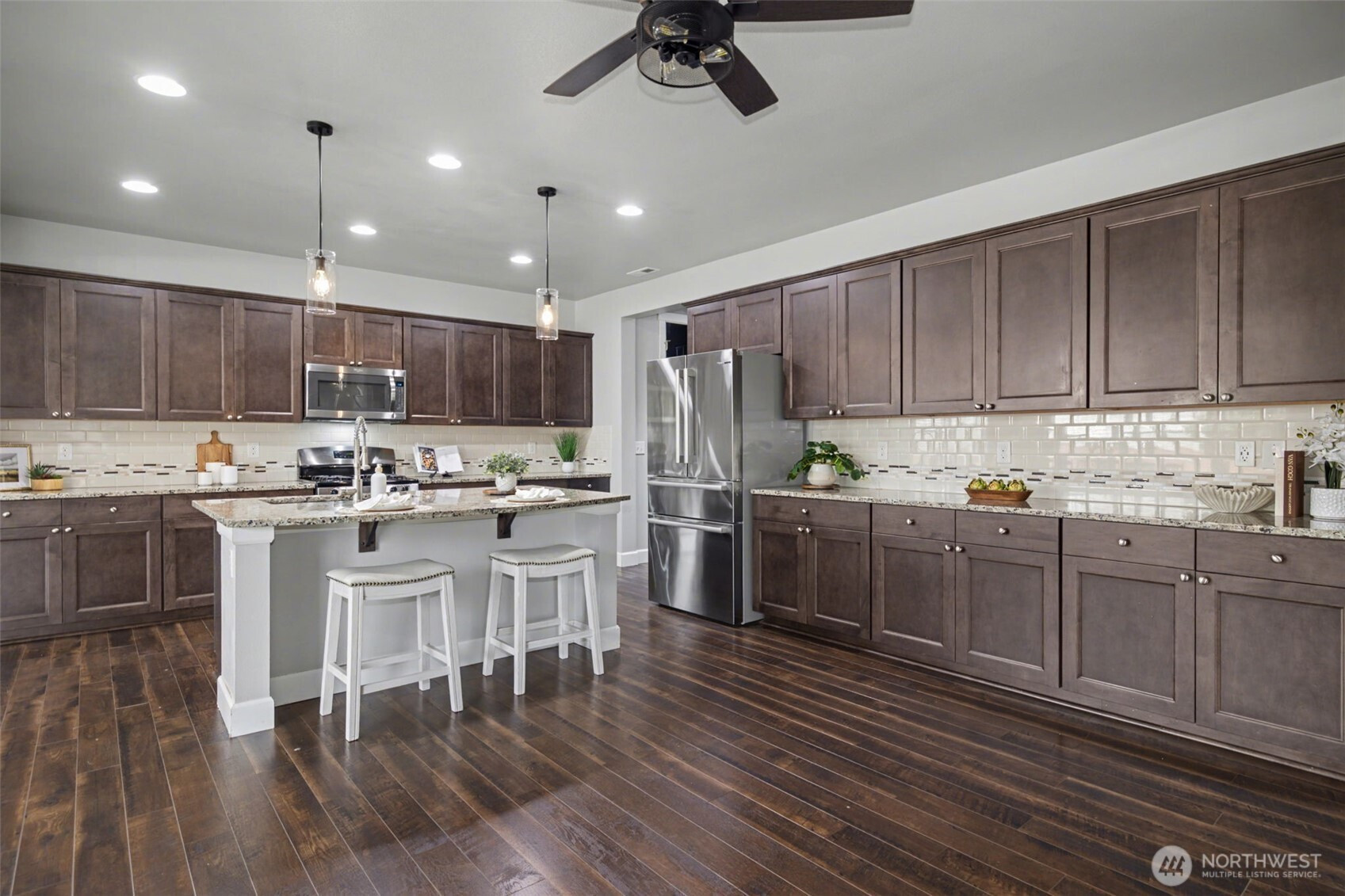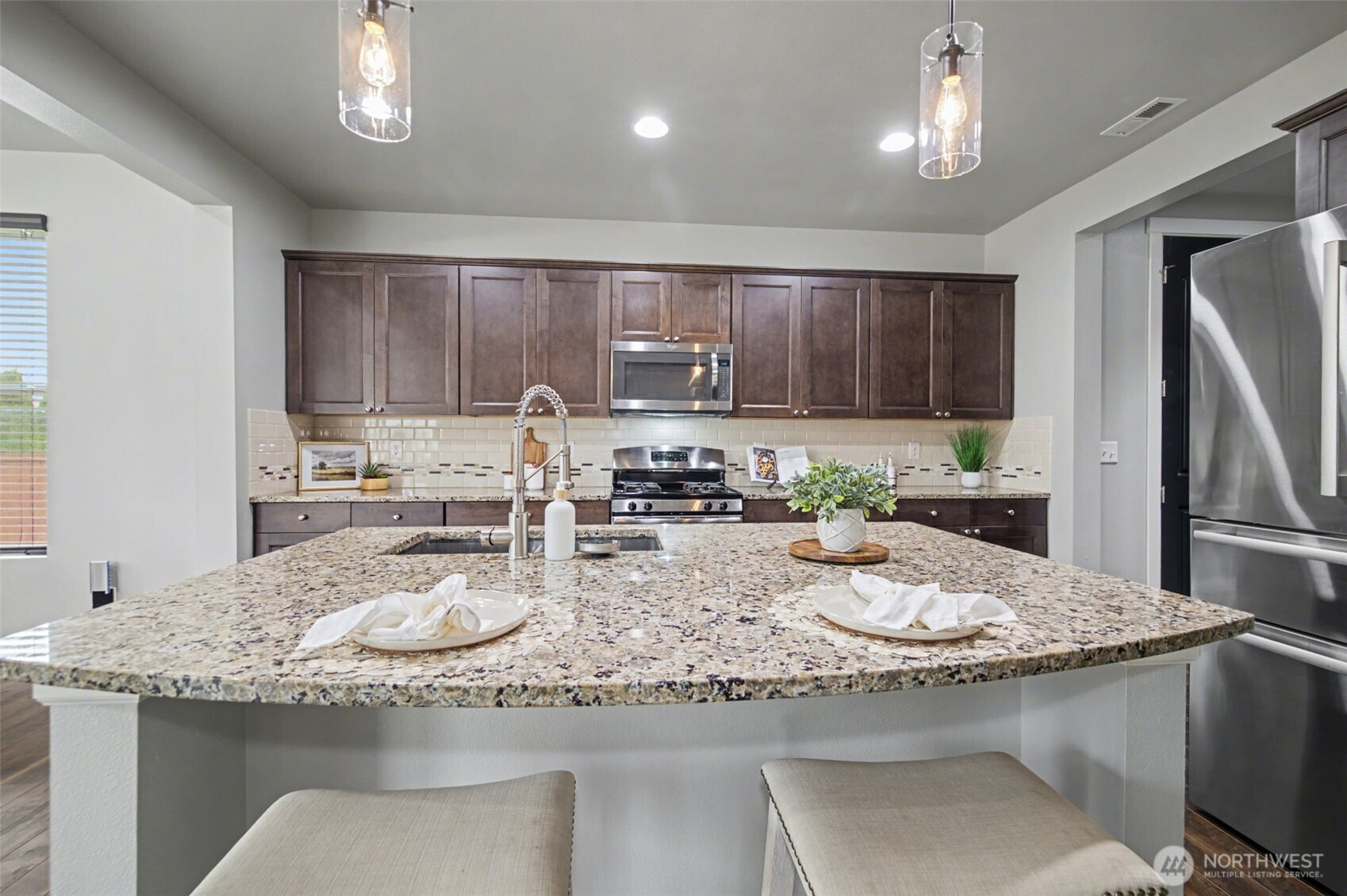 (650)533-3259Welcome to this beautifully maintained Richmond American resale in a fantastic Orting location, offering the perfect blend of space, comfort, and flexibility. The open-concept layout is ideal for everyday living and entertaining, centered around a Stunning Kitchen with extra cabinetry, granite countertops, SS appliances, a large island, and walk-in pantry—all flowing seamlessly into the spacious Living room and bright Dining area filled with tons of natural light. The main floor also features a private office, perfect for working from home. Upstairs you’ll find a versatile loft, convenient laundry room, and a spacious primary suite with an oversized walk-in closet and relaxing 5-piece bath, plus three additional bedrooms. Enjoy laminate hardwood flooring, updated LED lighting, a 30-amp garage plug, and RV hookup for extra convenience. Step outside to the oversized covered patio—perfect for year-round entertaining—with a private gate leading directly to the neighborhood park with open grassy fields and basketball courts. Extra side parking and dedicated RV space make this home even more practical and hard to find. A truly exceptional home that combines space, light, and lifestyle—Welcome Home.