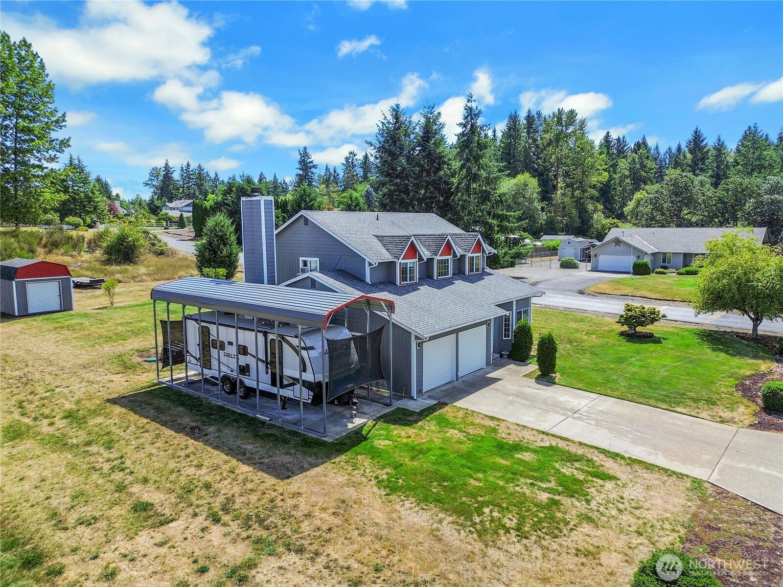 (650)533-3259Discover this updated two-story home on a spacious 33,700 SF lot! Step inside to new LPV flooring throughout the main level, an updated kitchen featuring butcher block counters, contemporary cabinets, appliances, and a stylish coffee bar with mini fridge and floating shelves. Versatile living space can flex as an oversized dining room. Upstairs offers 4 bedrooms including a vaulted-ceiling primary. New carpet in three bedrooms. Enjoy outdoor entertaining on the expansive deck with gazebo and privacy screen. Two outbuildings, including a finished 12x16 outbuilding with power, insulated and drywall/ easy to add heat. Corner lot is expansive and open for any wildlife that wants to roam in also. Bonus features: new PEX plumbing, 20-year exterior paint, and a 36x12 covered RV pad. Room to relax, work, and play! Close to JBLM!