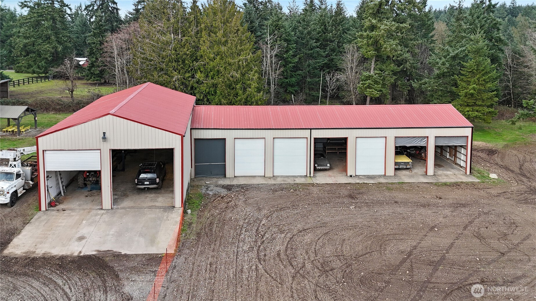 (650)533-3259Rare 10-acre dual-residence estate with exceptional potential! Truly one-of-a-kind property featuring two homes on two tax parcels, multiple large shops, and a beautiful gated, park-like setting. The main home is a custom-built 3,438 sf 5 bed/3 bath two-story w/basement—spacious kitchen w/Viking cooktop, wall oven, and built-ins, generous dining, office/den, great room w/wood & propane fireplaces, and large entertainment/media area w/bar. Primary suite features fireplace, built-ins, custom closet & ¾ bath w/dual-head shower. Updated paint, gutters, heat pump, electric furnace, durable Hardi-style siding, plus a home generator for peace of mind during inclement weather. Delightful in-ground pool w/new pump & fenced yard. Second home is a charming 936 sf 2 bed/1 bath rambler w/full kitchen, great room, wood fireplace & a huge 1,296 sf 2-bay garage w/shop, lighting, 1/2 bathroom, storage & separate power. Incredible outbuildings include a massive 9-bay and an additional 3-bay corrugated metal garage—both w/power, lighting & concrete floors (lifts excluded)—plus a barn, two sheds, and cross-fencing for horses or livestock. Rolling grassy grounds, mature evergreens, and gated entry offer privacy, function & limitless opportunity—ideal for multi-generational living, car collection, restoration, home business, or investment. A rare Graham treasure ready for modernization & new vision.