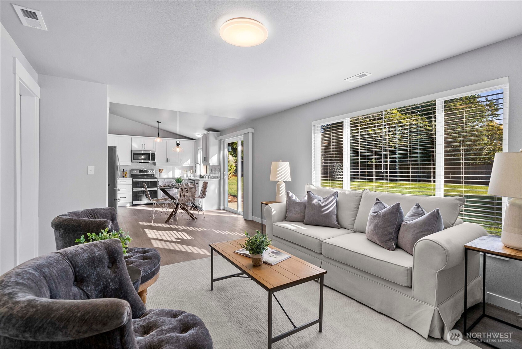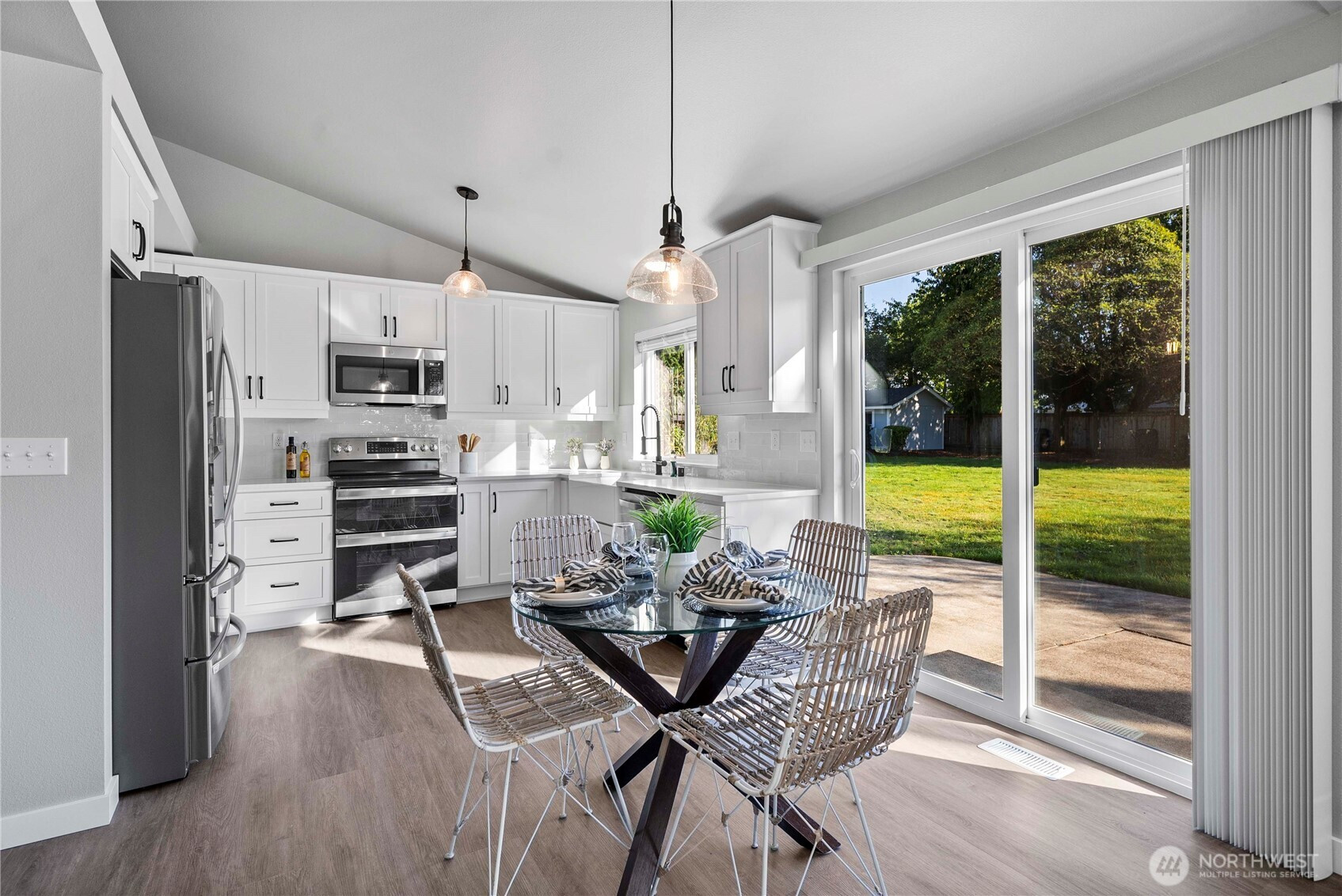 (650)533-3259Welcome to this fully remodeled rambler tucked away on a peaceful cul-de-sac street. Situated on a spacious .37-acre lot, this home offers the perfect blend of comfort and modern style. Featuring 3 bedrooms and 1.75 baths, the open-concept design showcases vaulted ceilings, a stunning gas fireplace, and new LVP flooring throughout. The beautifully updated kitchen includes white cabinetry, quartz countertops, and stainless steel appliances. The primary suite offers a huge walk-in closet, while the oversized 2-car garage provides ample storage. Enjoy privacy, modern finishes, and a prime location at the end of a quiet dead-end street — move-in ready and designed for effortless living.