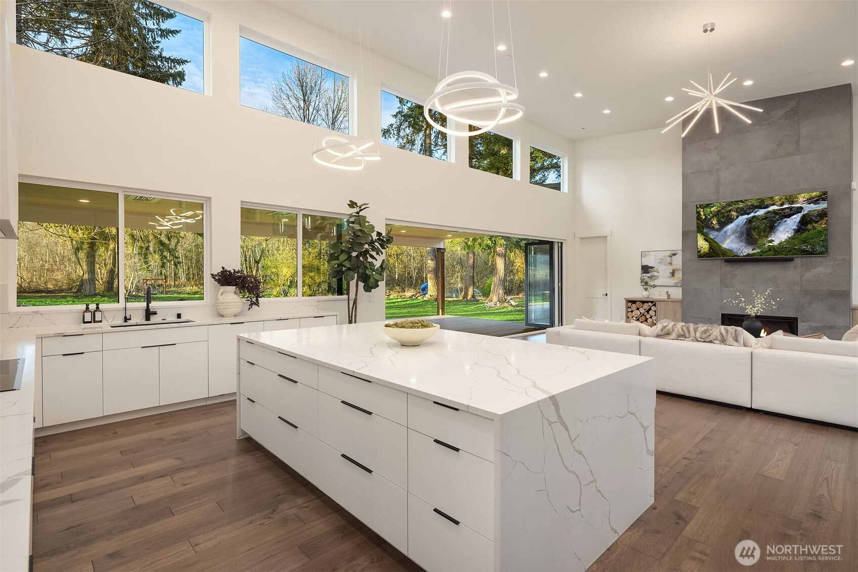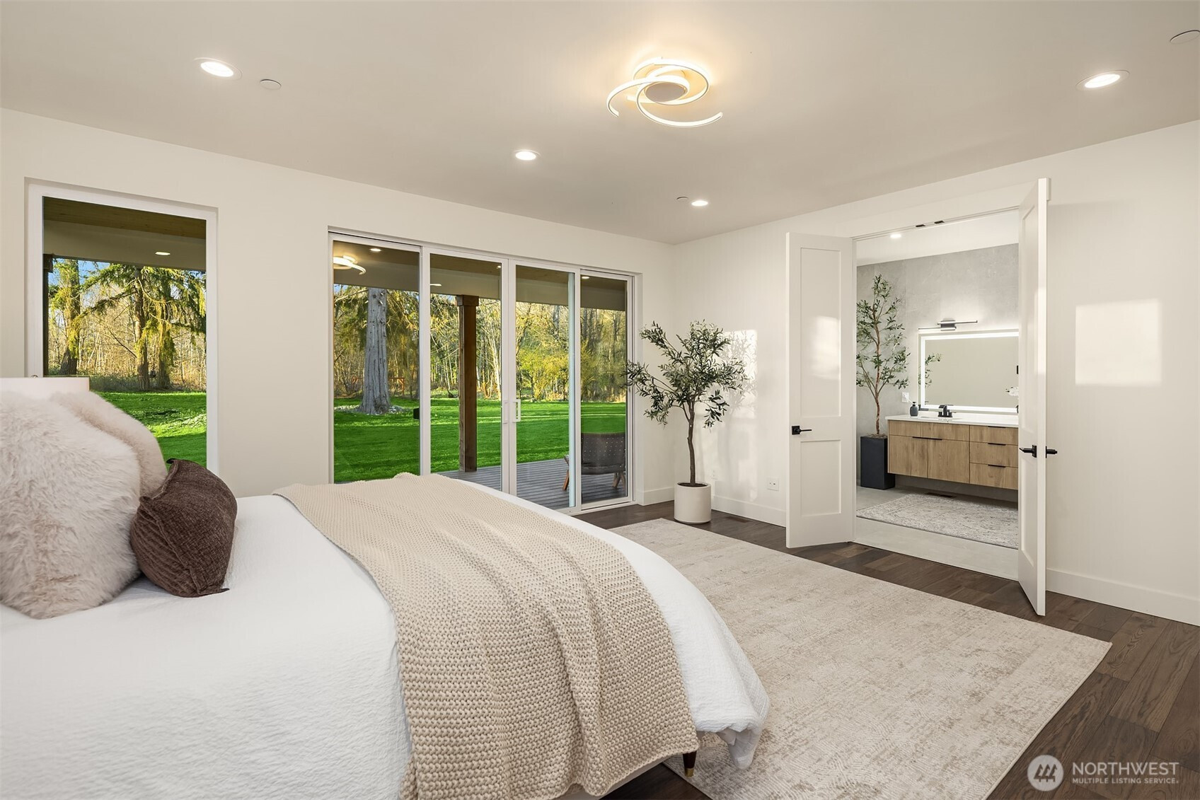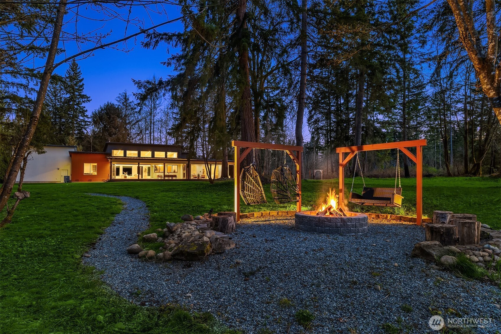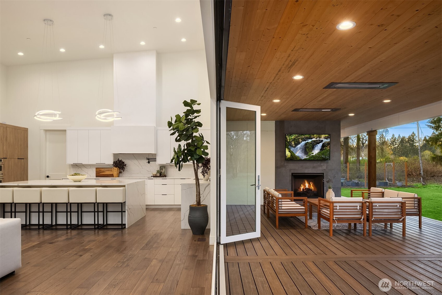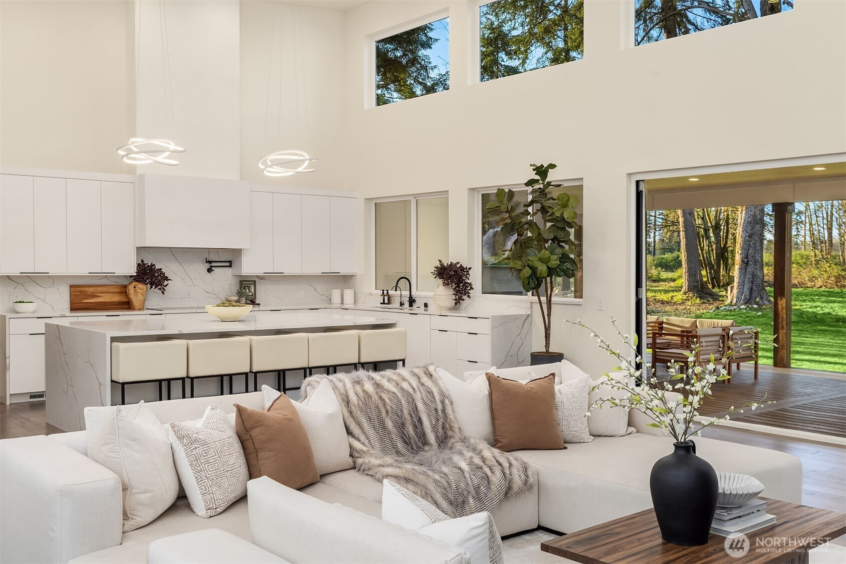 (650)533-3259Modern Northwest living meets rare land opportunity in Graham. Set on a beautifully level, expansive lot, this residence offers both refined design and the flexibility to expand with ample space and potential for a future DADU. Striking contemporary architecture is complemented by clean lines, mixed materials, and a thoughtfully designed layout. Inside, soaring ceilings and oversized windows flood the home with natural light, while the open-concept great room centers around a dramatic floor-to-ceiling fireplace. Expansive sliding doors create a seamless indoor-outdoor connection to the covered patio, complete with fireplace, perfect for year-round entertaining. The chef’s kitchen features a large quartz island, custom cabinetry, premium appliances, and a walk-in pantry, blending functionality with elevated design. The primary suite offers a serene retreat with direct outdoor access and a spa-inspired bath with designer finishes and a walk-in shower. Generous secondary spaces provide flexibility for guests, office, or media, while the sprawling grounds offer endless possibilities, garden, recreation, or future DADU. Private, peaceful setting with modern comforts and room to grow, this is Pacific Northwest living at its best.
