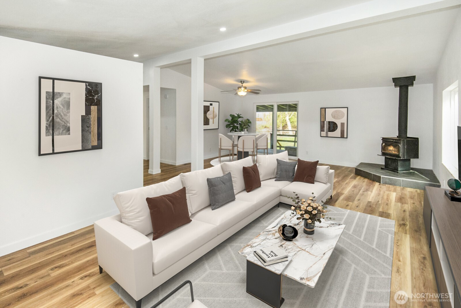 (650)533-3259Step into this beautifully remodeled double-wide home on nearly one-third of an acre in the charming town of South Prairie. Nearly every inch has been refreshed, featuring brand-new kitchen cabinets, countertops, and appliances, along with new laminate hardwood flooring throughout. Both bathrooms shine with new vanities and tubs, and the entire home—inside and out—has been freshly painted for a crisp, move-in-ready feel. A new furnace and a 2 year old roof complete all of the checklist items on this one. Nestled on a spacious, picturesque lot, this property offers a peaceful backyard setting with a serene view of the creek. A rare combination of modern updates and natural beauty, this home delivers comfort, style, and room to breathe.