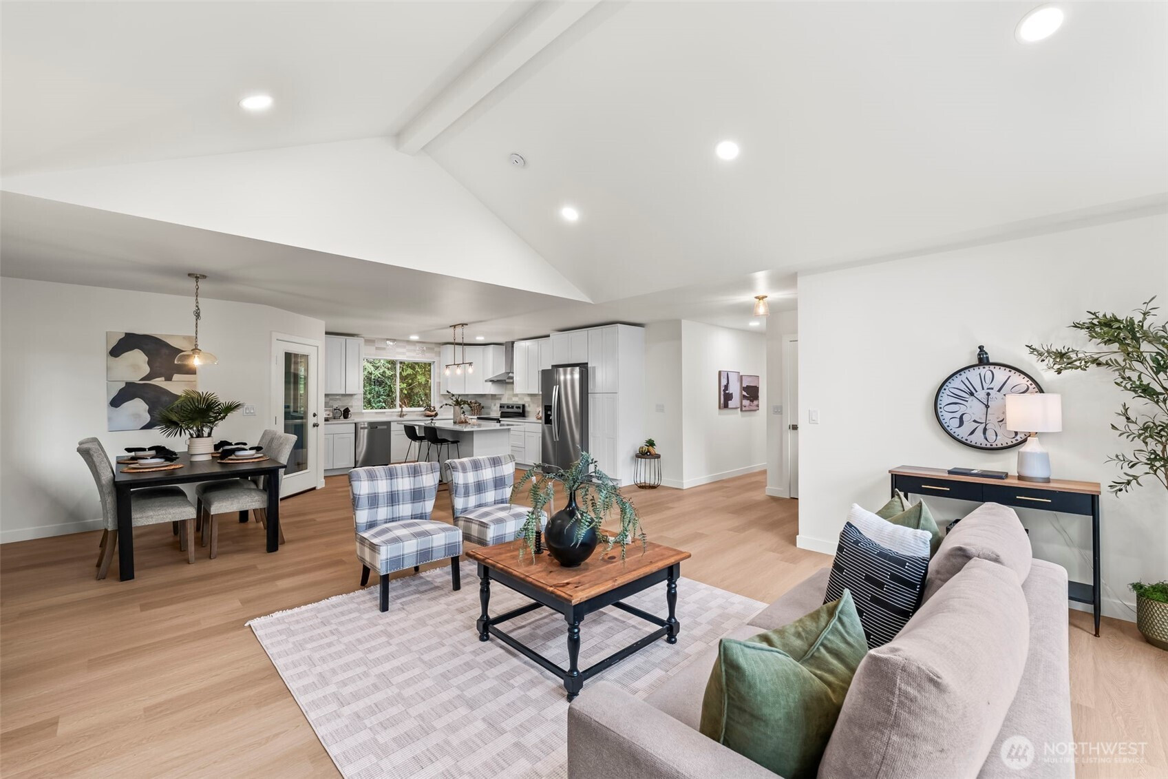(650)533-3259Every detail is NEW! Tucked quietly in a cul-de-sac in Gig Harbor’s Hidden Ridge, this delightful rambler has been completely reimagined! Inside, the newly opened layout/ great room has vaulted ceilings & expansive windows bringing in natural light & framing the ever-changing greens of the vista. The all-new kitchen gleams w/ white cabinets (soft close), quartz surfaces, fantastic island, handcrafted tile, & stainless appliances. Each bedroom & bath feel serene & grounded in soft modern finishes. From the new wide-plank floors to the fresh new windows, trim, doors, heat pump, deck, driveway, & landscaping, all the work has already been done—beautifully. It even has RV Parking! Close to town, Quiet & Convenient, TURNKEY - this is HOME!
