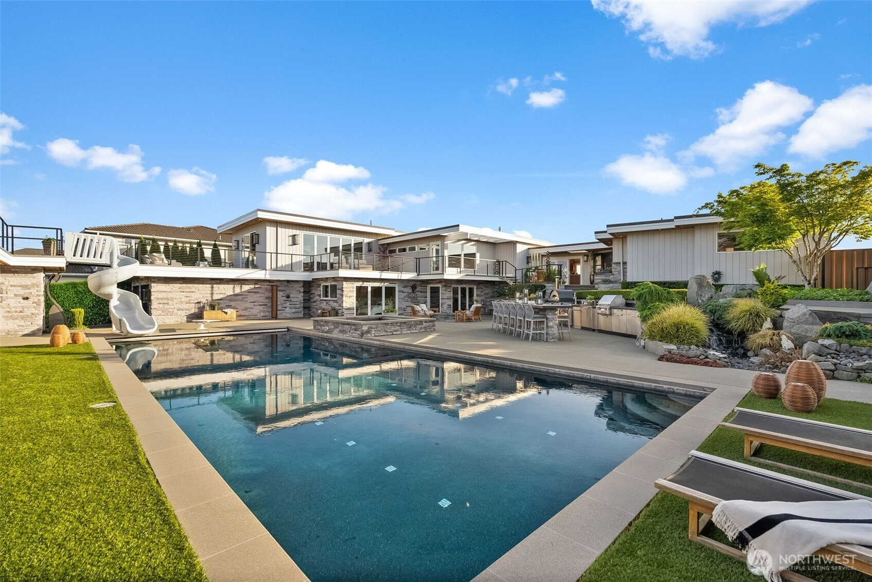 (650)533-3259A rare blend of luxury and charm in Browns Point, this Northwest Contemporary estate captures sweeping views of Puget Sound, the Olympics, Mt. Rainier, and Tacoma. Designed for refined living and effortless entertaining, it features LaCantina doors, a gourmet kitchen, spa-like amenities, media room, wine cellar, and a sleek membrane flat roof. Outside, the resort-style yard stuns with a pool, waterfall, hot tub, water slide, underwater speakers, and artisan 14th Colony sconces. Host in the dreamy outdoor kitchen or relax on the custom putting green. A true retreat.