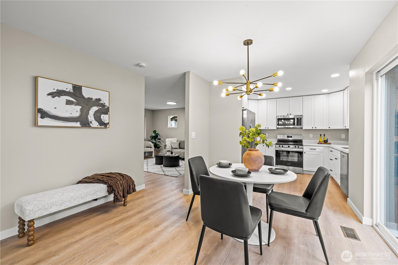(650)533-3259Completely renovated from the top down, this turnkey home pairs timeless design with quality craftsmanship. A new roof, fresh interior and exterior paint, and curated finishes elevate every space. The kitchen and baths feature custom dovetail cabinetry with soft-close hardware, quartz countertops, and all-new appliances. Life proof luxury vinyl flooring with custom stair nosing flows throughout, and the living area is highlighted by a gas fireplace with a ribbon oak tile surround and custom mantel. The primary suite offers a spa-style bath with a custom-tiled shower, oversized soaking tub, and bespoke vanity. The expansive backyard backs to a mature neighborhood and includes an inviting firepit. The home is located within a gated community.