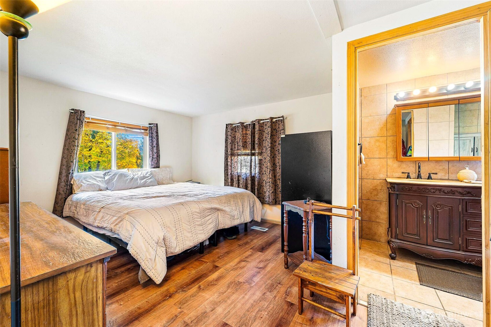 (650)533-3259Tucked away on nearly 5 acres, this 1,339 sqft 3bed, 2bath home offers the quiet simplicity of true country living. Inside, you’ll find an open floor plan with luxury vinyl flooring, a cozy wood stove, & a beautiful primary bath wrapped in floor-to-ceiling tile. Step outside to a spacious covered deck w/ wood railing & a newly poured concrete patio(2023) — perfect for unwinding or gathering. The crown jewel is the impressive 3,600 sq ft detached garage/workshop(2022), fully powered & ready for vehicles, tools, & toys —a car lover's dream! Updates include new hot water tank(2019) & furnace(2021). Surrounded by towering evergreens & wide-open space, this property is your own slice of rustic tranquility, complete w/ RV hookup & room to roam