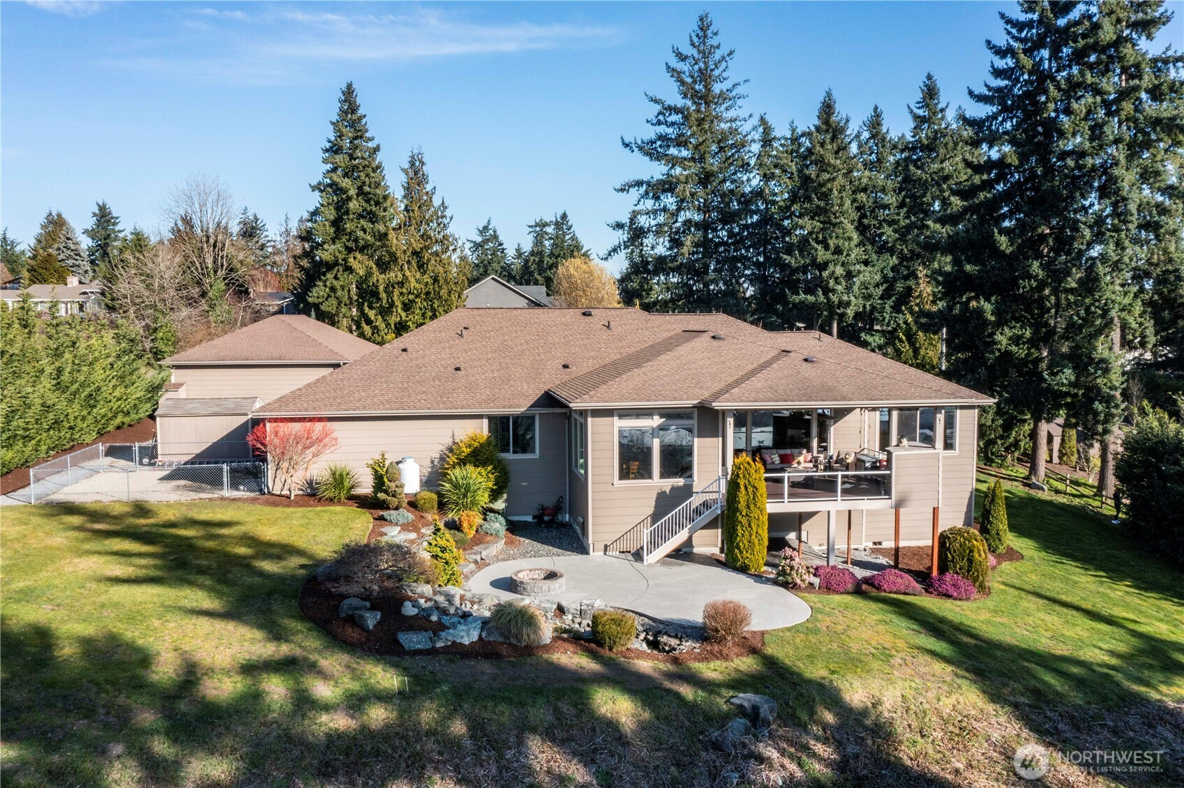 (650)533-3259Exquisite Fife Heights Estate with Panoramic Views, this private 2.7-acre compound overlooks the Hylebos Nature Reserve, the Olympic Mountains and the Port of Tacoma. Enjoy spectacular western exposure sunsets from your private deck, complete with outdoor fireplace perfect for relaxing or entertaining. The 3,184 sq ft single-level main home is thoughtfully designed. Two primary suites, an additional bedroom with an adjacent bath, and a theater room/office enhanced with added sound insulation and high-speed Cat 6 cabling. The great room showcases a spacious gourmet kitchen with a large eating area, an ideal gathering place. Attached 1,052 sq. ft. garage includes an EV charger and built-in storage room wired for a dog shower, laundry setup, and direct access to a covered dog run, making this an animal lover’s dream. A single-level ADU offers versatile space for extended living or guests, complete with its own two-car garage. An impressive 1,800 sq. ft. detached garage/shop, with its own separate 115V service, delivers endless opportunities for hobbies and toys. The estate is equipped with efficient geothermal heating and cooling, heated floors, and forced air climate control across seven separate zones for maximum comfort. Additional highlights include data room, solar domestic hot water system, and roughly finished 11-foot crawl space with drywall and concrete flooring. Discover a rare combination of privacy, luxury, and technology—an estate with no detail left undone.