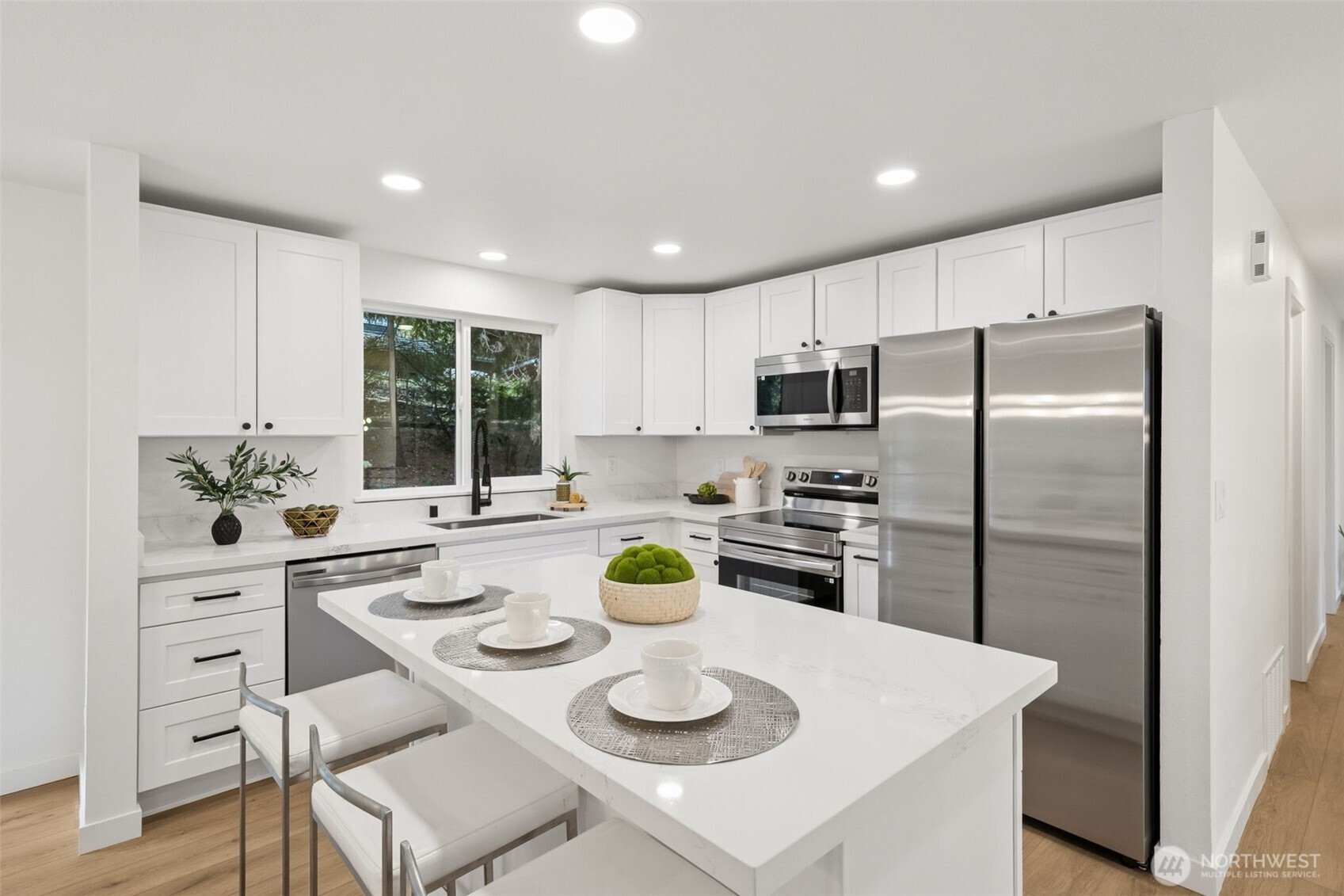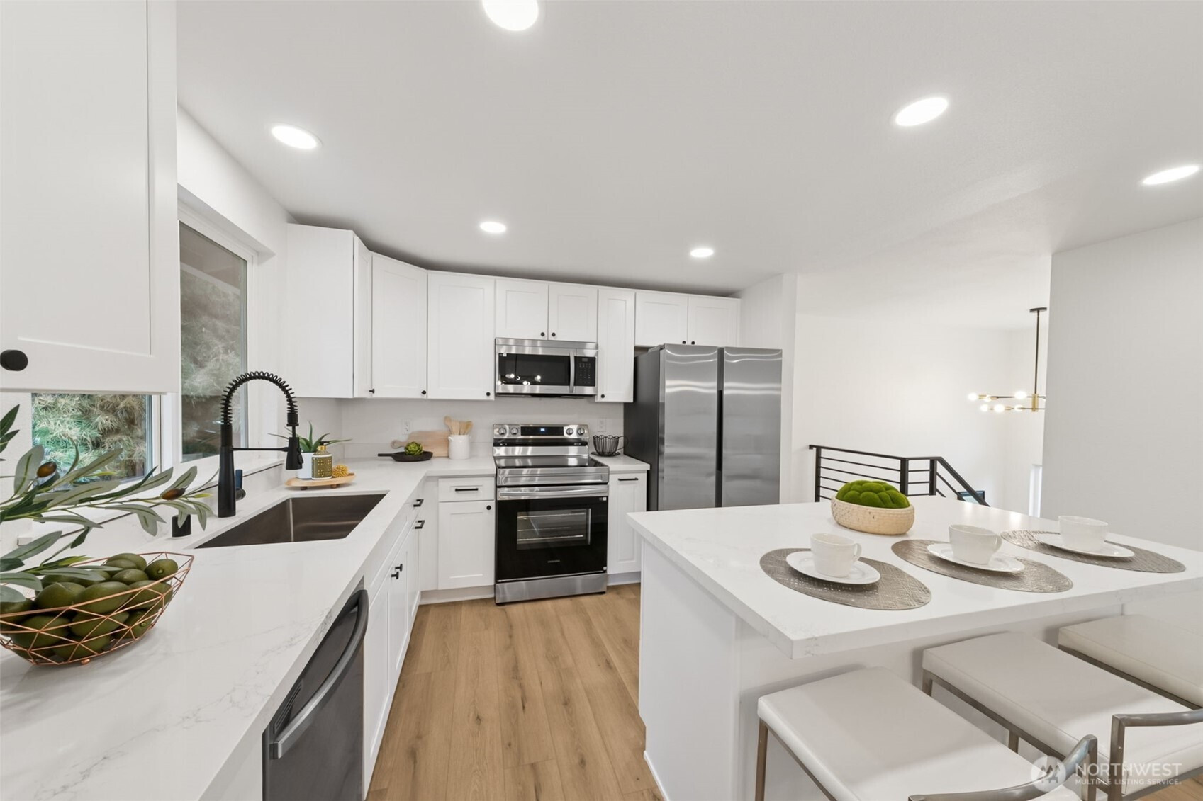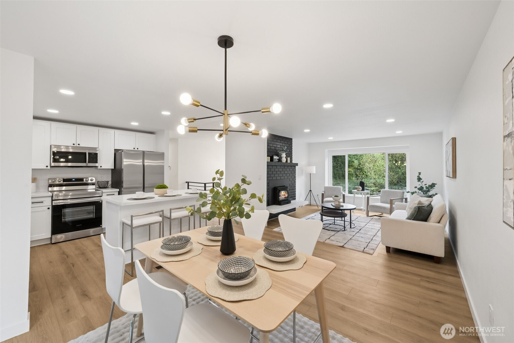 (650)533-3259This stunning gallery-style home offers 1,772 sq ft of beautifully redesigned living space! Upstairs features a chef’s kitchen with ample counter space, upgraded cabinets, and a large island with bar seating. The spacious living room boasts a charming wood-burning fireplace, and the light-filled dining area opens to a huge deck. Three bedrooms include a luxurious primary suite. Downstairs showcases a spectacular rec room—perfect for entertaining or movie nights! Set on a 1/3-acre lot with extensive renovations: new roof, windows, paint, flooring, baths, kitchen, water heater, fixtures, doors & millwork!