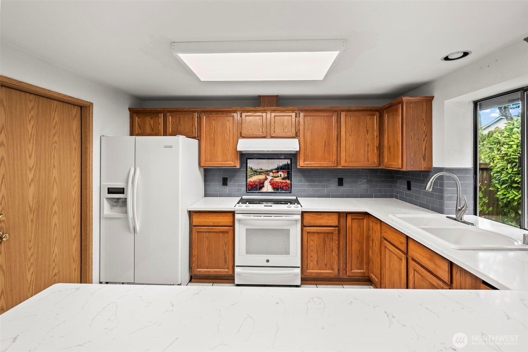 (650)533-3259Perfect for your first OR forever home! This lovely one-level 3 bdrm, 1 & 3/4 bath home features a tiled entryway complete with skylight and a cozy living room with a freestanding gas stove. The well-appointed kitchen has new countertops and tiled backsplashes. You will appreciate the deep sink. Don't miss the oversized walk-in shower and closet in the primary suite. Unwind in your own private backyard oasis-fully fenced. The newer stamped patio is surrounded by beautiful, mature landscaping. You'll also appreciate the nearby Vassault Park and bike path to Pt. Defiance. Extra storage in the 2 car garage and RV parking with 50 amp electrical service creates the perfect blend of comfort and convenience. Close to schools & shopping.
