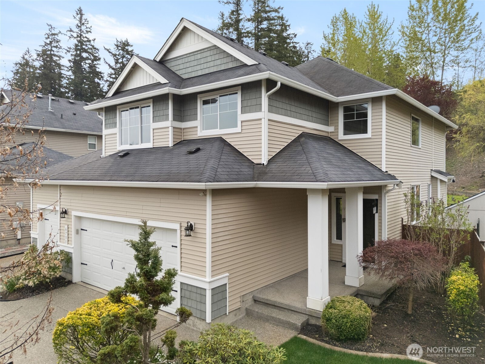 (650)533-3259Here is an exceptional opportunity in the highly sought-after North Tapps Estates neighborhood and Dieringer School District searching for its new homeowners! This beautiful 3-bedroom, 2.5-bath, 3-car garage home with a versatile loft offers tall ceilings, warm wood floors, granite countertops, central A/C, and a bright open-concept layout. The spacious kitchen features generous counter space and cabinet storage, opening to the great room with a cozy fireplace. Upstairs, you’ll find the primary suite with a walk-in closet and 5-piece bath, two additional spacious bedrooms, and flexible loft space perfect for a home office, play area, or home library. Situated on a quiet cul-de-sac, this home truly shines outdoors. The expansive wraparound yard spans two sides of the property and backs to a peaceful greenbelt, offering privacy and a tranquil setting. The sloped portion of the yard provides a unique opportunity to create terraced gardens, a scenic retreat, or a nature-inspired landscape that blends seamlessly with the surrounding greenery. A lawn sprinkler system, generator wiring, and a 240v outlet in garage add extra convenience and peace of mind. Ideally located near Lakeland Hills Town Center, Lake Tapps, parks, and everyday amenities this home offers space, privacy, and convenance.