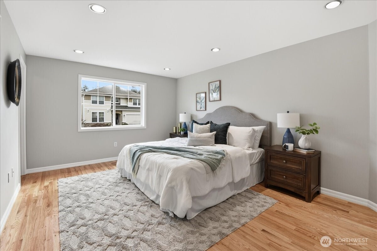 (650)533-3259A University Place 2026 renovation • Partial water view & sunset exposure • Primary Suite on Main -- Plus--Lower-level suite! Extensively renovated 4-bedroom, 3-bath home with Air Conditioning in University Place. The 2026 renovation includes a new roof, new fence, paint, hardwood flooring, plush carpet, quartz countertops, new interior doors, and updated black hardware throughout. The kitchen features quartz countertops, stainless steel appliances, and direct access to an expansive deck with sunset exposure and partial water views through mature trees. The primary suite includes a remodeled bathroom with a wall-to-wall electronic mirror and updated fixtures. Bathrooms throughout the home have been remodeled with new finishes and lighting. Additional interior upgrades include new chandeliers and updated lighting fixtures. A covered front porch provides additional outdoor space, and the lower level includes a private suite suitable for extended living arrangements. All Appliances stay, including Washer and Dryer. Located approximately 0.2 mi to Narrows Brewing Company and Boathouse 19 waterfront dining, about 0.3 mi to Titlow Beach Park, approximately 2 mi to Chambers Bay Golf Course with waterfront trails, and about 3 mi to Trader Joe's and Whole Foods Market grocery stores. In outstanding University Place School district!