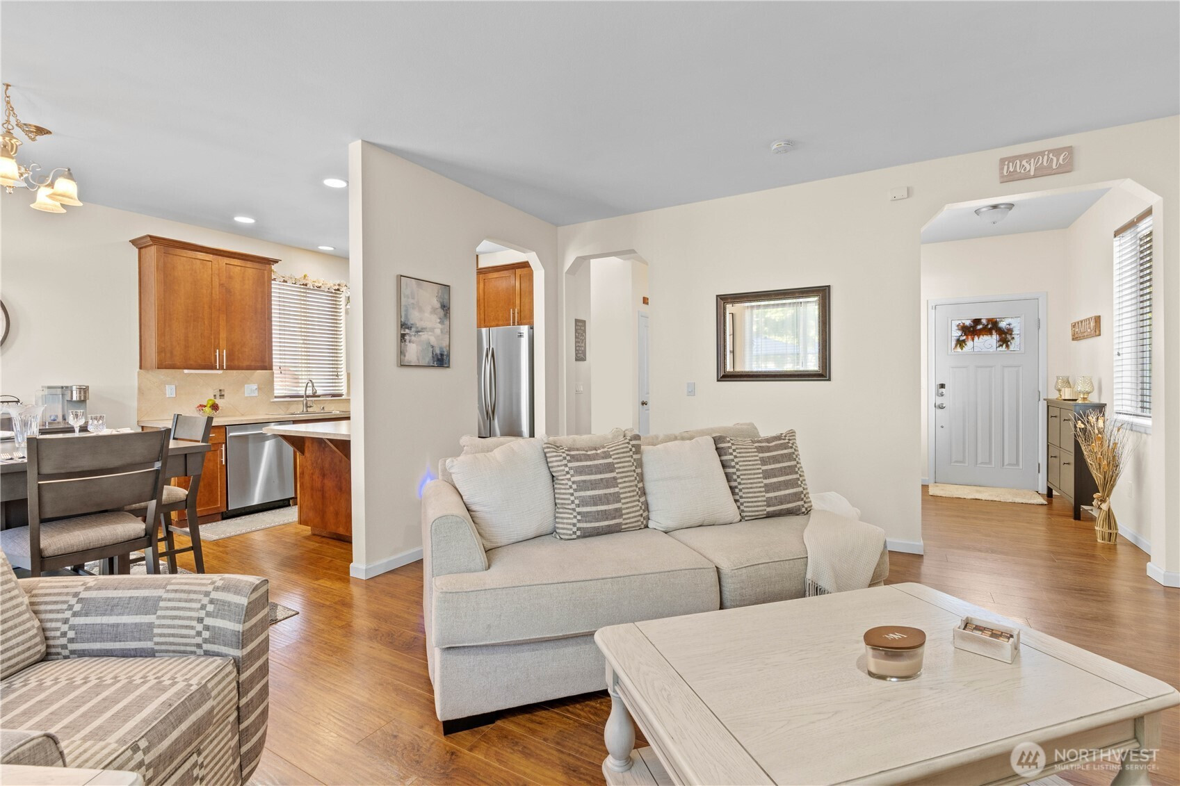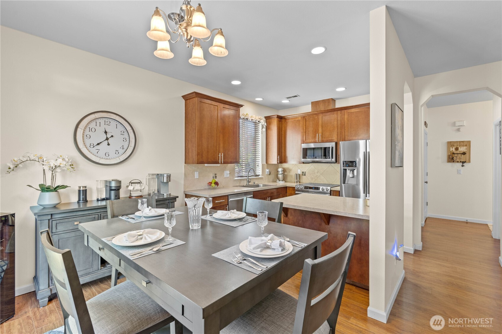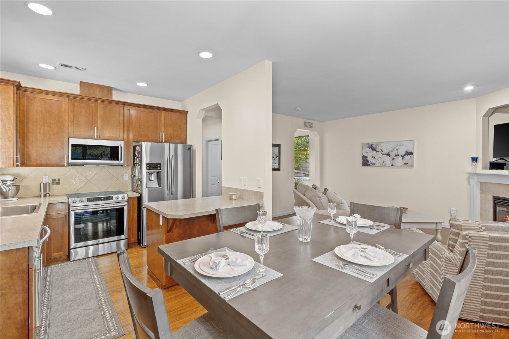 (650)533-3259Welcome to easy living in Navarro, inside sought-after Gem Heights in Puyallup! This beautifully maintained 4-bed, 2.5 bath home has a perfect flowing layout. The open & bright living room flows seamlessly into the dining area & kitchen for easy everyday living & fun entertaining opportunities. The kitchen's island/peninsula fits stools for casual dining. Stainless appliances keep it classy. Upstairs, you will find your primary suite w/attached bath & walk-in closet. Three more spacious bedrooms, a full hall bath, & convenient upstairs laundry complete your new home. A slider off your dining area leads to a fully fenced, low-maintenance backyard w/patio. Don't miss the park right behind! Just minutes from shopping, dining, & commuting!
