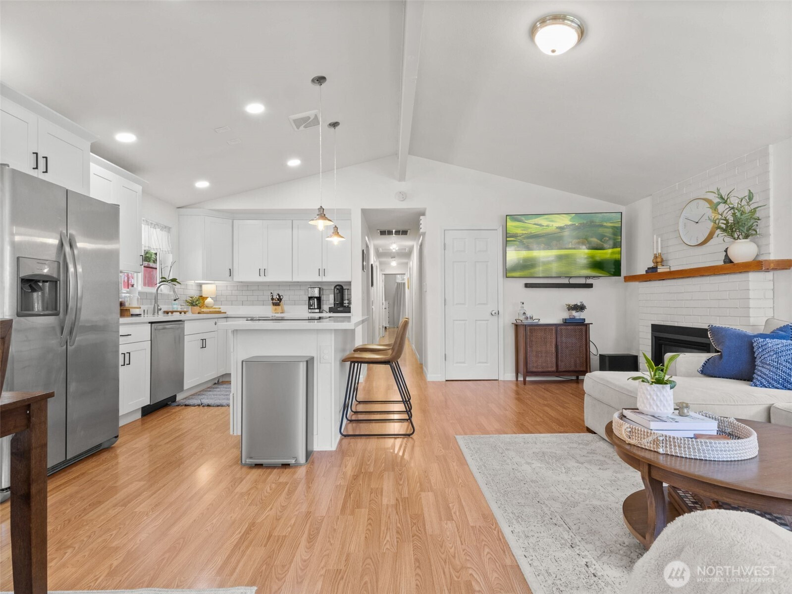 (650)533-3259Beautifully updated, clean & move-in ready rambler featuring 4 bedrooms and 1.75 baths, designed for comfortable, easy living. Vaulted ceilings and an open-concept layout create a warm & welcoming home, enhanced by natural light streaming through updated vinyl windows. The spacious kitchen and dining area provide access to a private patio area—perfect for entertaining or relaxing. The primary suite offers its own retreat with vaulted ceilings, a remodeled attached bath, 2 closets, and access to the deck overlooking the backyard. Updates include newer flooring, fresh interior touches, newly installed blinds, and a cozy brick gas fireplace anchoring the living space. Major system improvements add peace of mind with the house roof replaced in 2019 and garage roof in 2023, furnace replaced (2019) and the addition of a heat pump & A/C in 2025 for year-round comfort. Nearly 1/4 acre with fully fenced backyard. Enjoy the benefits of a well-maintained home with added landscaping and curb appeal, all in a convenient location near parks, shopping, JBLM, and I-5 for an easy commute. May be a possible option for an AFH. Home has been pre-inspected and inspection available after showing.