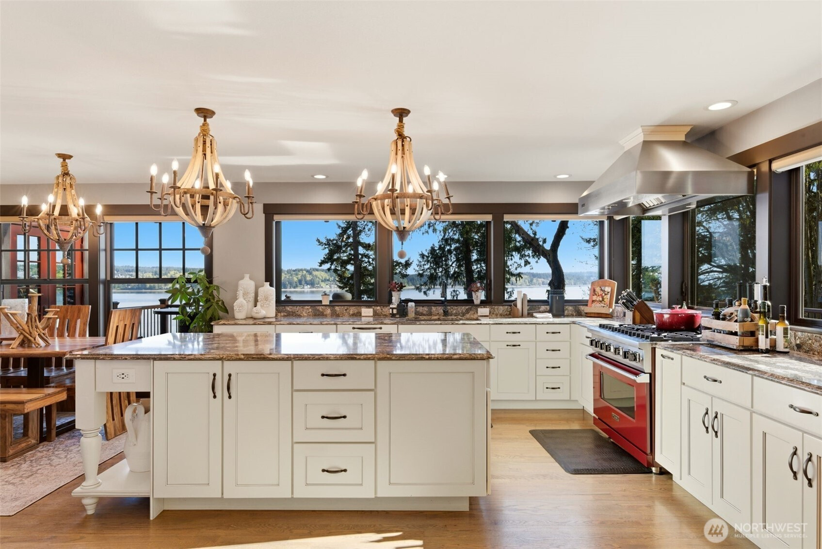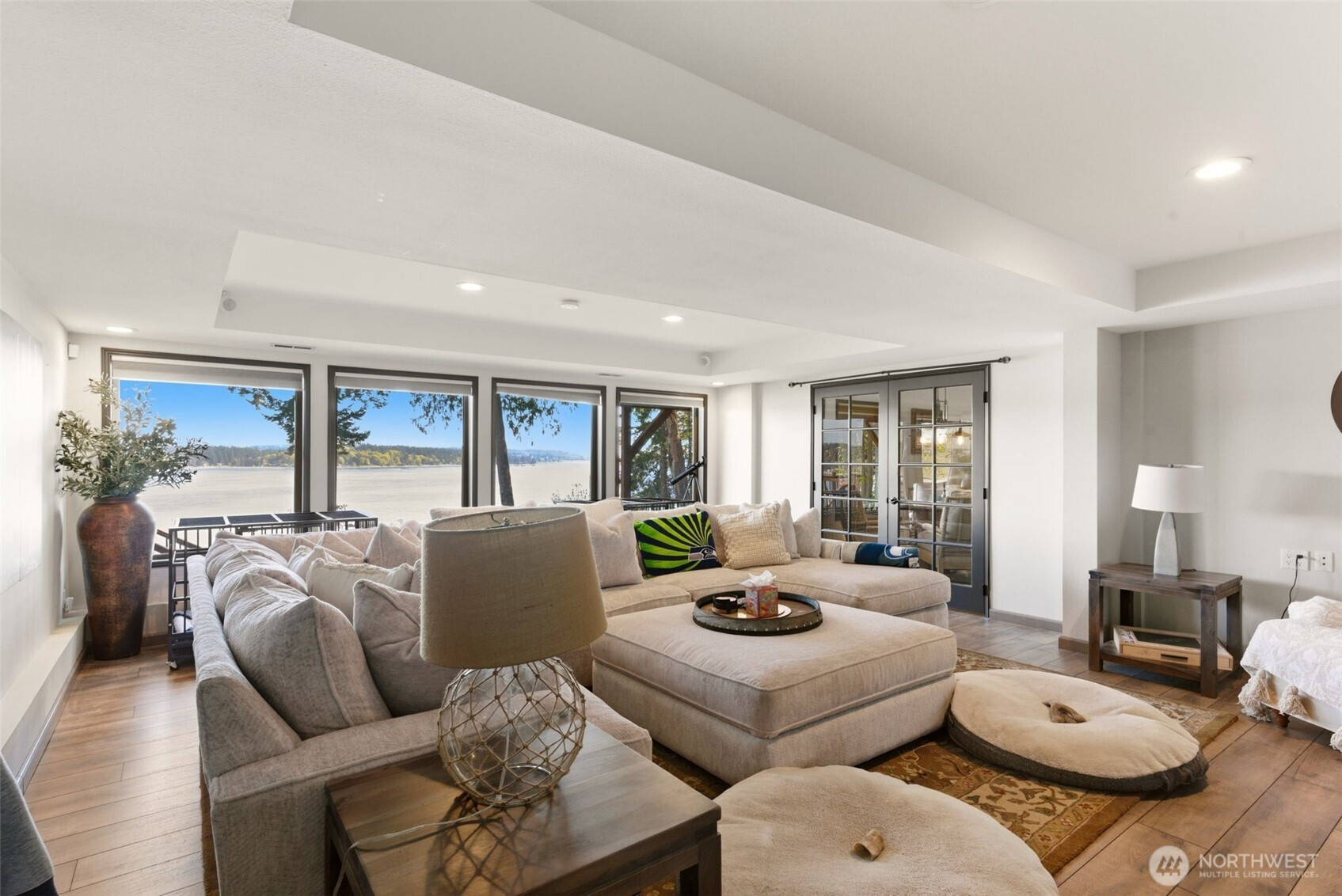 (650)533-3259Perched on a rare stretch of pristine waterfront in Gig Harbor, this extraordinary remodeled estate offers refined Northwest design and resort-style living with 433 feet of private beach. A lighted pathway leads down to the quiet shoreline, complete with two mooring buoys and a newer boathouse. Inside, Northwest-chic design shines with custom décor, gorgeous hardwood floors, and a striking river rock fireplace. Expansive windows capture breathtaking views and open to a Trex deck with a hot tub and truly HUGE panoramic vistas. The massive chef’s kitchen features Viking appliances, custom cabinetry, and a charming bistro space. A dedicated office and custom lighting add both function and sophistication. The primary suite is a luxurious retreat with sweeping water views and a light and bright primary en suite. With an additional three rooms upstairs, there is room for everyone and lots of potential. The lower level offers a kitchenette for flexible living, a large recreational room, and another gorgeous bedroom. An income-generating DADU on the property provides added value and versatility or can be used to house guests for their very own private retreat. The property also features an oversized sports court and beautifully designed grounds. Recent upgrades include a new heat pump, new electrical and generator system, and a 50-year roof, offering modern comfort and long-term peace of mind. This property is a rare opportunity to own a private piece of Northwest paradise.