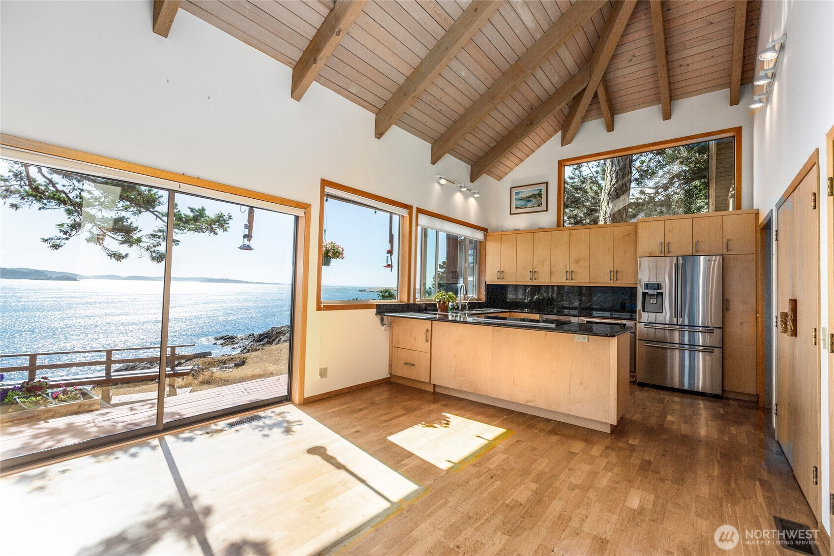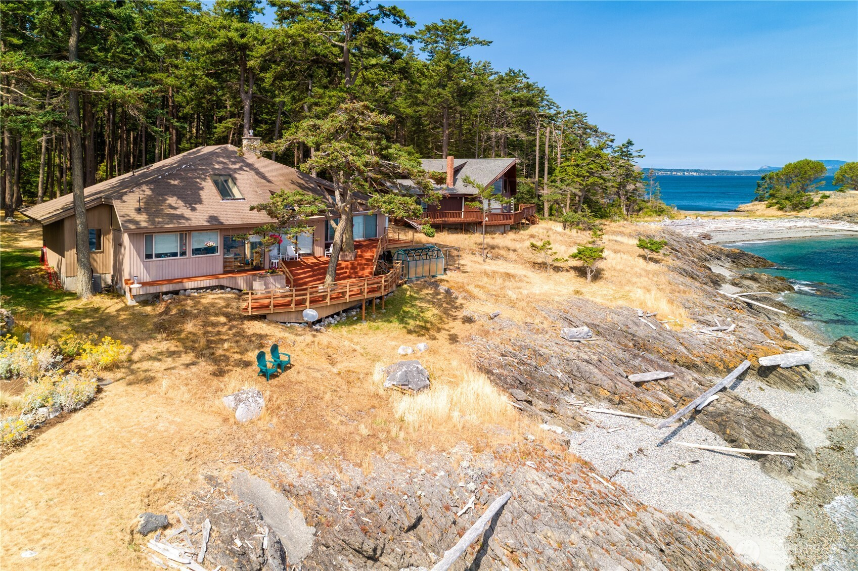 (650)533-3259Nestled at the water’s edge, this custom 1984 Northwest Contemporary home offers breathtaking views and direct access to your own private pocket beach—perfect for launching a kayak right from your front yard.Featuring 2 bedrooms, 2 bathrooms, and 1,985 square feet of thoughtfully designed living space, this home includes a cozy stone fireplace in the living room for those chilly winter days. Enjoy watching boating traffic and marine life, including majestic orca whales, from the comfort of your home.The updated kitchen boasts granite countertops, a walk-in pantry, and hardwood flooring. The main level includes the living and dining areas, as well as the primary bedroom, offering convenient single-level living.Upstairs, a light-filled loft provides a versatile space for an office or an open-concept guest bedroom.Located in a vibrant community with walking trails, beach access, a marina, and a pool with a playground. Just minutes from American Camp National Park, where miles of scenic trails await.Don’t miss this rare opportunity to live the ultimate island lifestyle!