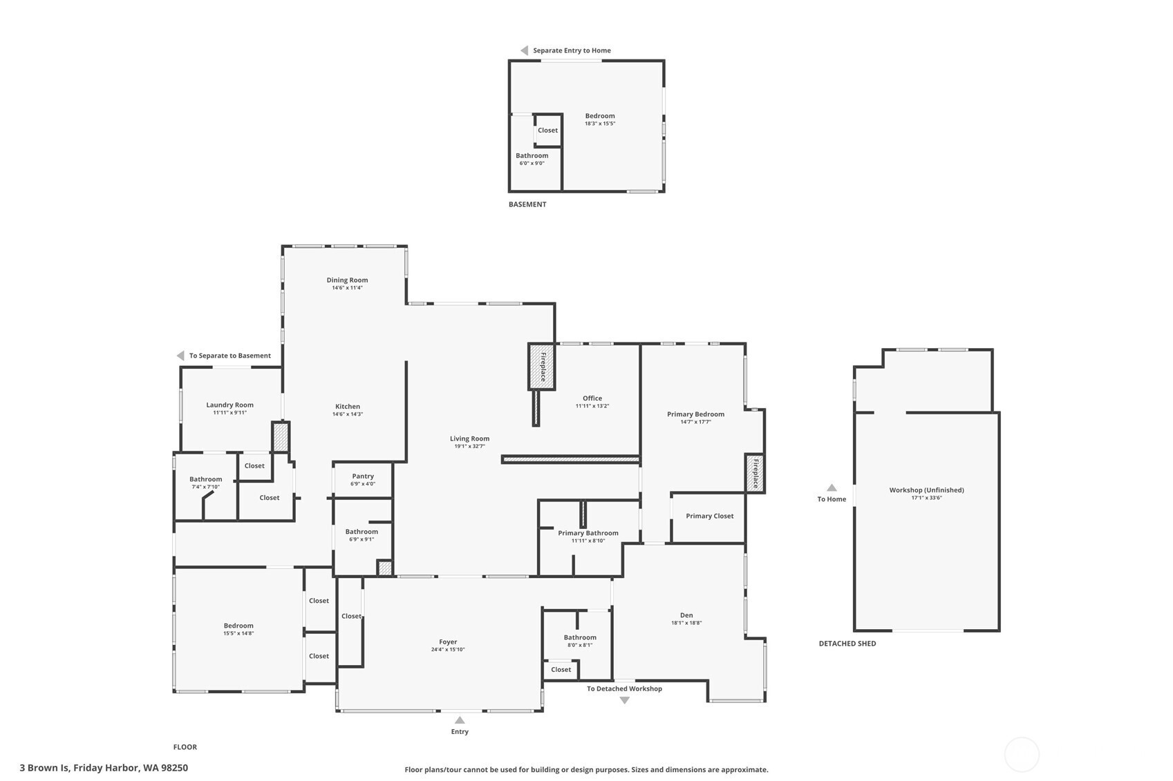 (650)533-3259Southwest-facing waterfront home with private dock on Brown Island, offering 3,527 sq ft of beautifully designed living with 3 bedrooms, 2 offices, and 5 baths. This remodeled NW Craftsman 1-story home with basement blends classic style with modern comfort, featuring an atrium entry, open floor plan, and spacious chef’s kitchen. Most rooms including the main-level primary suite with deck access, capture stunning harbor and sunset views. The lower level offers a bedroom and bath with separate entry, ideal for guests or extended living. Outdoor living shines with expansive main-level decks, a sunny waterfront bulkhead patio with steps to the beach, and a private dock on 107 feet of accessible shoreline. A detached golf cart garage/shop, hot tub, and bocce court complete this exceptional setting. Brown Island amenities include community moorage, pool, clubhouse with fitness room, caretaker boat service, and easy access to Friday Harbor by boat. From your decks, enjoy ferries, boats, seaplanes, and the glow of town lights at night. With golf cart parking and boat launch, this island blends secluded island privacy with easy access to the vibrant town, marina, shopping, and dining of Friday Harbor. An extraordinary Brown Island residence offering spectacular sunsets, premier waterfront living, and an unmatched island lifestyle.