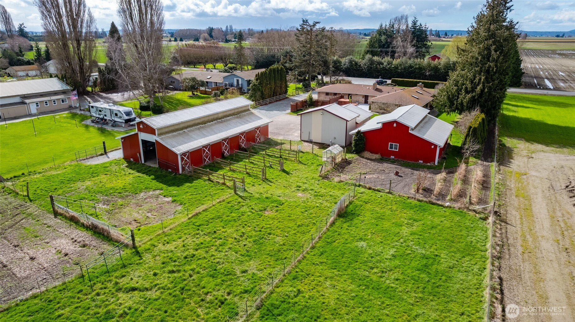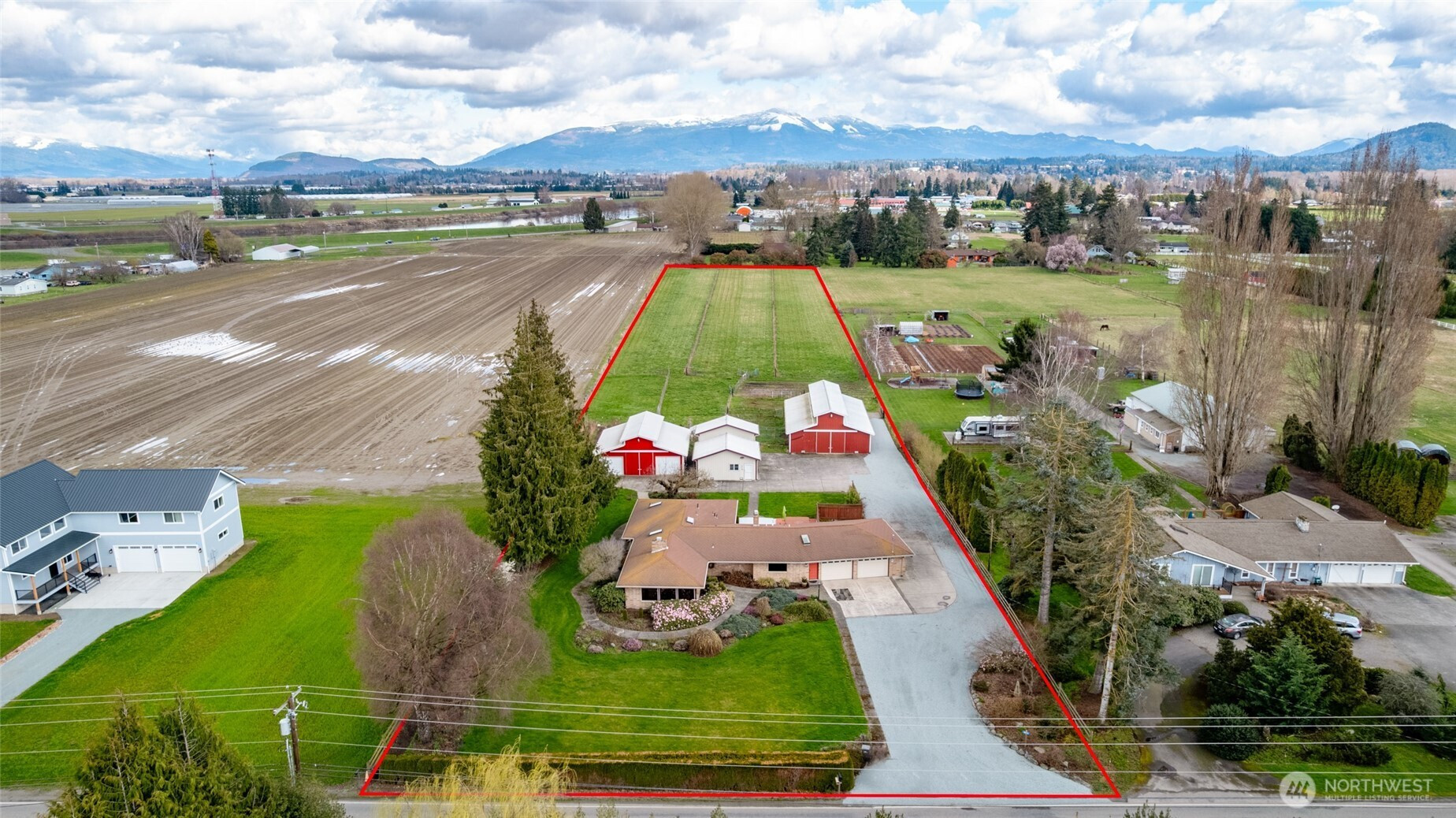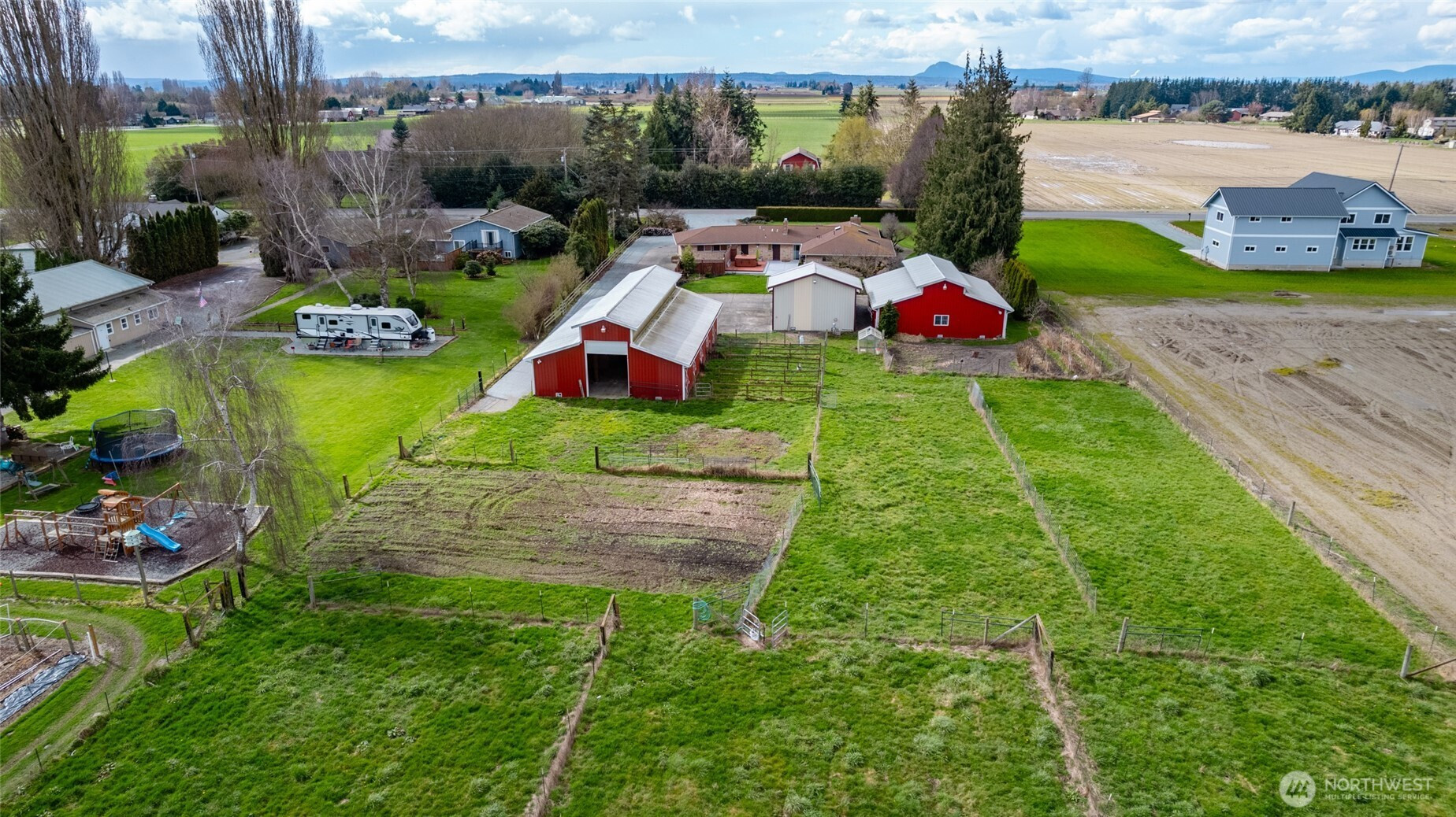 (650)533-3259Wonderful farmette in the heart of Skagit Valley with magical Mount Baker views! Solid brick ranch home providing warm wood detailing throughout. Formal entry leads to cozy living room with stone fireplace. Kitchen provides loads of storage, granite counters with full backsplash, breakfast bar, dual ovens & gas cooktop. Dining area with stone fireplace plus perfect size family room. Primary with ensuite tiled bath, 2 guest bedrooms plus office. Bring the animals and all your equipment, as there is room for all! This one of kind property provides a heated 36’x36’ Shop with loft area, an additional heated 36’x24’ shop, plus a 36’x60’ Barn with 5 stalls, paddocks, tack room, wash rack & tons of storage! Pasture areas fenced and cross fenced.
