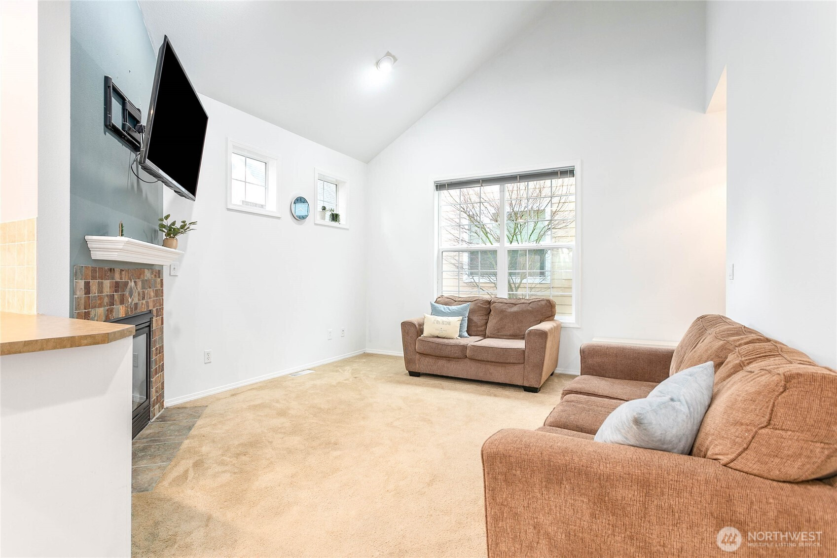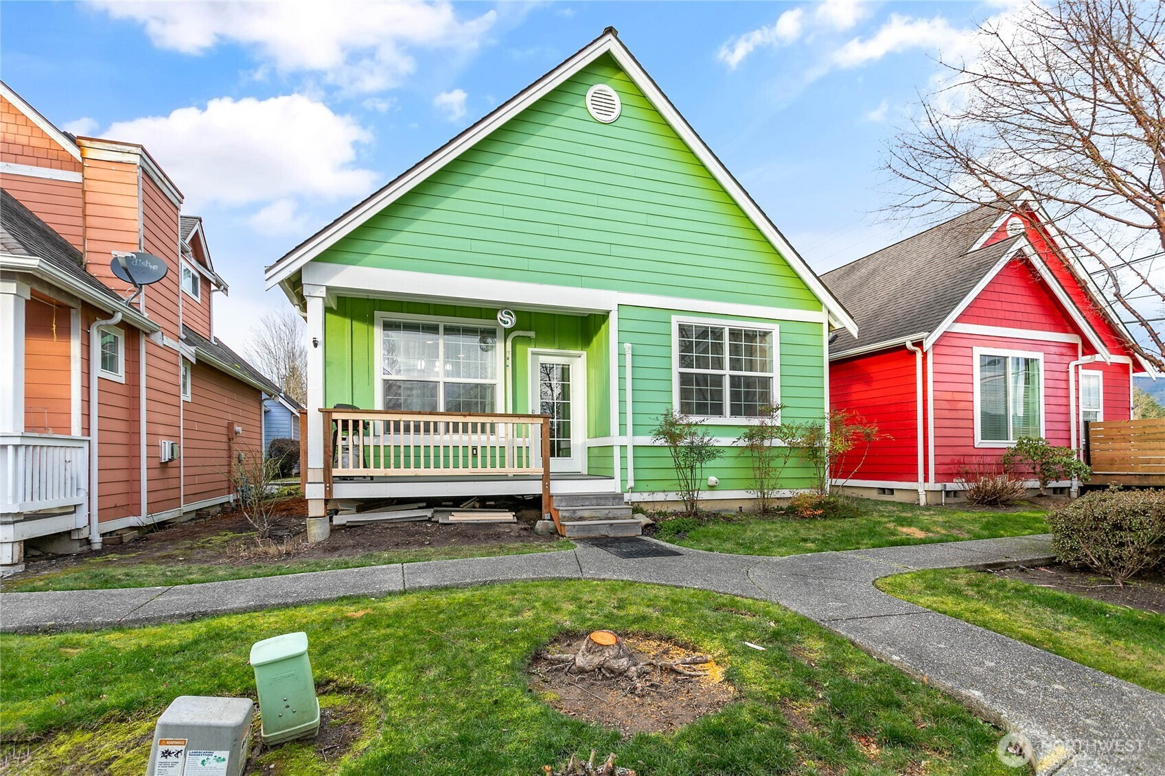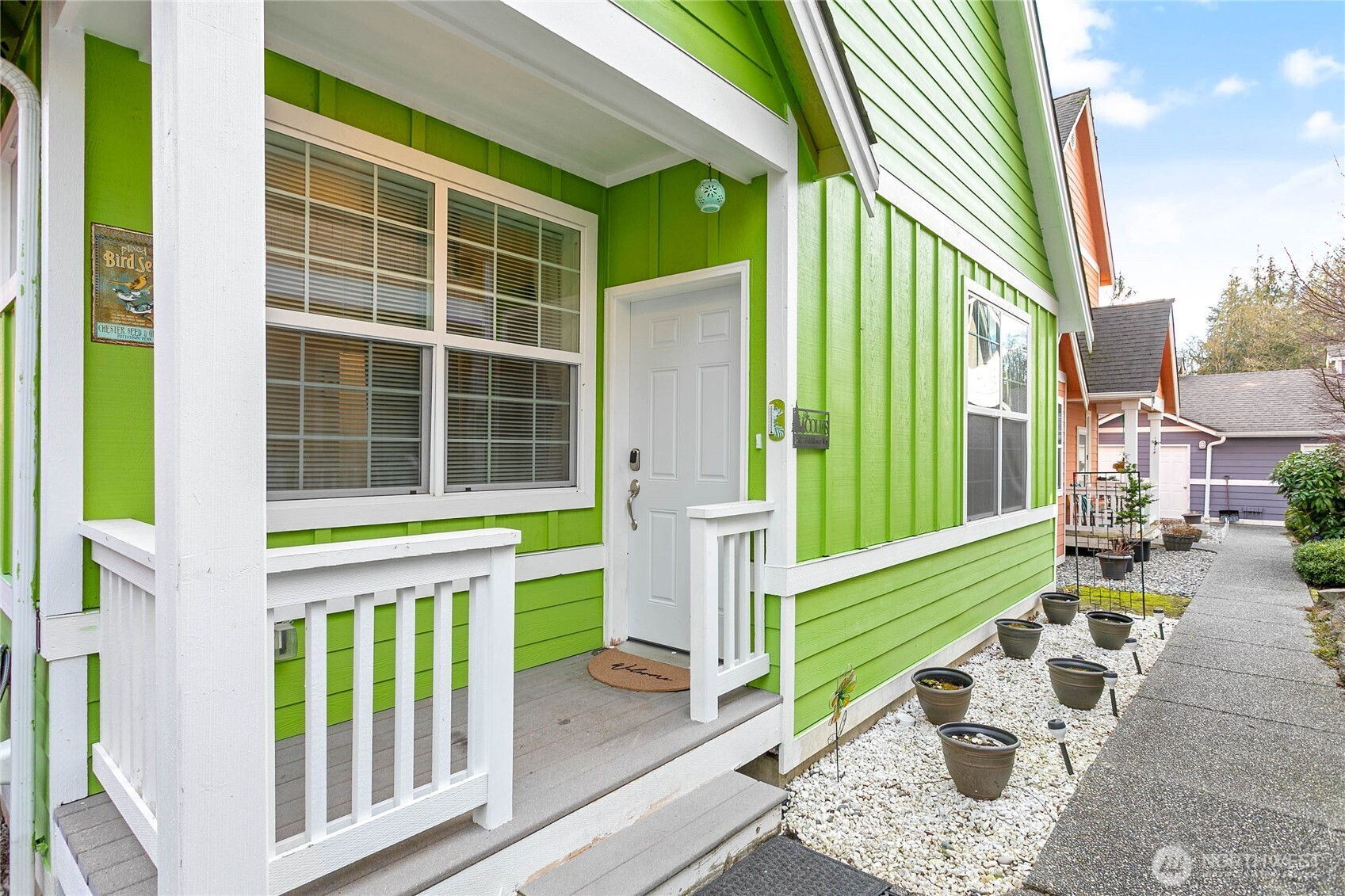 (650)533-3259Charming cottage with standout curb appeal, ideal for first-time buyers or those seeking an approachable path to homeownership. A vibrant exterior and welcoming front porch set the tone for this cheerful home. Inside, vaulted ceilings and an open-concept layout create a bright, airy feel, centered around a cozy gas fireplace. The kitchen flows into the dining area with direct access to the deck, supporting easy indoor-outdoor living. A flexible loft/office space adds versatility for remote work or relaxation. Comfort and efficiency are covered with a ductless heat pump for heating and A/C, plus updates including a tankless water heater, new carpet, and updated appliances. Detached one-car garage (5D) provides added storage and convenience. As a single-family residence (not a condo), enjoy the independence of owning your own home. USDA financing eligible (buyer to verify), with potential zero-down options for qualified buyers. Located in Sedro-Woolley, where small-town charm meets Cascade Mountain views. Directly across from Olmsted Park—14 acres featuring Thompson Pond and seasonal activities—and near access to the Cascade Trail for miles of walking, biking, and recreation. HOA-maintained lawns simplify upkeep, and a shared community gardening shed with tools supports individual flower beds, adding a thoughtful neighborhood touch.