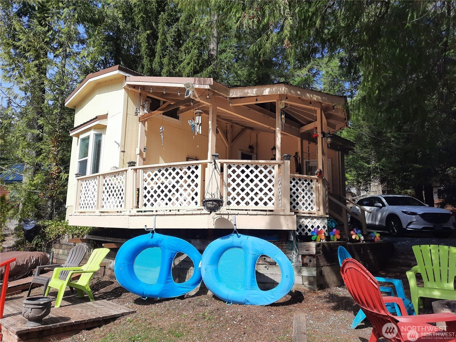 (650)533-3259Amazing lakefront property with luxury park model trailer and added guest room. Turn key, ready to move in and enjoy summer on the lake. Enjoy lake view from bedroom. Lots of sleeping space in loft. Fire pit beside beach. Comes with BBQ, bikes, outdoor fridge, furniture, appliances, 2 TVs, tools, gear and a high-end inflatable boat with electric motor. Great location for snowmobiling. Lake Tyee has tennis courts, mini golf, pickle ball, fishing, pool tables, swimming pools and hot tub; there is something for everyone! Dues are $178/mo in gated community. 210 recreational days/year.