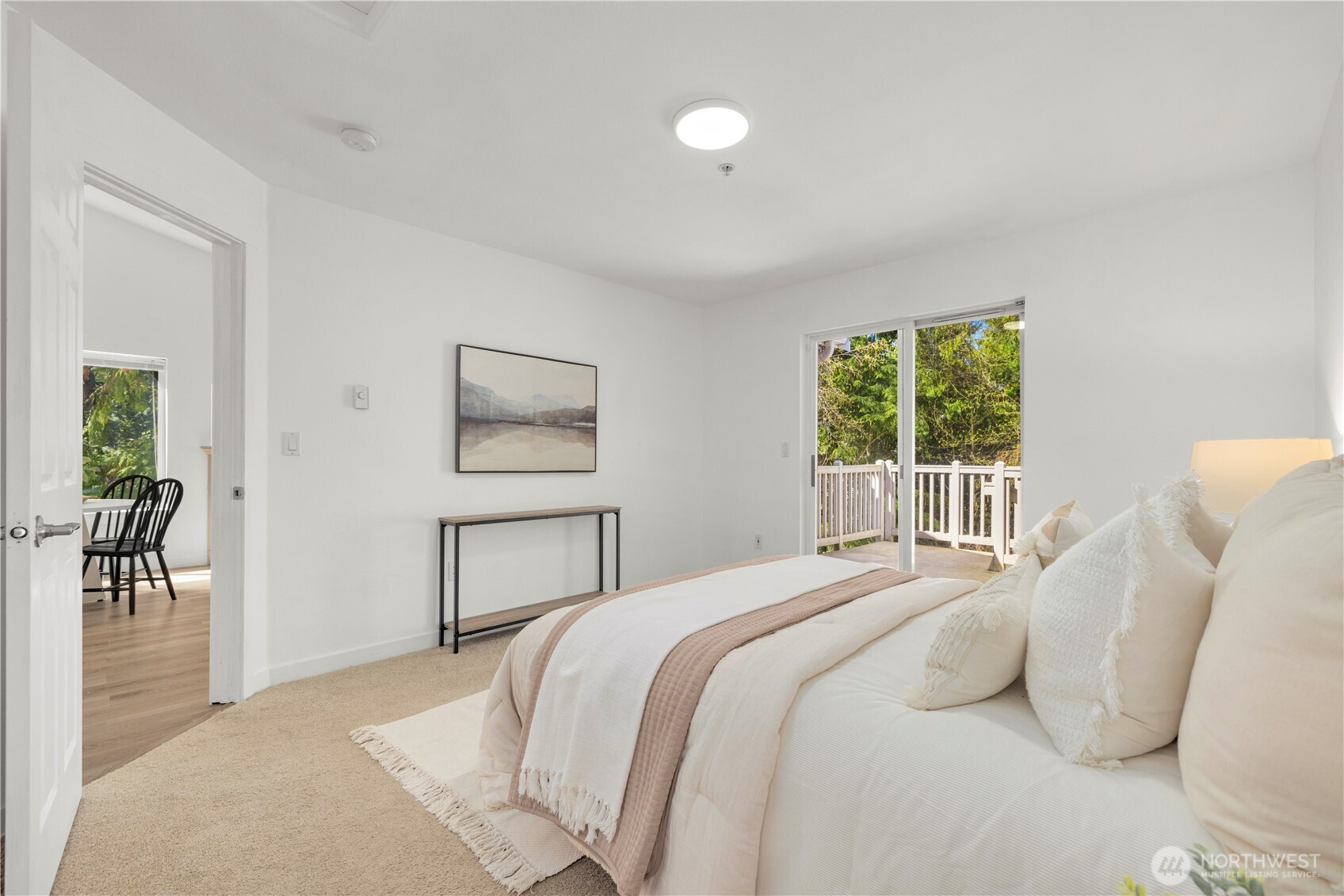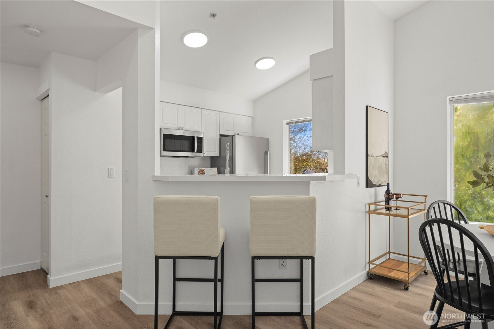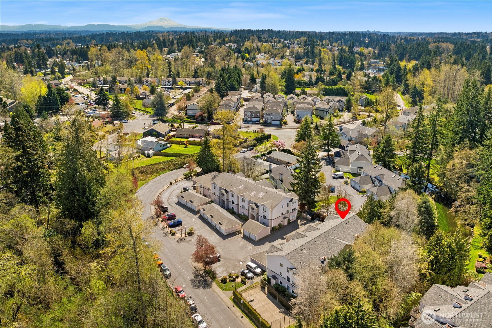 (650)533-3259This top floor western end unit soars among the treetops, surrounded by nature! Step inside this stylishly updated condo in peaceful Autumn Brook. The vaulted ceilings & huge windows make this home live large with greenery visible outside every window. Beautiful hard flooring throughout the main living spaces paired with fresh paint, contributes to the light + bright feel throughout. Perfectly sized kitchen with grantie countertops & stainless steel appliances plus bar space, makes entertaining easy as the large dining & living rooms blend seamlessly together. Two oversized bedrooms with their own ensuite bathrooms make the floor plan versatile for whatever life needs. Updated lighting fixtures & stylish cabinetry in both bathrooms! Two rear doors lead you out to the patio with more views of nature with sounds of the peaceful pond & stream below. Detached garage with plenty of guest parking! Easy commutes with Hwy 99, I-5 & 405 all within a matter of moments yet your home remains perfectly positioned away from it all. Enjoy all that this incredible home has to offer!
