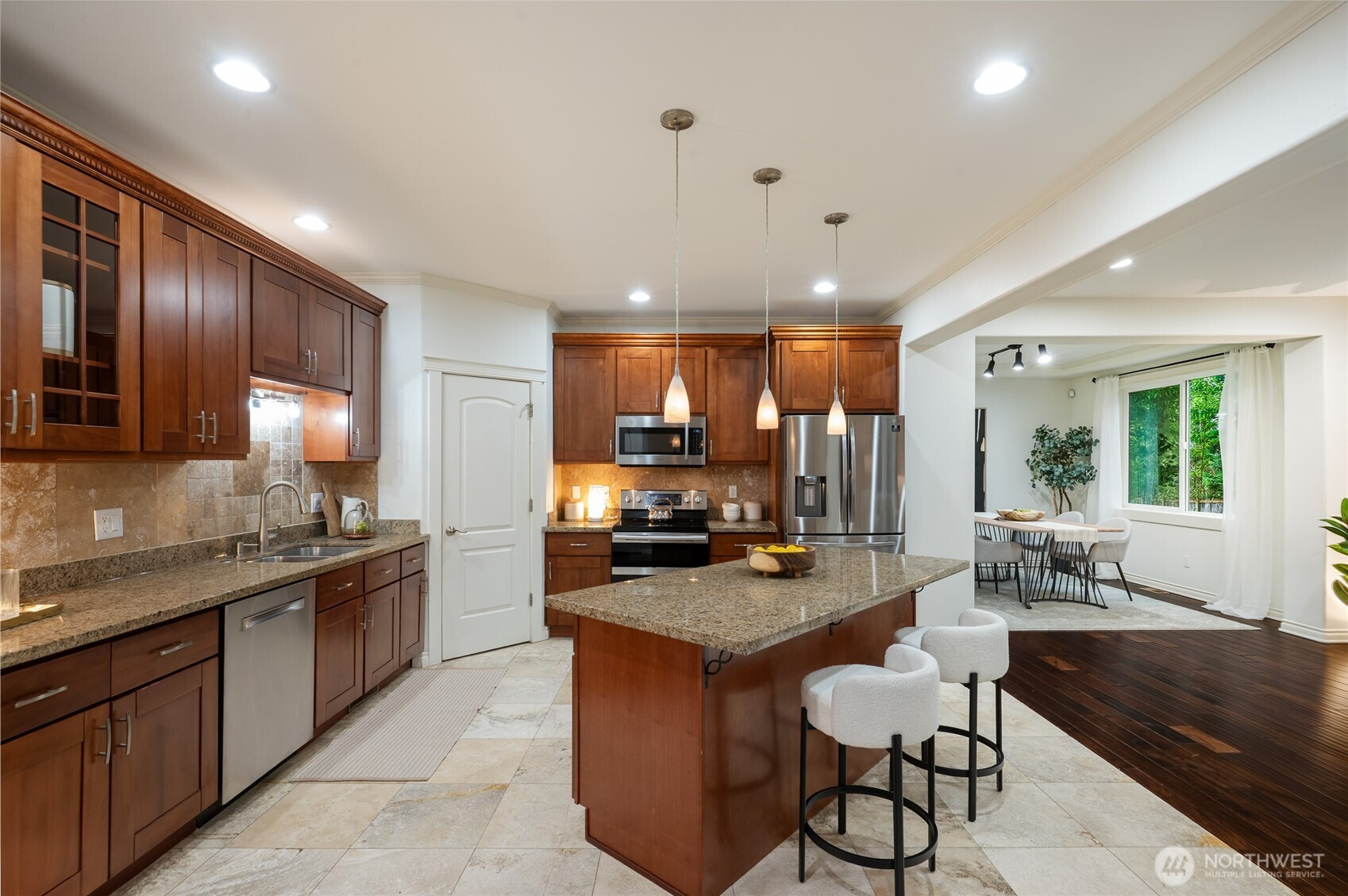 (650)533-3259Experience elegance in this 4-bedroom sanctuary on a private, sprawling lot. Formal living & dining spaces highlighted by architectural details, engineered hardwoods, & soaring great room with gas fireplace. Lovely open kitchen features extensive cabinetry, granite counters, full height backsplash & island. Retreat to the primary with sitting area & fireplace. Enjoy the flexible loft space & bedroom with private balcony. Versatile main-floor office with French doors for work or guests. In the spring, the yard becomes an oasis with new Brazilian Ipe deck, paver patio, retractable awning, raised beds, & fruit trees. All the extras you could ask for with a 3-car garage, new roof, & heat pump. Just 15 minutes from Woodinville wineries & shops!