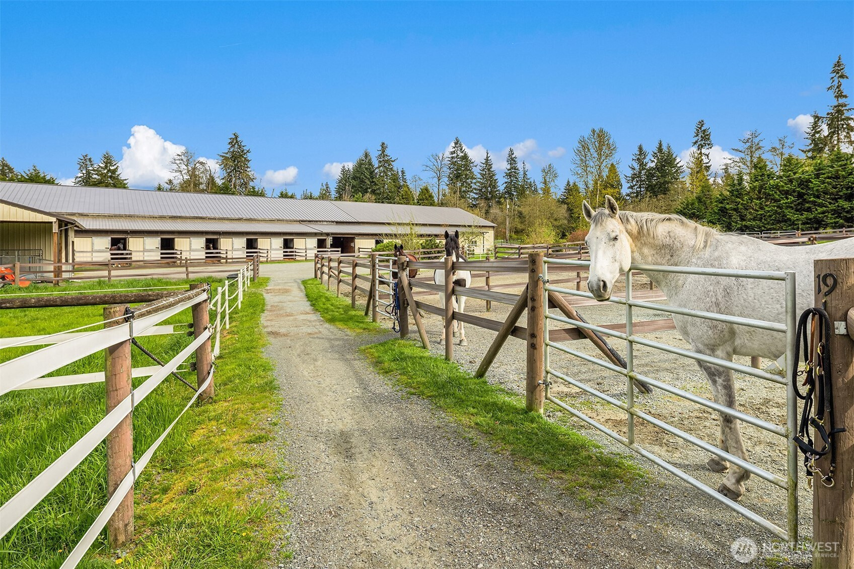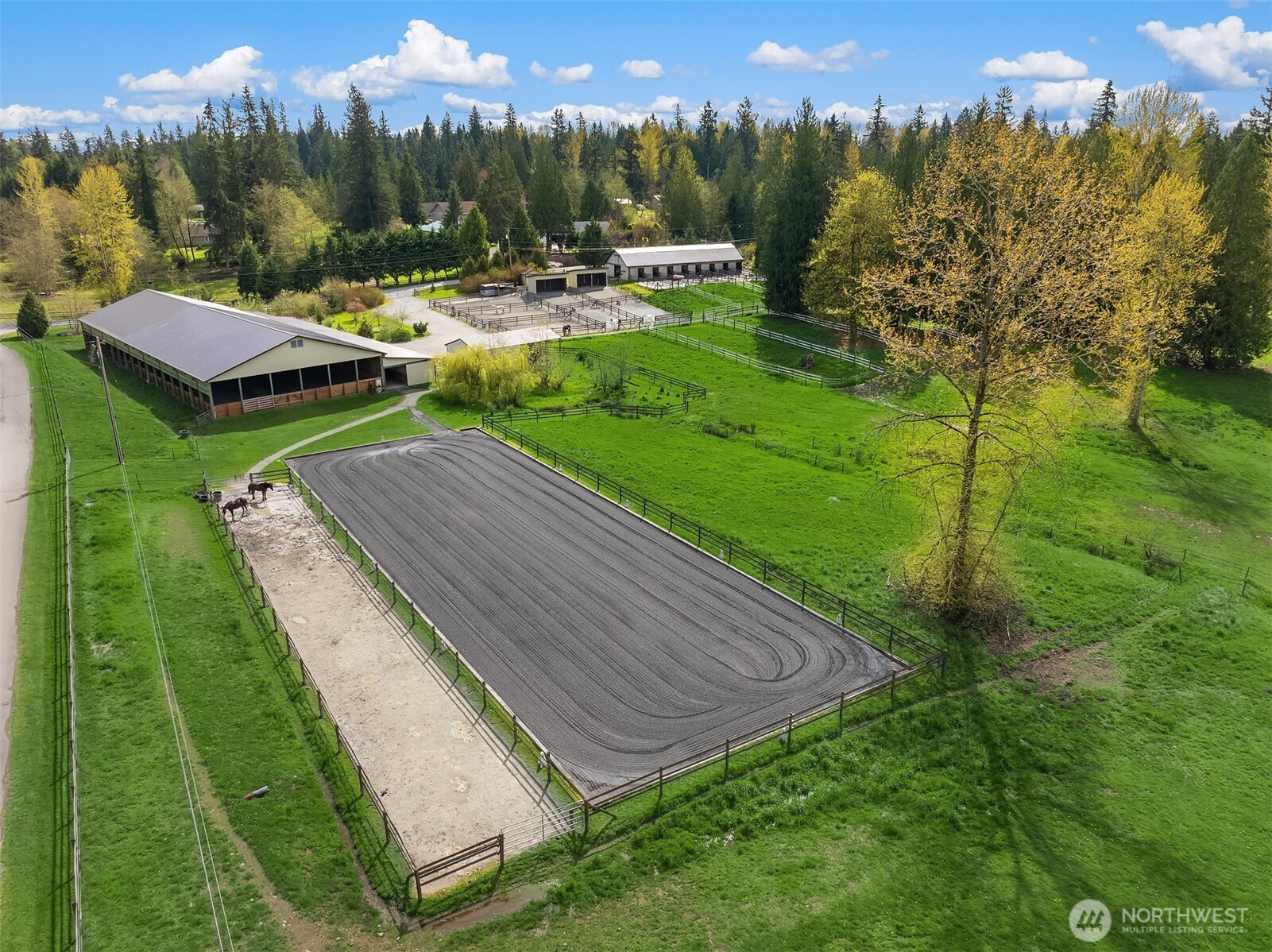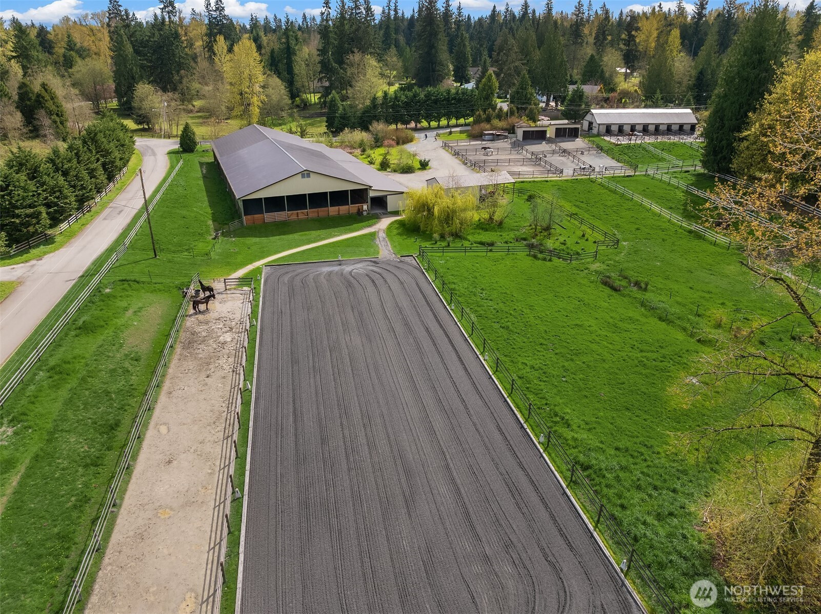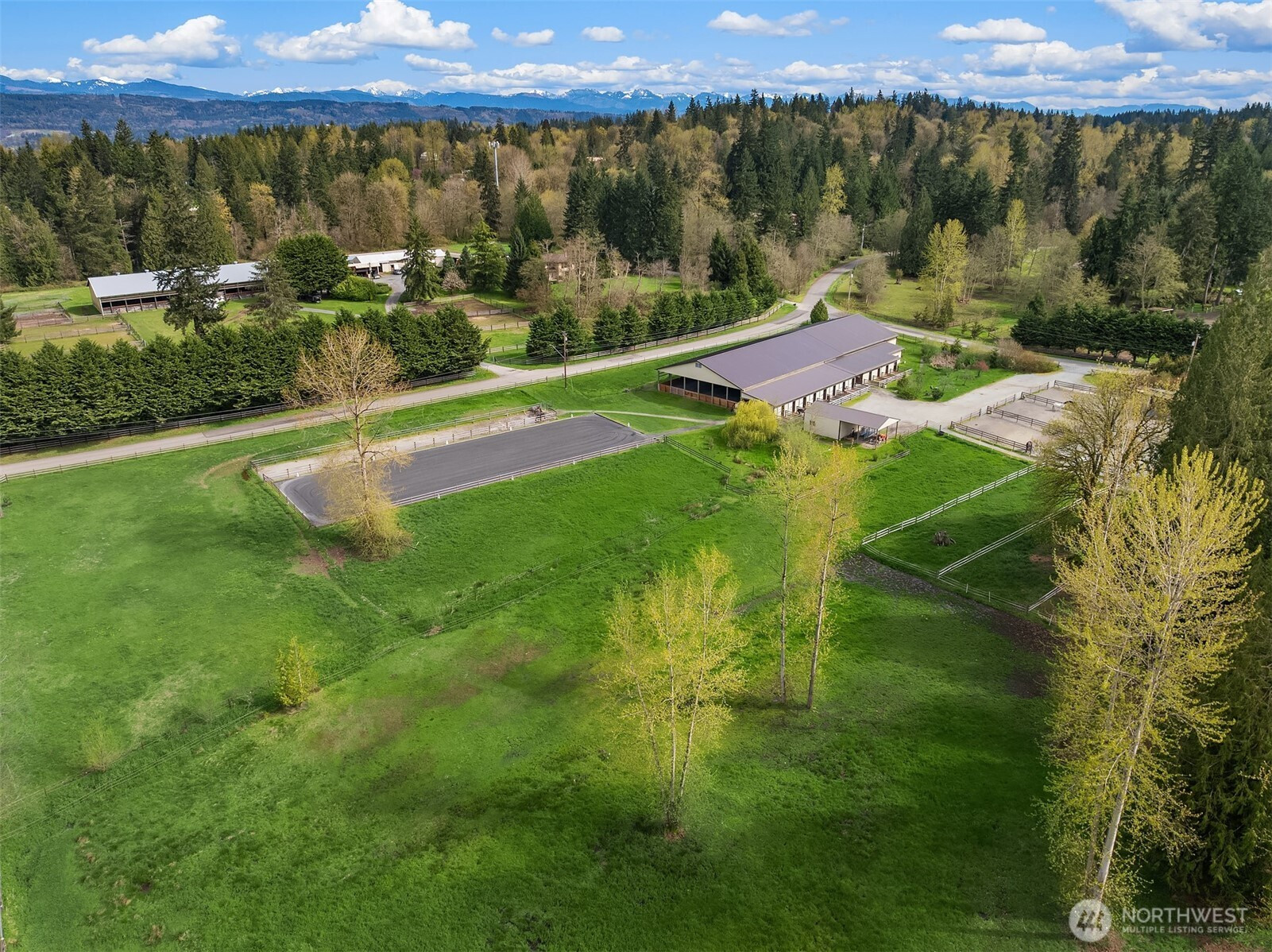 (650)533-3259Welcome to Cedar Meadow Farm. Stellar location near Echo Lake golf course on over 10 cleared acres on two tax lots. Main barn offers 14 stalls with powder room, gorgeous tack rm w/ W/D, 2nd tack rm, wash rack and paddocks off each stall. Additional Arena barn offers a 70 x 200 indoor arena, 12 stalls with matted paddocks, client lockers, beautiful client lounge with kitchenette, 4 bay shop/outbuilding w/ shaving storage. Centaur fenced pastures, paddocks and dry lot turnouts with loafing sheds. Lovely custom home offers main floor primary suite with 5 piece bath, Great Room design, mud room with built-ins, hobby rm & Bonus rm with separate entrances. Covered back patio, garden space & pastoral views. Quiet street of Acreage homes & Estates