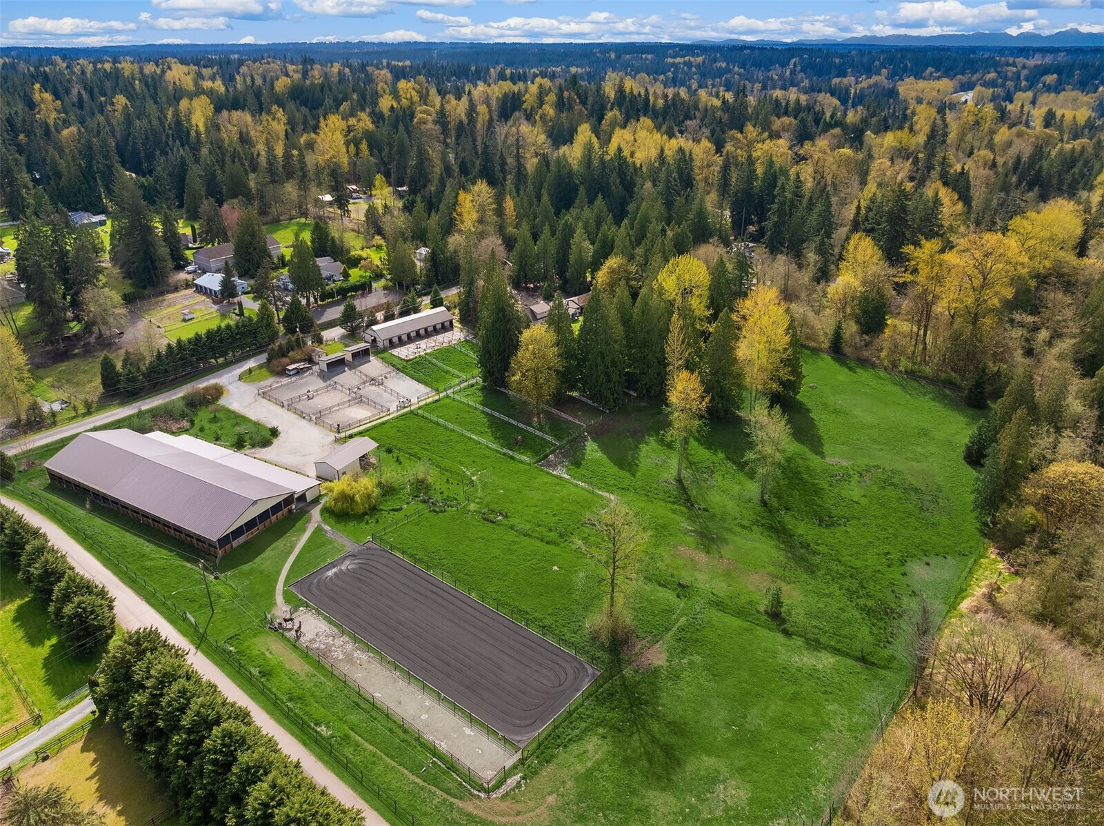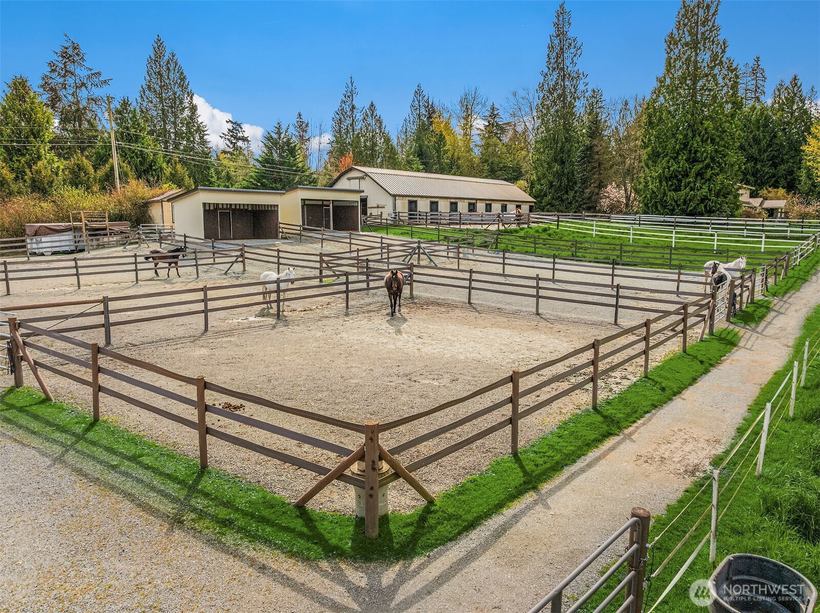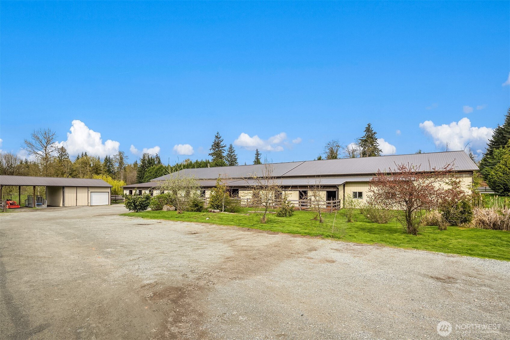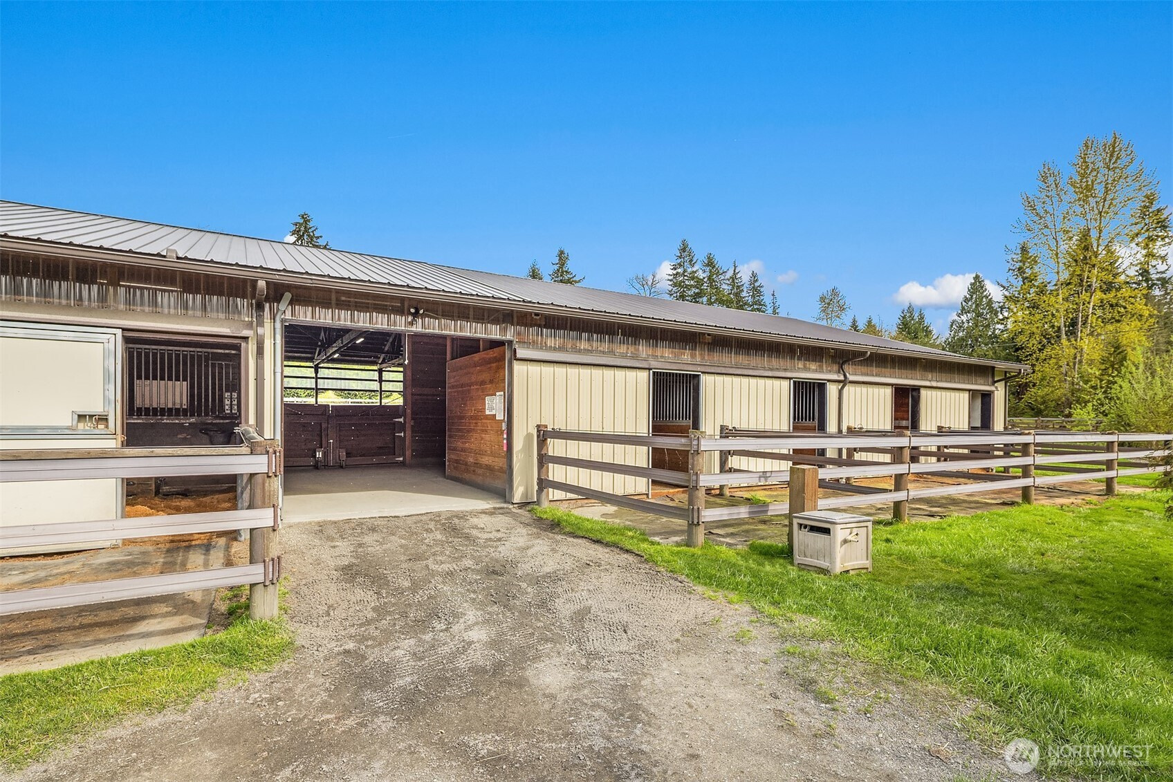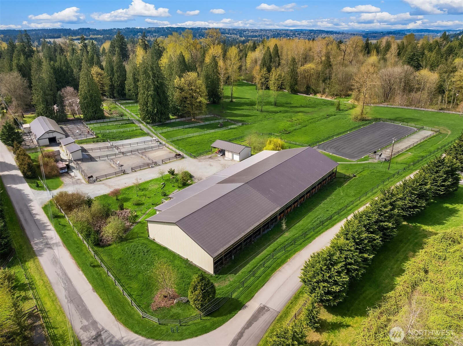 (650)533-3259Welcome to Cedar Meadow Farm. Stellar location near Echo Lake golf course on over 10 cleared acres on two tax lots. Main barn offers 14 stalls with powder room, gorgeous tack rm w/ W/D, 2nd tack rm, wash rack and paddocks off each stall. Additional Arena barn offers a 70 x 200 indoor arena, 12 stalls with matted paddocks, client lockers, beautiful client lounge with kitchenette, 4 bay shop/outbuilding w/ shaving storage. Centaur fenced pastures, paddocks and dry lot turnouts with loafing sheds. Lovely custom home offers main floor primary suite with 5 piece bath, Great Room design, mud room with built-ins, hobby rm & Bonus rm with separate entrances. Covered back patio, garden space & pastoral views. Quiet street of Acreage homes & Estates