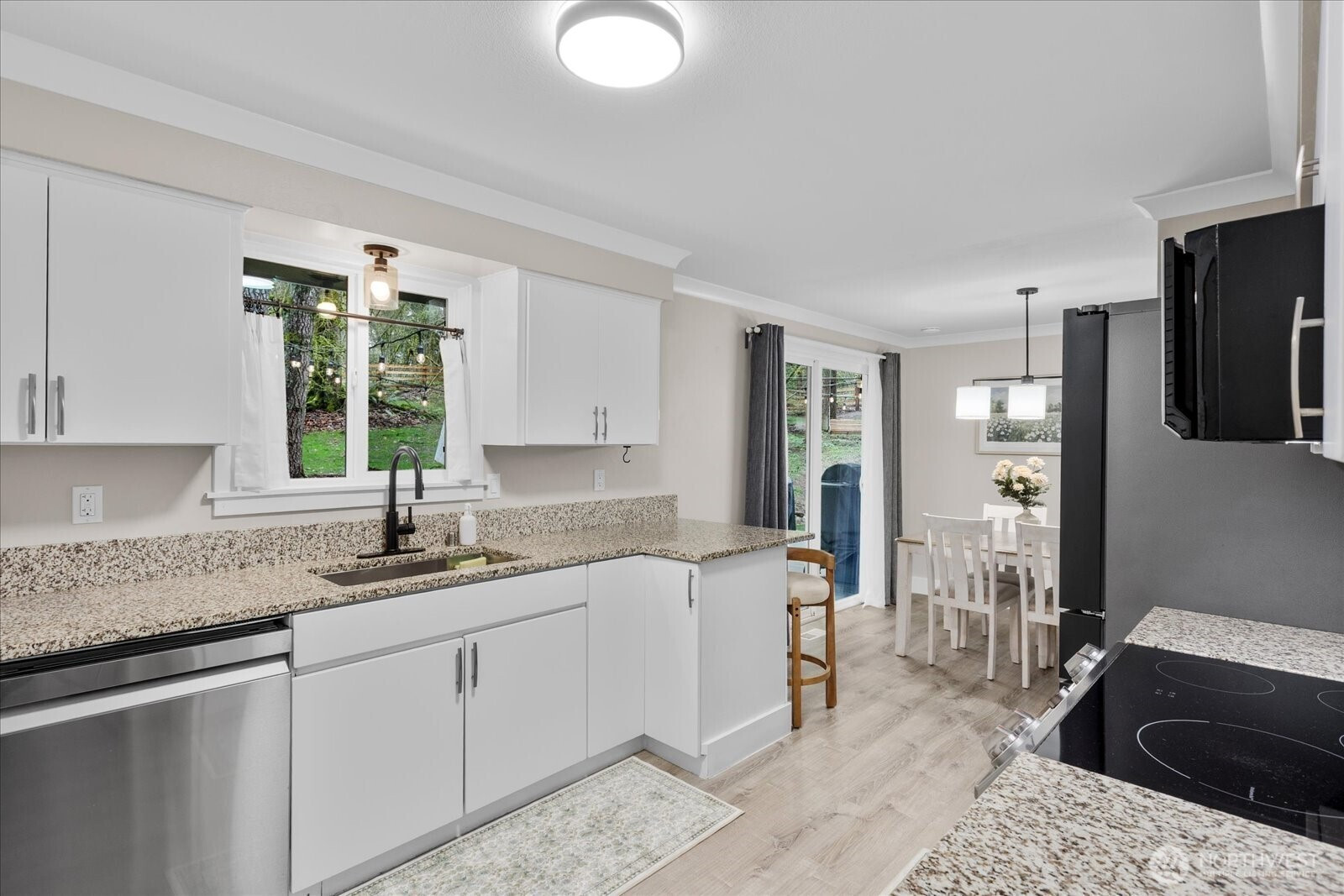 (650)533-3259Welcome to the highly sought-after Echo Lake community. Situated on a private corner lot, this fully fenced one-acre property is accessed through grand metal gates and features a beautifully remodeled rambler offering 3 bedrooms, 1.5 bathrooms, 1,416 square feet, and thoughtfully curated modern upgrades throughout.The updated kitchen showcases elegant granite countertops and one-year-old stainless steel appliances, including a flex oven and induction range. The home offers a bright, open living room that flows seamlessly into a spacious family room, complete with a dry bar and a generously sized office—ideal for both everyday living and entertaining. A convenient mudroom off the garage enhances everyday functionality.Enjoy cozy winter evenings by the fireplace, and take full advantage of the expansive yard and stunning back deck—perfect for entertaining during the summer months.Recent improvements include a brand-new roof, new double-pane storm windows, a high-efficiency heat pump, smart electrical panel, EV charger, and CAT6a Ethernet wiring. The property also offers ample space, RV parking, and upper driveway access for easy pull-through. Located within top-rated schools and offering convenient access to shopping, restaurants, wineries, and outdoor recreation—including golf at Echo Falls Golf Course and nearby hiking—this home also provides a quick commute to Bellevue and Seattle. This home offers the ideal blend of comfort, convenience, and modern living. Don't miss it!