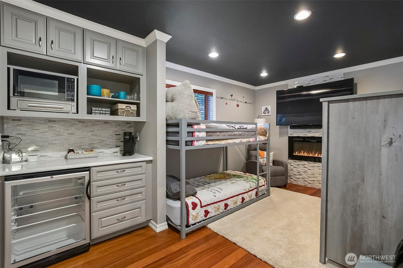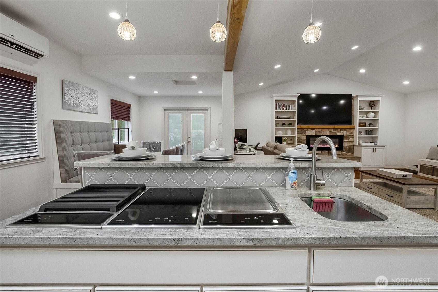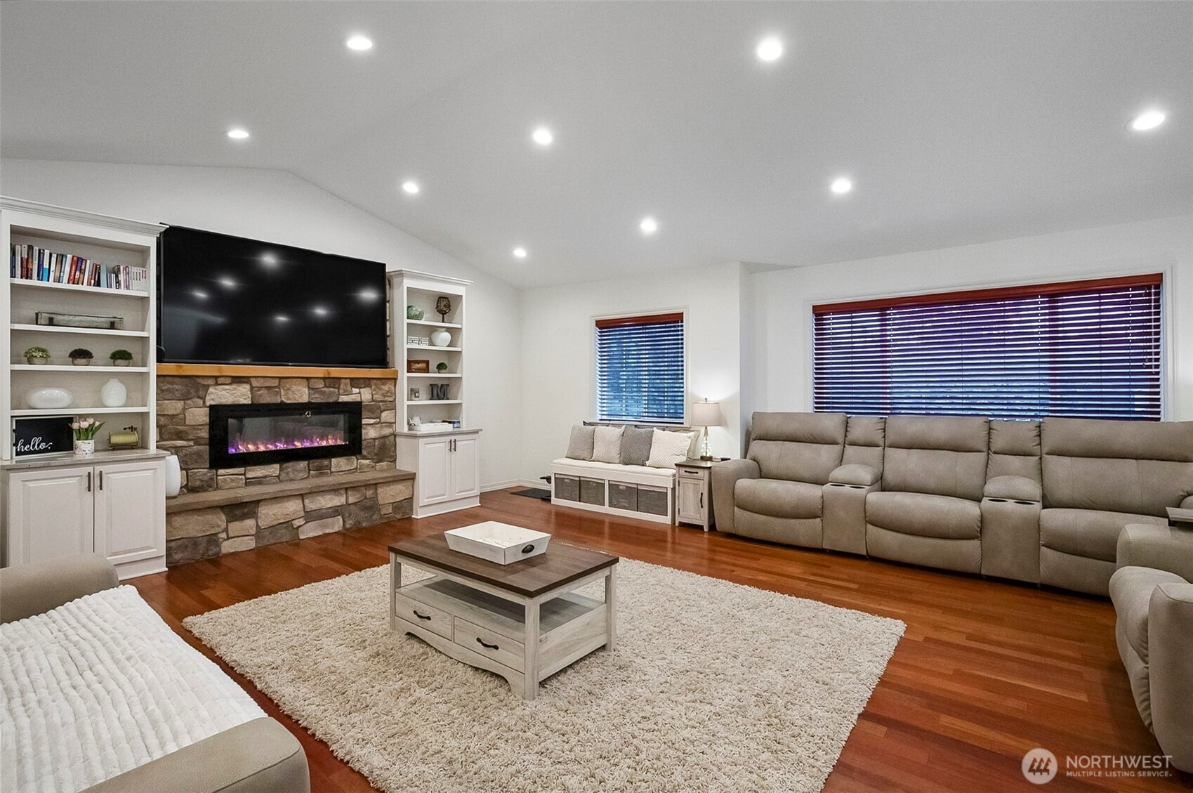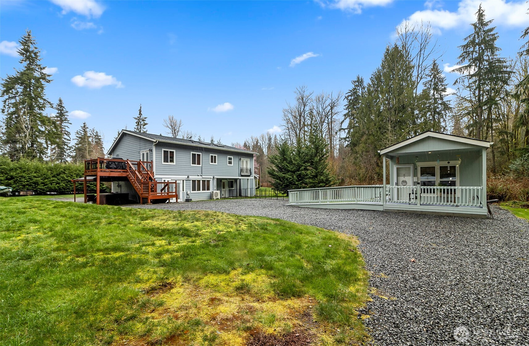 (650)533-3259Main home septic system approved for 2 bedrooms, HOWEVER the home features 2 additional finished flex rooms currently used as bedrooms. OFFERING the FUNCTIONALITY and SPACE of a 4-BEDROOM LAYOUT. Welcome to multi-generational living at its finest, where comfort, privacy, and thoughtful design come together. Set back from the road, this home offers a peaceful and private setting while providing flexible living spaces for a variety of lifestyles. The home features a gourmet kitchen equipped with dual wall ovens and a built-in espresso machine—perfect for cooking, entertaining, and starting your mornings right. The main level includes two bedrooms and a luxurious main bathroom with a jetted soaking tub and a separate tiled shower, creating a spa-like retreat. You’ll also enjoy the comfort of heated tile floors in both the main bathroom and the lower-level 3/4 bath. Warm and inviting electric fireplaces throughout the home add both ambiance and comfort to multiple living areas. The lower level is designed for relaxation and functionality, featuring a fully furnished home theater for the ultimate movie night experience. Two additional bonus rooms provide flexible space ideal for a workout room, home office, or hobby areas. With its versatile layout, modern amenities, and private setting, this home is perfectly suited for multi-generational living or anyone seeking space, comfort, and privacy.