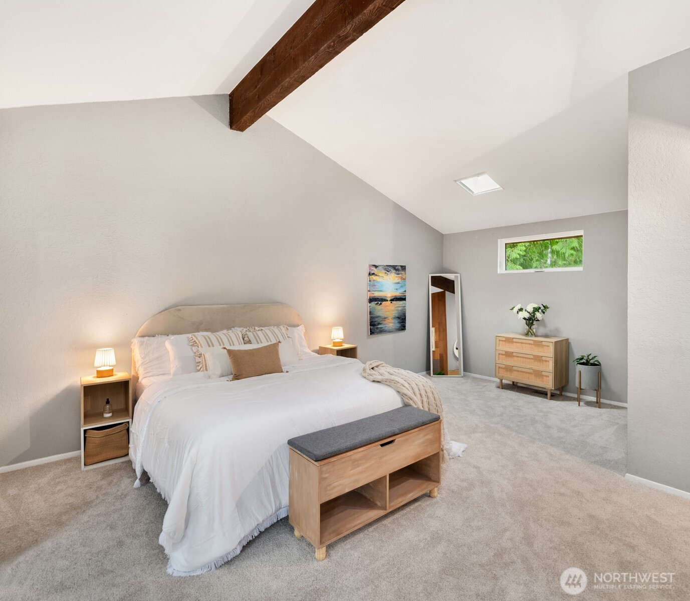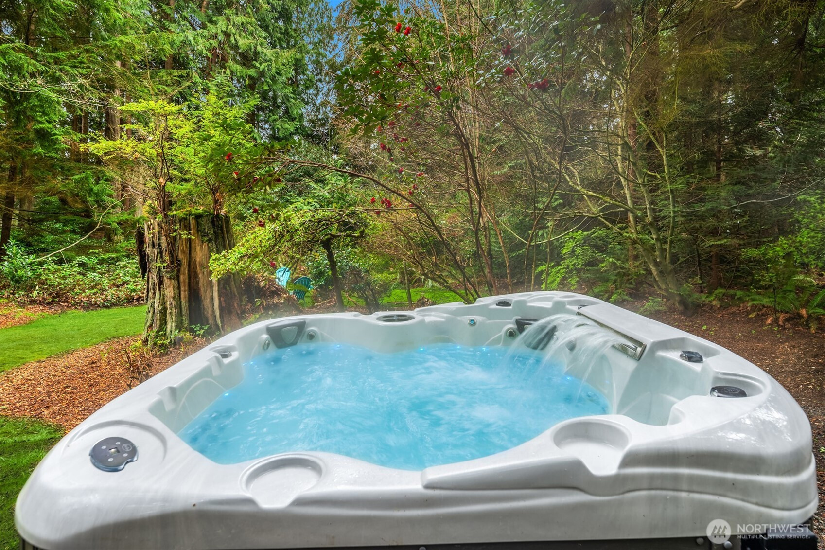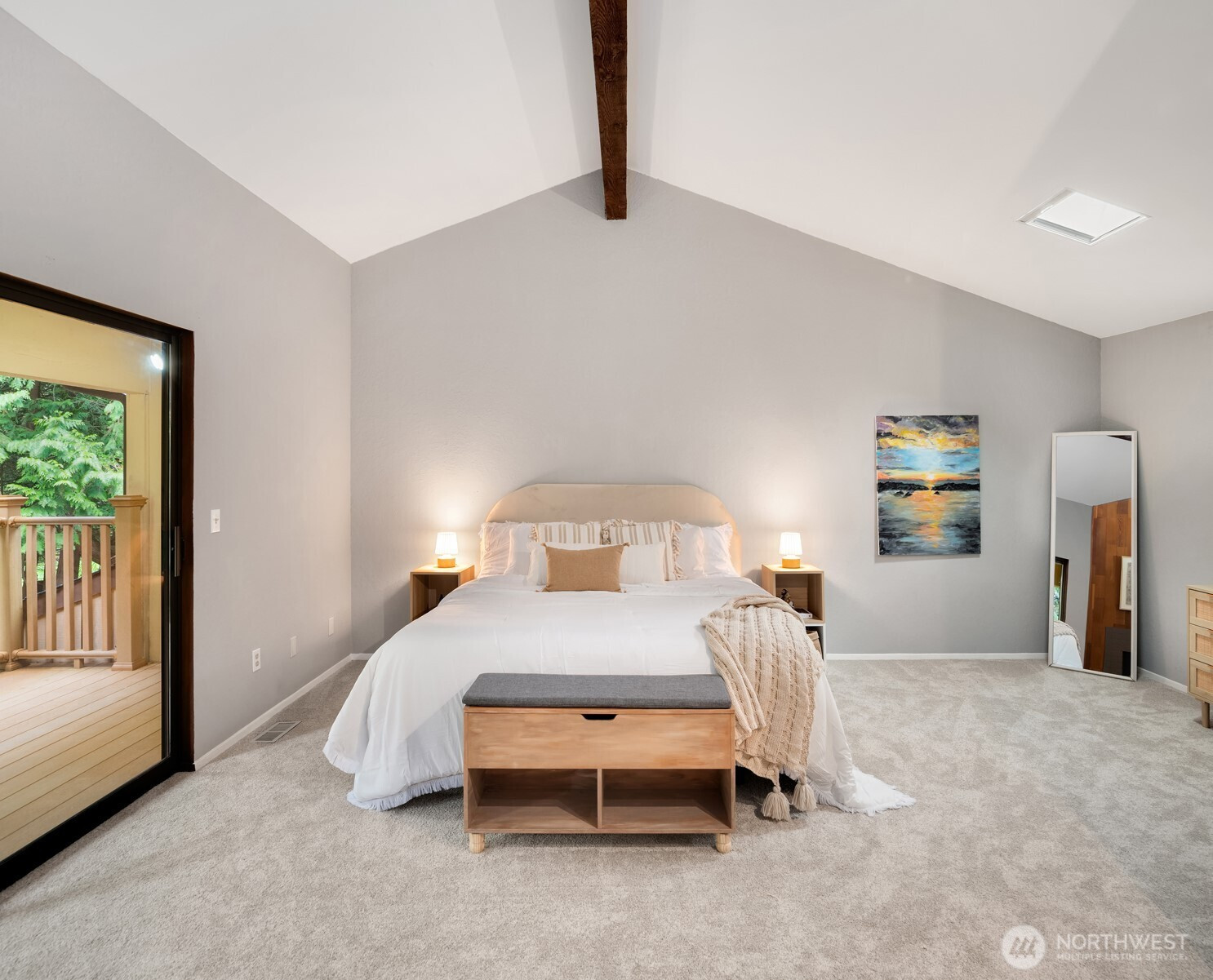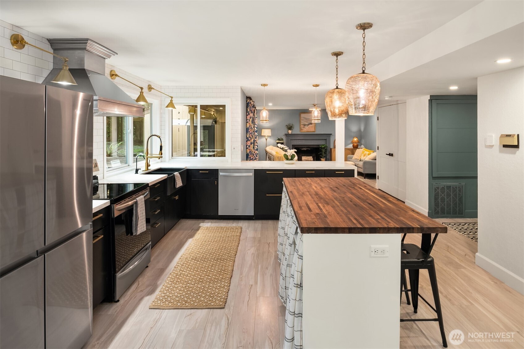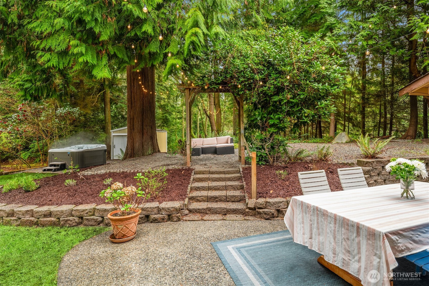 (650)533-3259Shy Acre Wonderland ~ Privately nestled down on a long wooded drive at the end of a cul-de-sac in coveted Wingate at Picnic Point, this northwest contemporary stunner dazzles with captivating curb appeal in a fairy tale setting with high-end modern upgrades throughout! Boasting dramatic architecture wrapped in windows with soaring open beam ceilings & breathtaking forest views at every turn. Brilliantly reimagined, the 2,046sf open concept two-story features an irresistible designer kitchen with sleek black cabinets, waterfall-edge quartz counters, custom steel hood, satin brass accents, wrap-around wall-to-wall tile backsplash, center island bar, exquisite hand blown Italian pendants & Bocchi Fireclay apron sink flanked by family room with wood-burning fireplace & dining space with slider to sun deck. Spacious vaulted living room with clearstory windows & open rail staircase. Magnificent primary suite with cathedral ceilings, towering fireplace, sitting area, walk-in closet, lavish tiled bath with skylight & extended covered balcony. Generous vaulted bedrooms & remodeled baths + secret bonus room off the 833sf 3-car dream garage. A turn-key masterpiece with gorgeous wide-planked LVP floors, new plush carpets, upscale millwork & fresh paint throughout. Secluded backyard sanctuary backed to lush evergreens features sprawling entertainment patio, fire pit, premium hot tub & wooded hiking trails. Just a short walk to Serene Lake Elementary. You'll love it here. Welcome home!