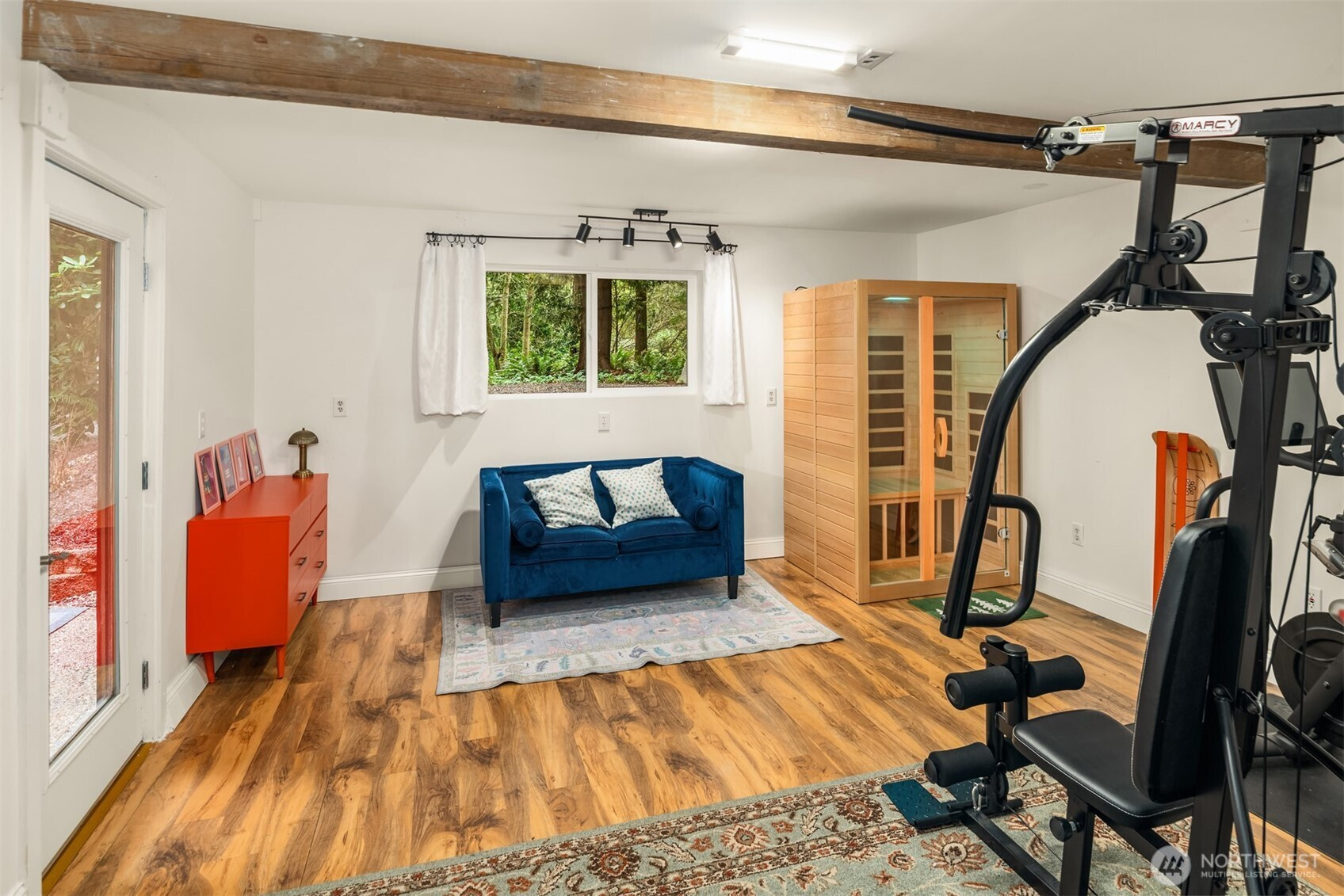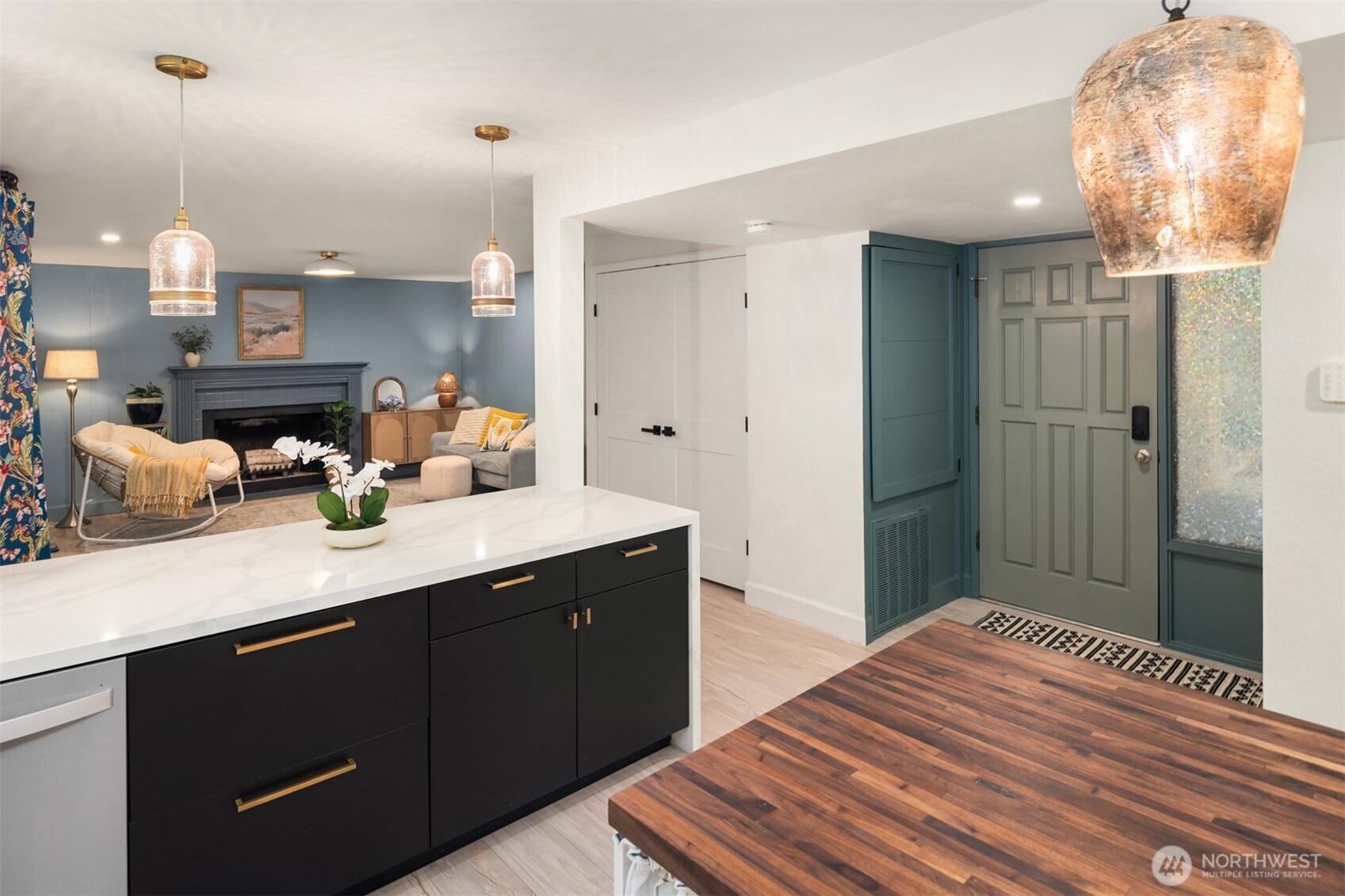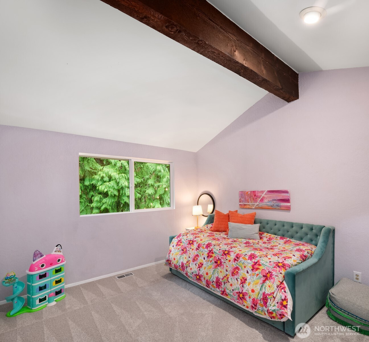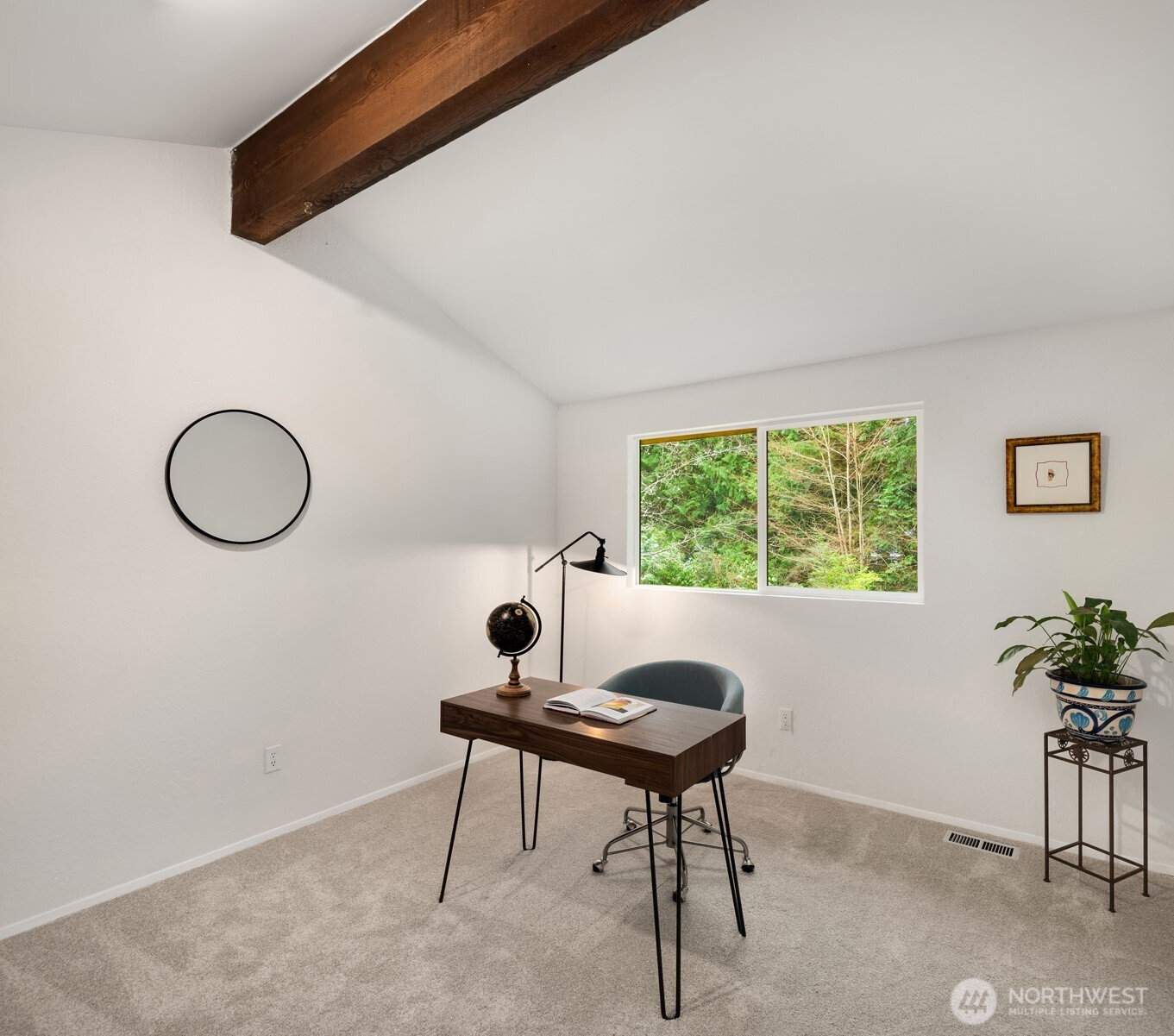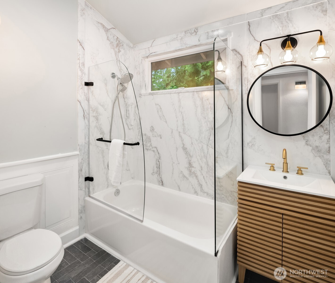 (650)533-3259Shy Acre Wonderland ~ Privately nestled down on a long wooded drive at the end of a cul-de-sac in coveted Wingate at Picnic Point, this northwest contemporary stunner dazzles with captivating curb appeal in a fairy tale setting with high-end modern upgrades throughout! Boasting dramatic architecture wrapped in windows with soaring open beam ceilings & breathtaking forest views at every turn. Brilliantly reimagined, the 2,046sf open concept two-story features an irresistible designer kitchen with sleek black cabinets, waterfall-edge quartz counters, custom steel hood, satin brass accents, wrap-around wall-to-wall tile backsplash, center island bar, exquisite hand blown Italian pendants & Bocchi Fireclay apron sink flanked by family room with wood-burning fireplace & dining space with slider to sun deck. Spacious vaulted living room with clearstory windows & open rail staircase. Magnificent primary suite with cathedral ceilings, towering fireplace, sitting area, walk-in closet, lavish tiled bath with skylight & extended covered balcony. Generous vaulted bedrooms & remodeled baths + secret bonus room off the 833sf 3-car dream garage. A turn-key masterpiece with gorgeous wide-planked LVP floors, new plush carpets, upscale millwork & fresh paint throughout. Secluded backyard sanctuary backed to lush evergreens features sprawling entertainment patio, fire pit, premium hot tub & wooded hiking trails. Just a short walk to Serene Lake Elementary. You'll love it here. Welcome home!