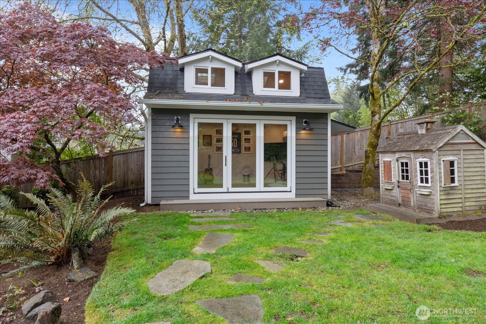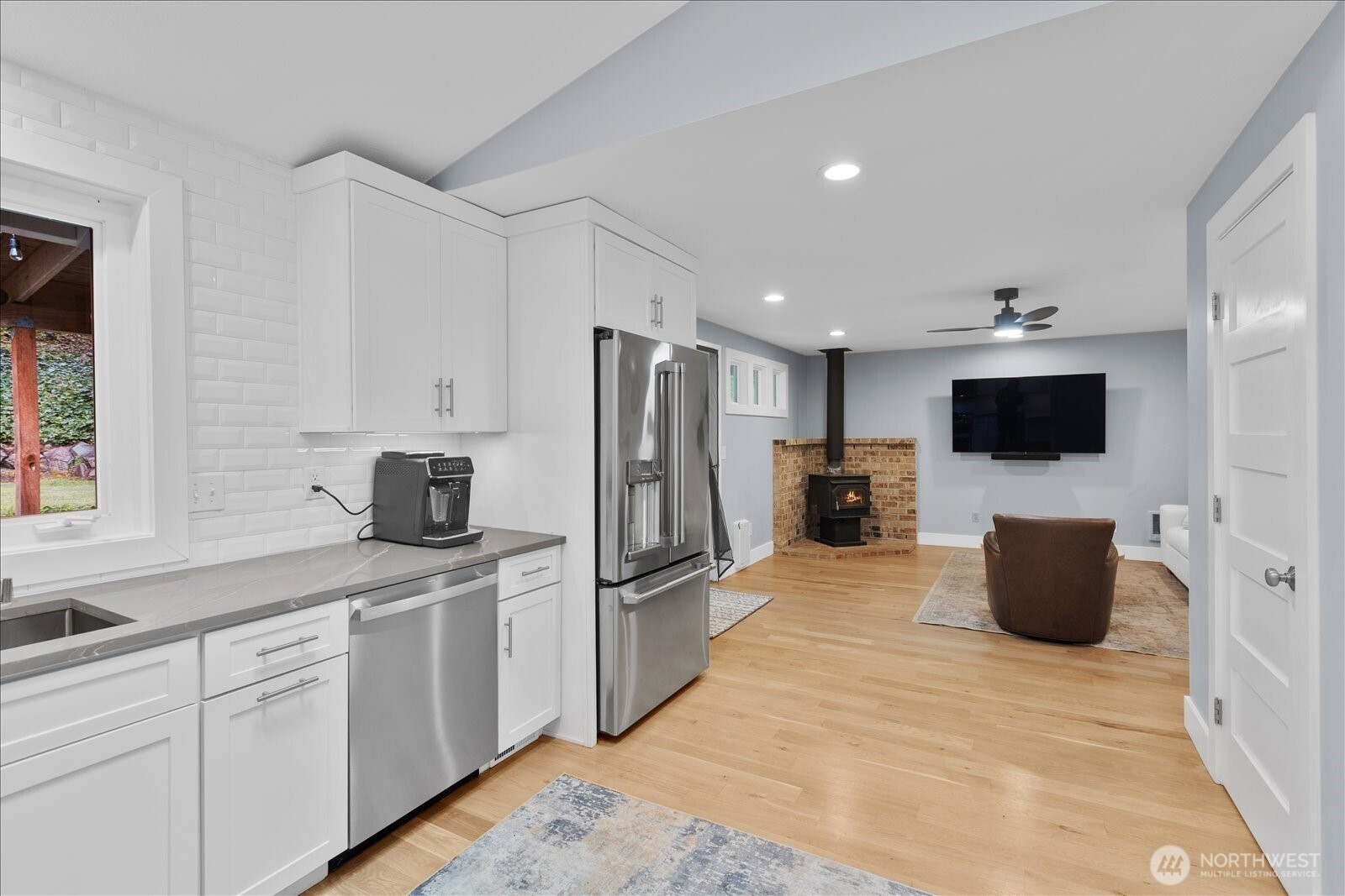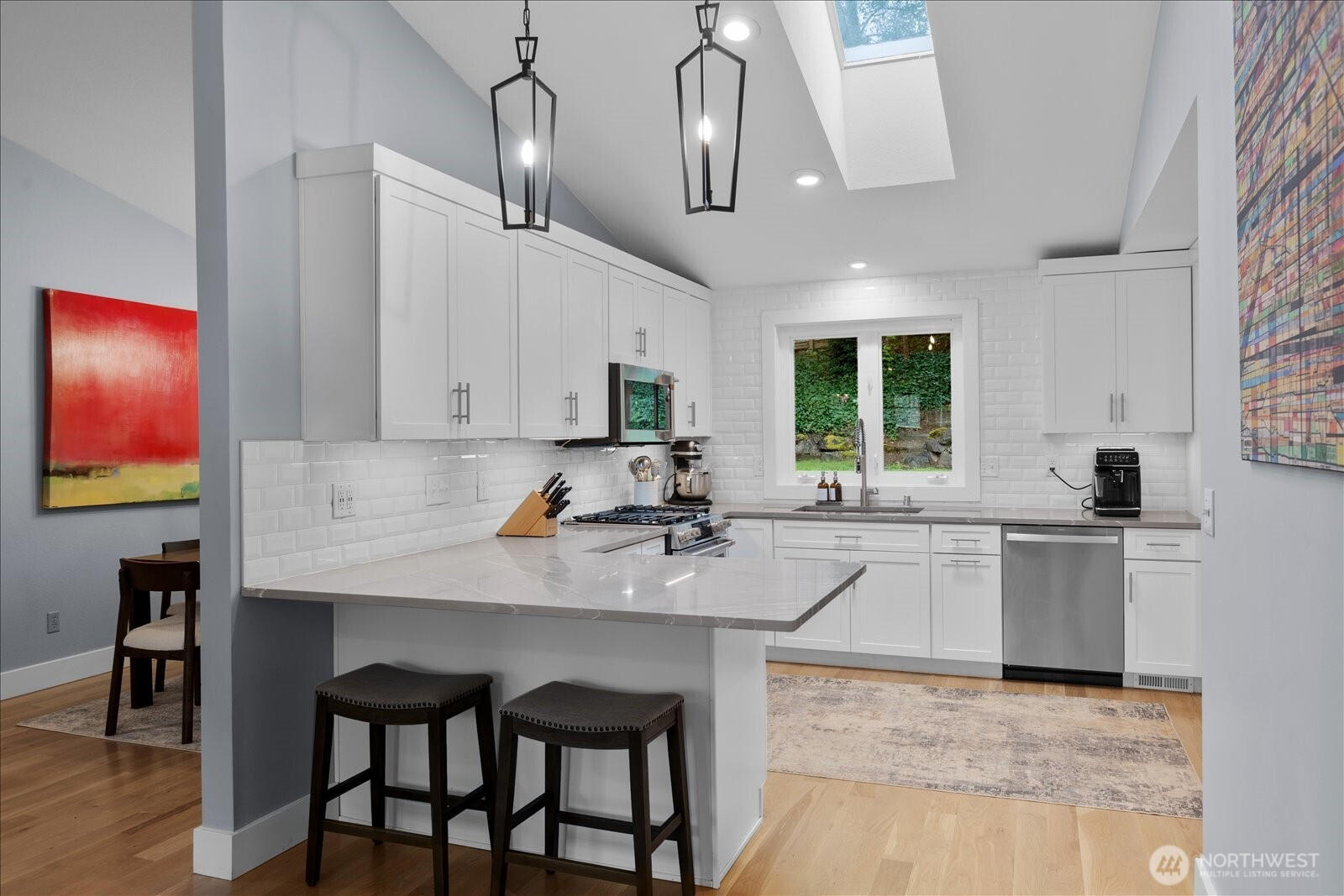 (650)533-3259Nestled in the heart of Mill Creek, this stunningly updated rambler is the perfect blend of comfort, style, and convenience—all on a spacious 1/4-acre lot. The airy open-concept layout features soaring ceilings with skylights welcoming you with a sense of space and light. The chef’s kitchen is a true showstopper, featuring sleek appliances, a chic quartz peninsula with bar seating, a walk-in pantry, and plenty of room to whip up culinary creations. The adjoining dining area is made for hosting—from casual weeknights to lively dinner parties. Retreat to the primary suite with its stylish en-suite bathroom and walk-in closet, creating the perfect private oasis. Down the hall are two more spacious bedrooms and a beautifully updated second bath. Refinished hardwoods flow throughout the entire home, leading into the family room with a cozy wood-burning stove. French doors open to the fully fenced backyard, complete with lush landscaping, a covered patio with a skylight, and even a flat screen—perfect for gathering and entertaining. The fully finished detached studio with heat and A/C makes an ideal home gym, office, or extra retreat space. To top it all off, this home boasts an attached 2-car garage with work bench, plus A/C throughout the house, ensuring year-round comfort. Ideally located just minutes from freeway access and the vibrant Mill Creek Town Center, filled with shopping, dining, and entertainment options. This is one home you don’t want to miss!
