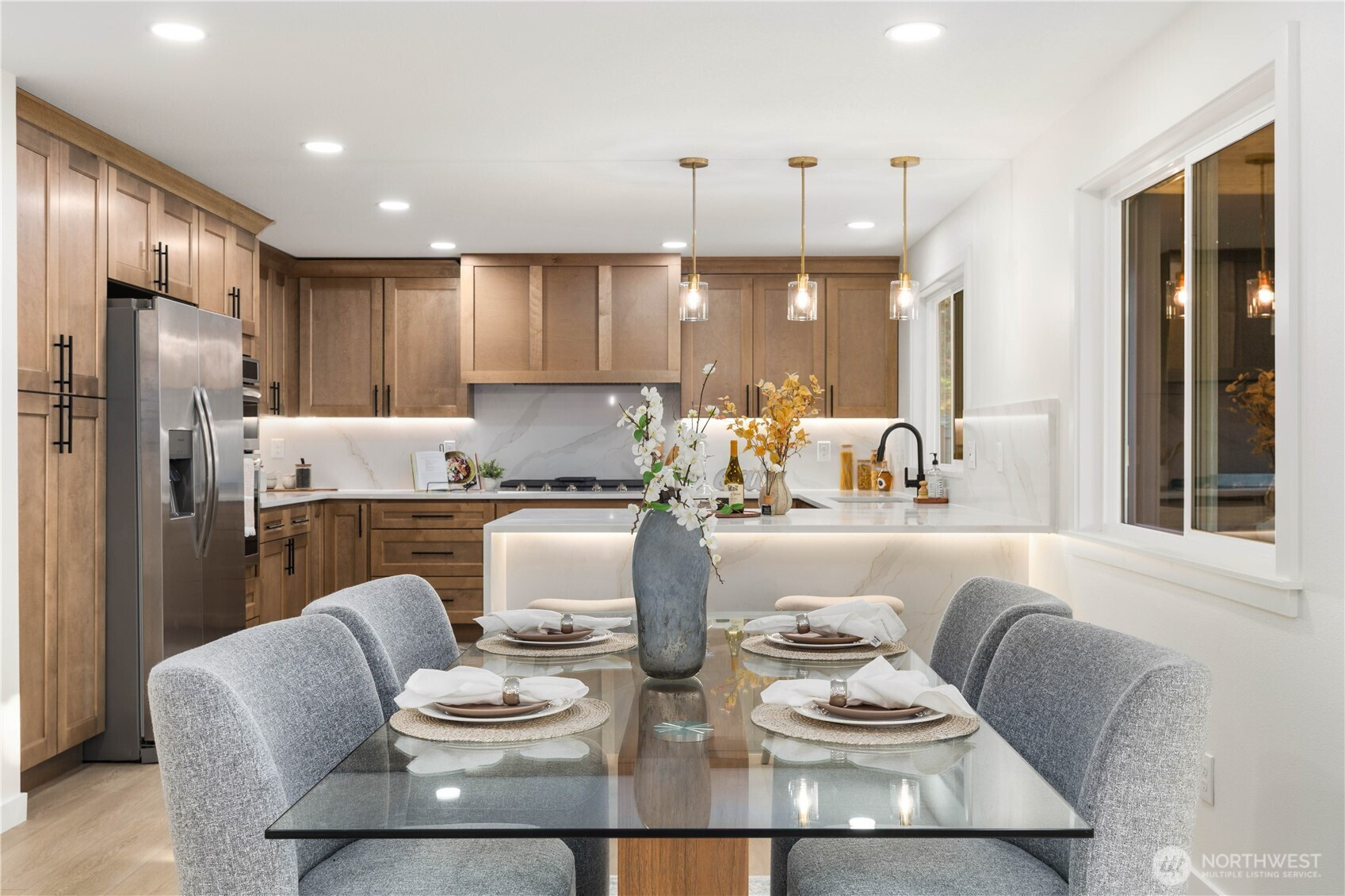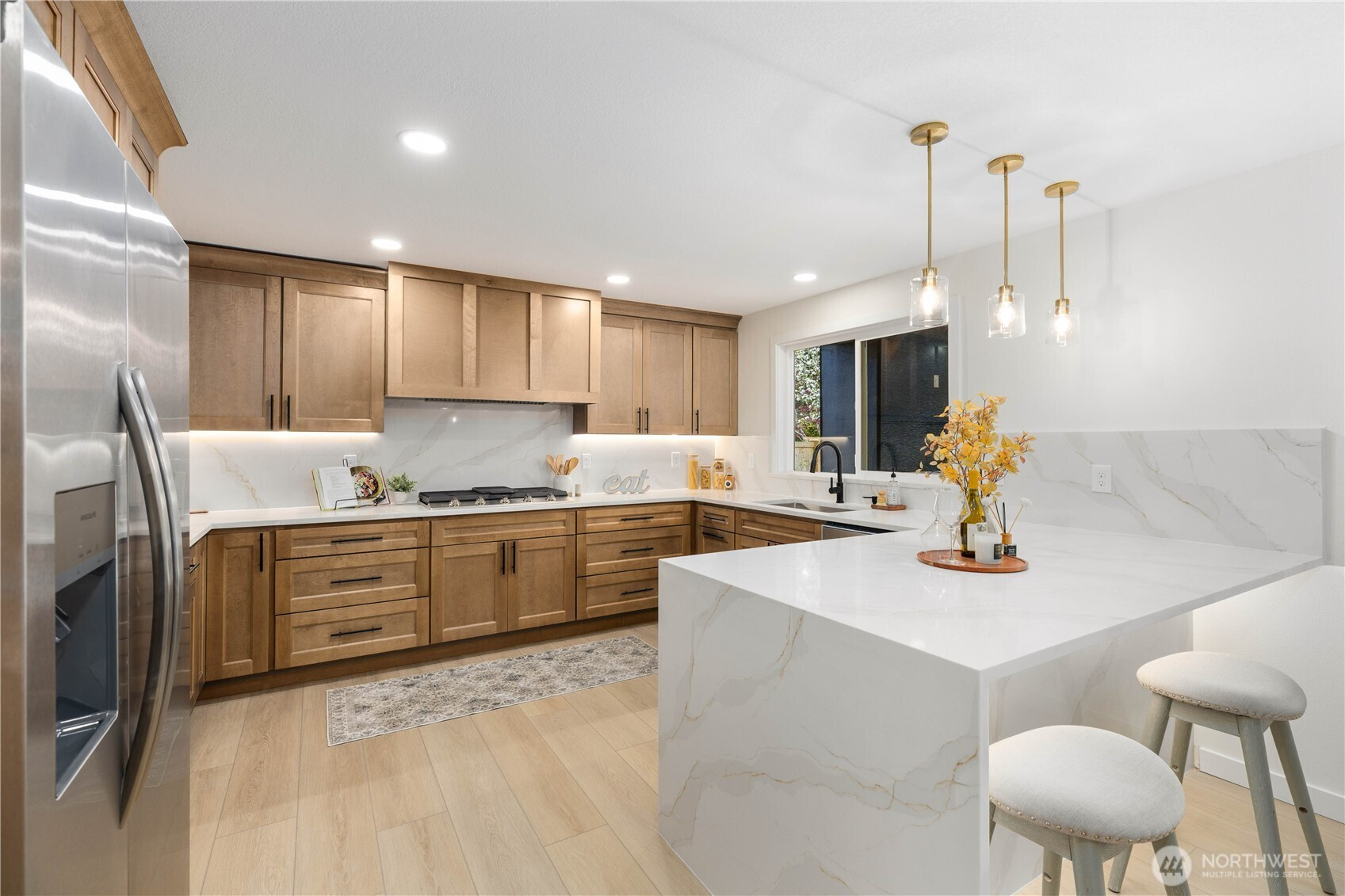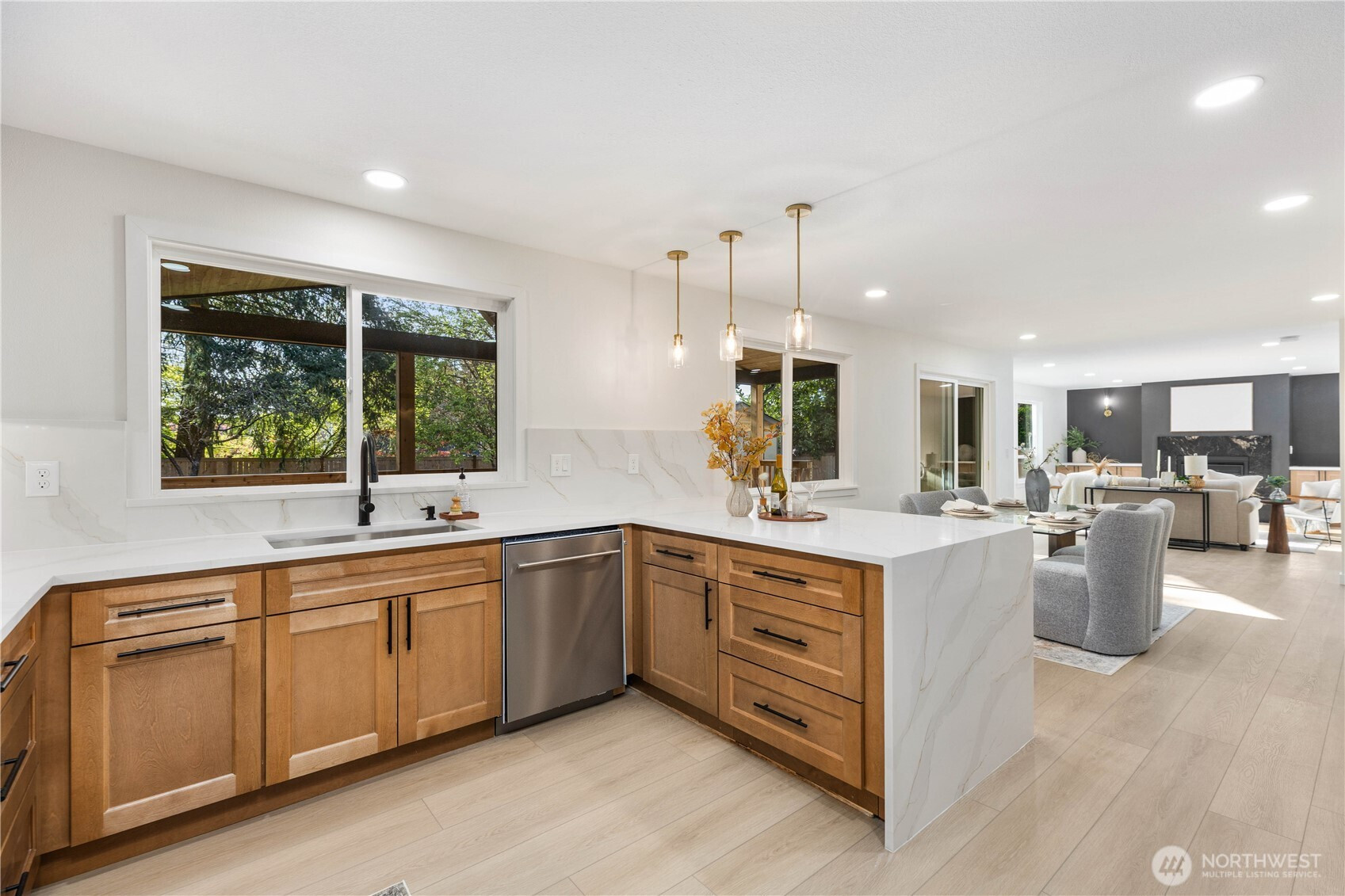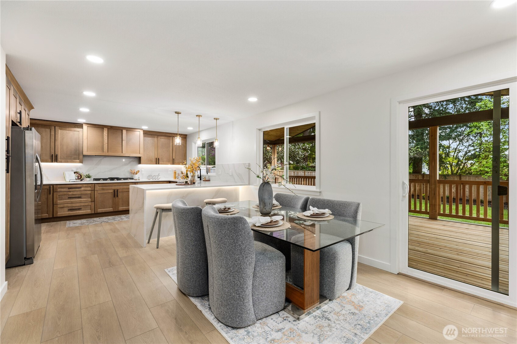 (650)533-3259Refined, design-forward living meets everyday functionality in this beautiful, fully remodeled 5-bed, 3-bath home in the coveted Picnic Point community. Spanning 2,600 square feet across two floors, this home was thoughtfully updated with modern and spacious open-concept areas coupled with a true indoor / outdoor living experience. The heart of the home sits in the elegant chef’s kitchen, featuring waterfall countertops, custom cabinetry, a gas cooktop, and an abundance of storage. All enhanced by custom recessed LED lighting flowing effortlessly into the expansive living and dining spaces anchored by rich white oak flooring and western facing exposure flooding the home with natural light. Step outside to a truly exceptional covered 14x30 deck—an all-season retreat with an exterior gas fireplace and built-in BBQ hookup. The fully fenced backyard offers privacy and versatility, complete with a dedicated sports court for recreation or RV parking. Inside, every detail has been curated with intention. Including an expansive primary bedroom with an en-suite double vanity bath, an elegantly finished oversized dual-head walk-in shower with floor to ceiling tile, and a walk-in closet. Custom LED-integrated closets in each bedroom, solid core doors throughout, custom millwork two living spaces, and a flex bedroom / office space offering versatility for every living scenario. Located within the highly desired Mukilteo SD. Better than new. See it today, you won't be disappointed.